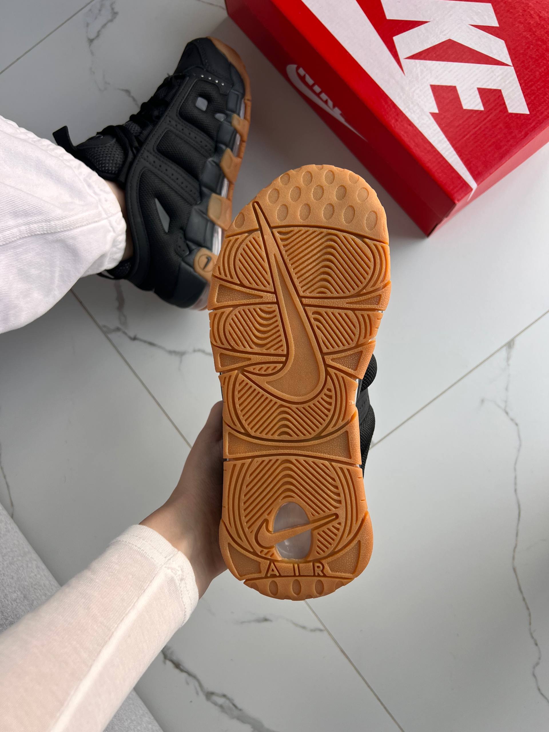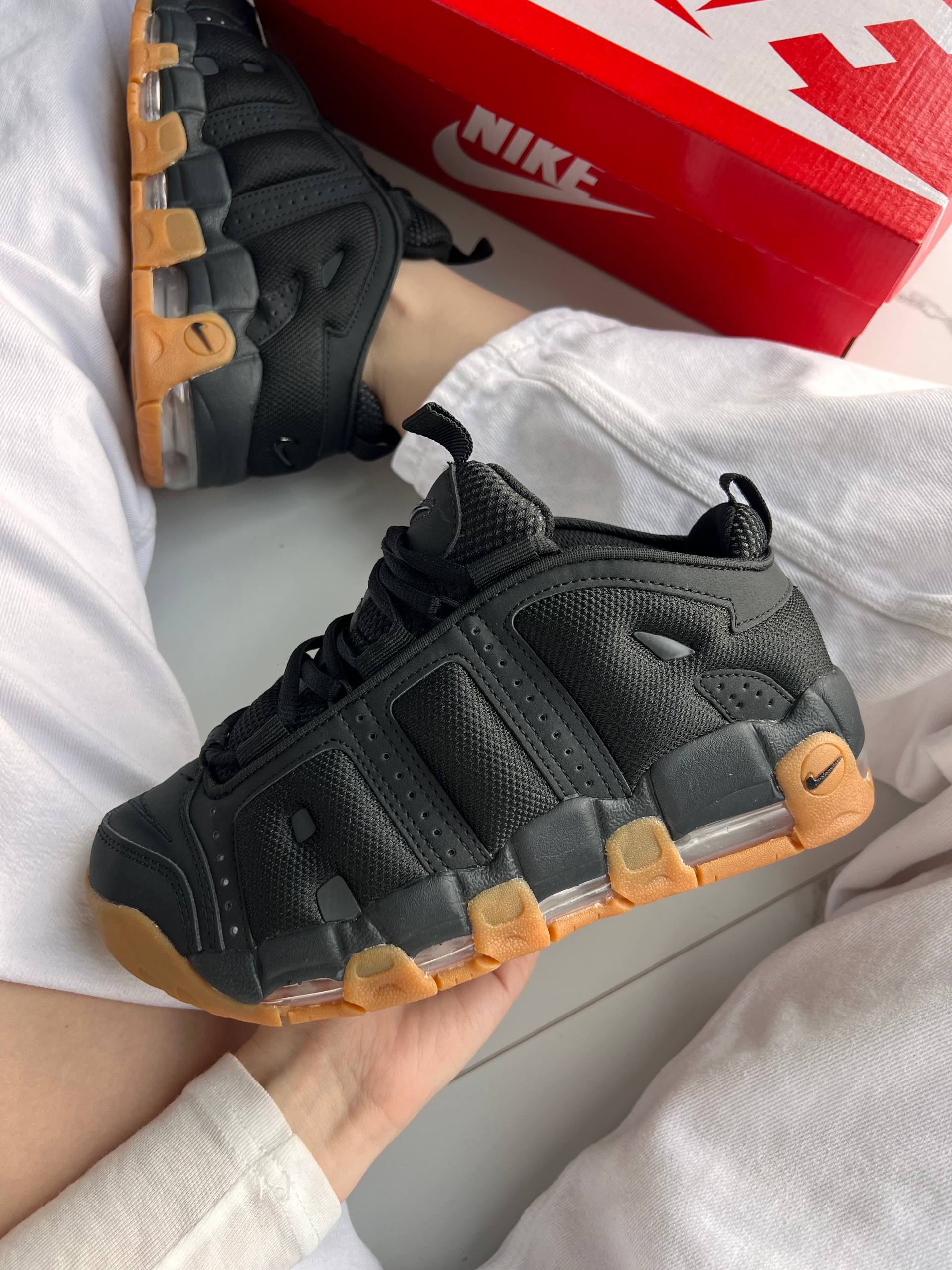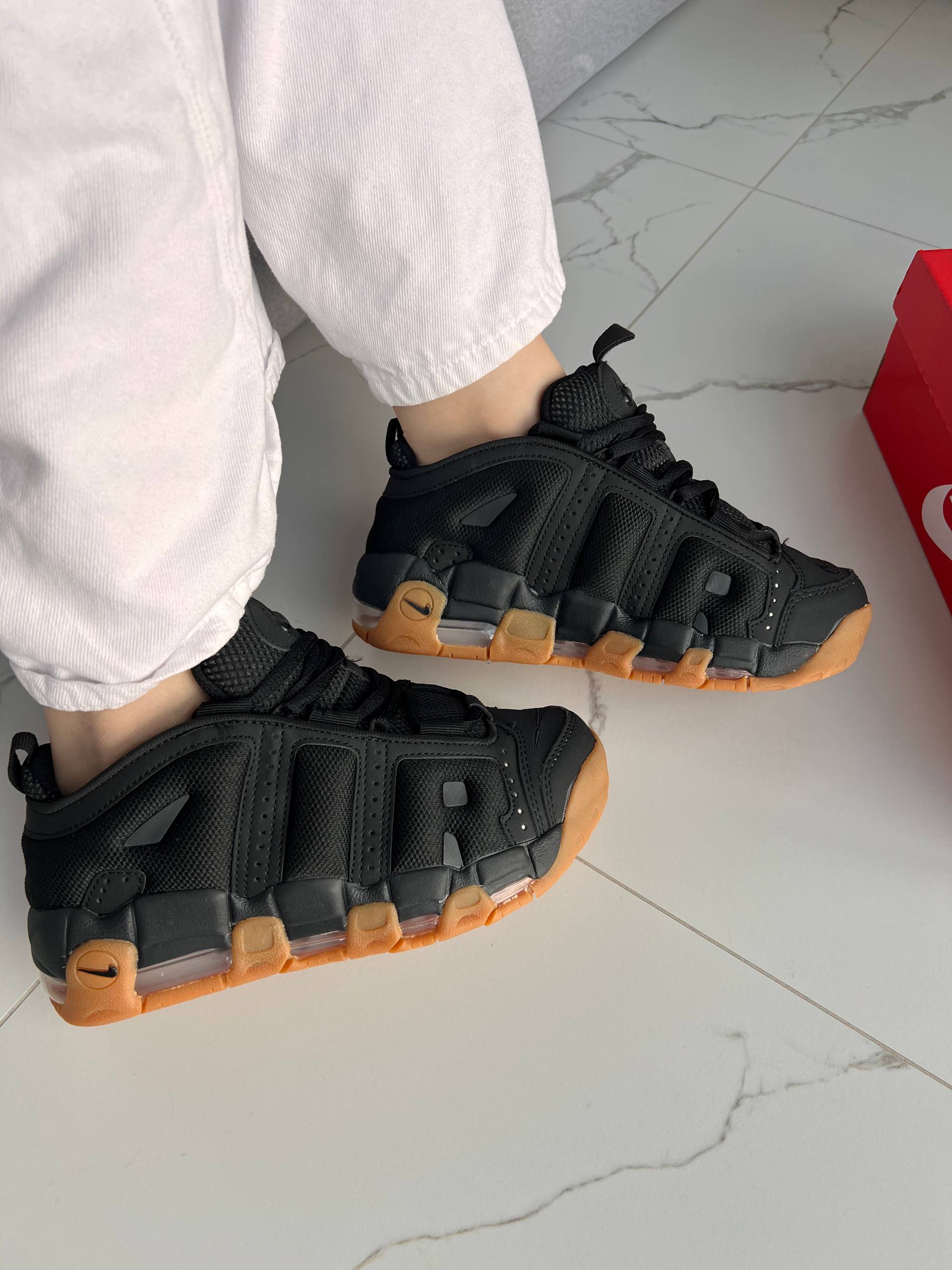 Nike Air More Uptempo Low Black Gum — культові кросівки у стильному поєднанні чорного та світло-коричневого кольорів. Масивна підошва з амортизацією Air забезпечує комфорт, а великий напис “AIR” додає впізнаваності та характеру образу.