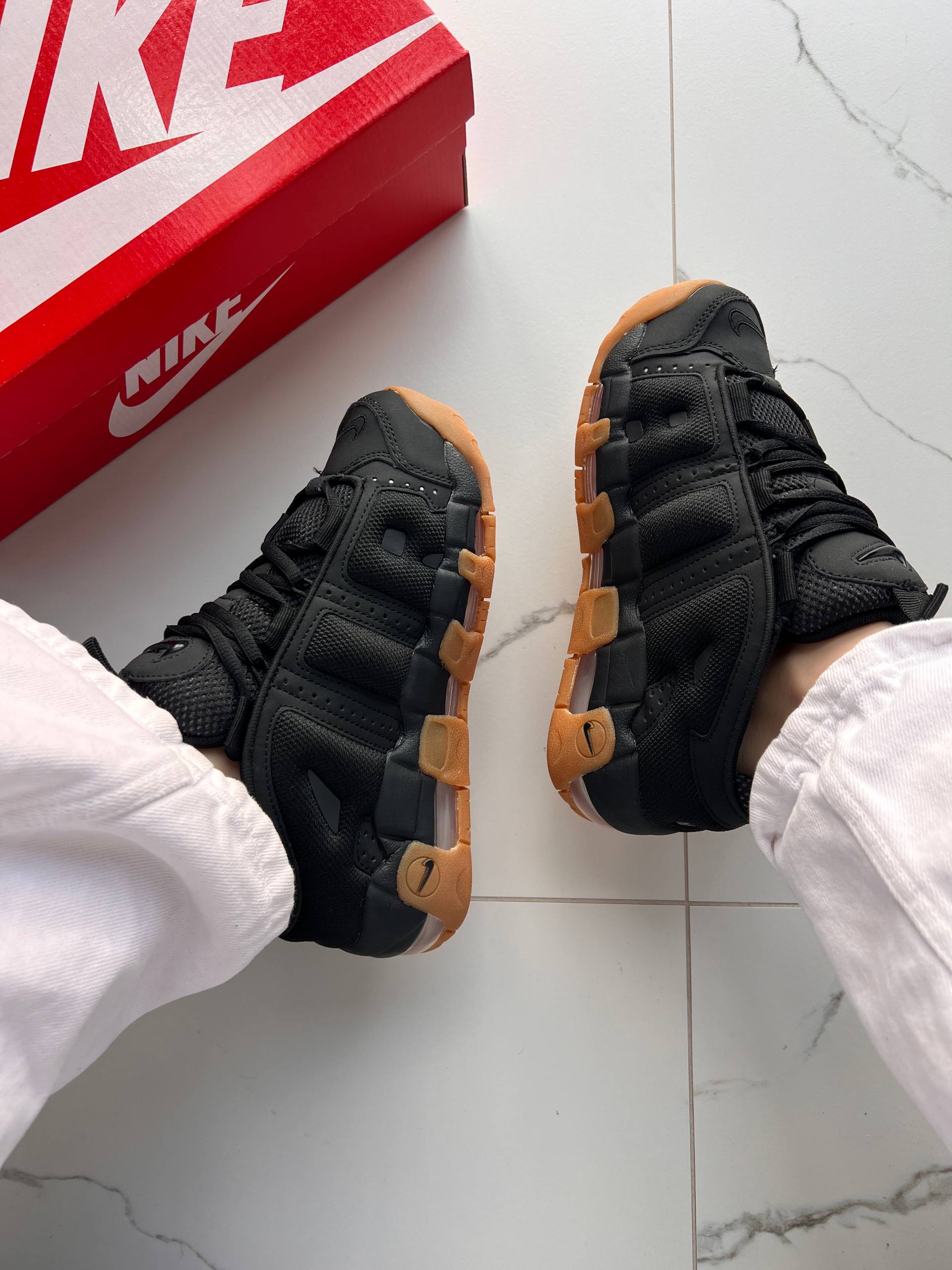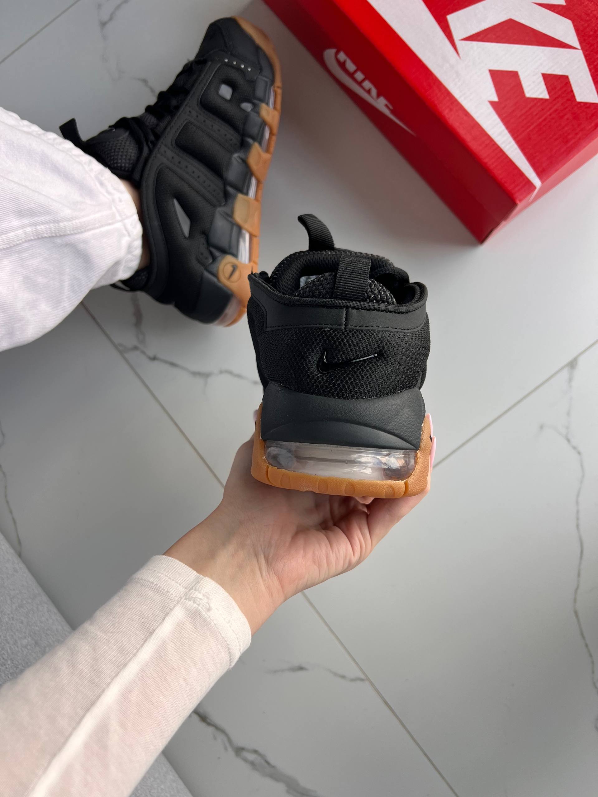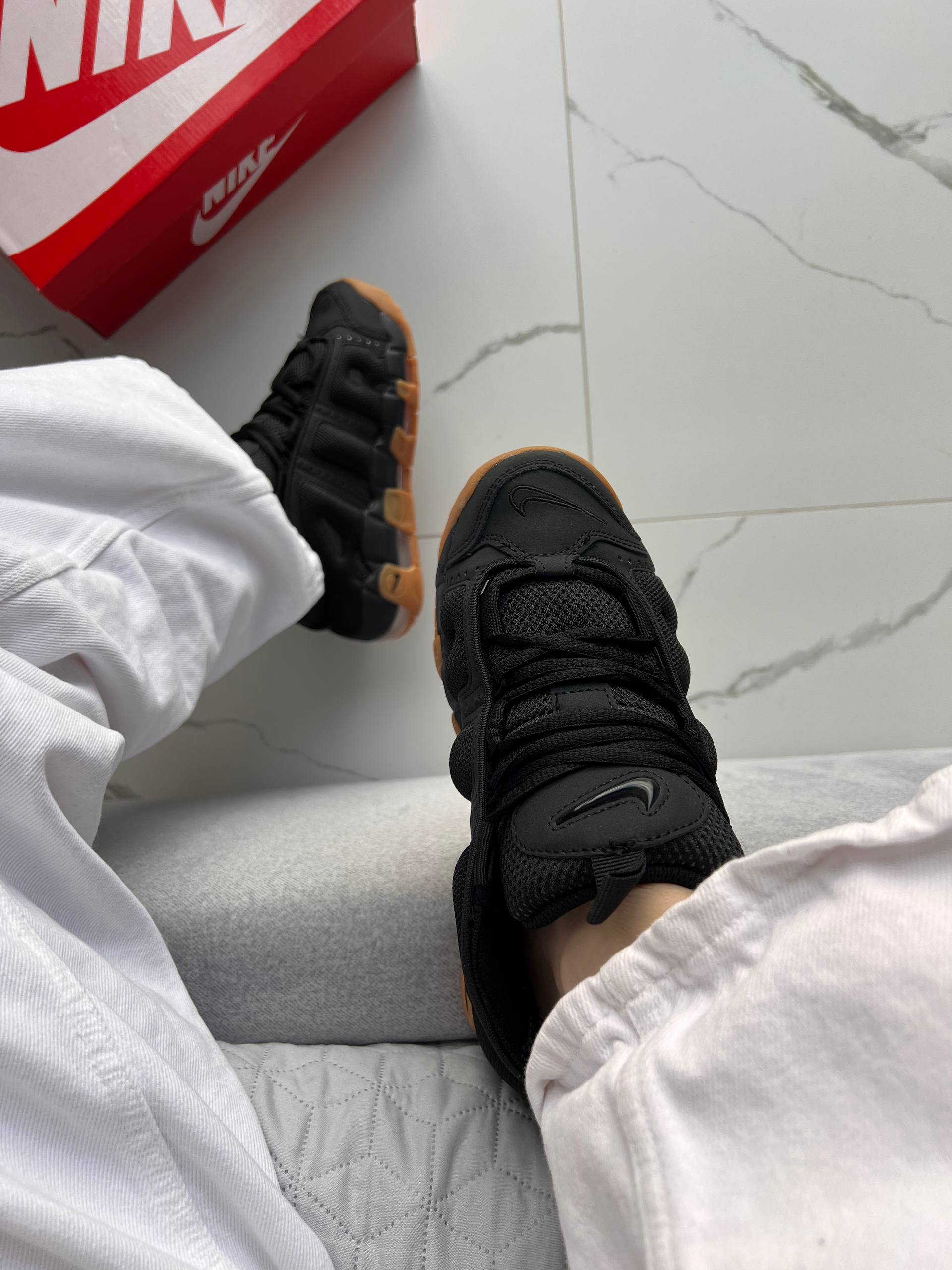 Nike Air More Uptempo Low Black Gum — культові кросівки у стильному поєднанні чорного та світло-коричневого кольорів. Масивна підошва з амортизацією Air забезпечує комфорт, а великий напис “AIR” додає впізнаваності та характеру образу.