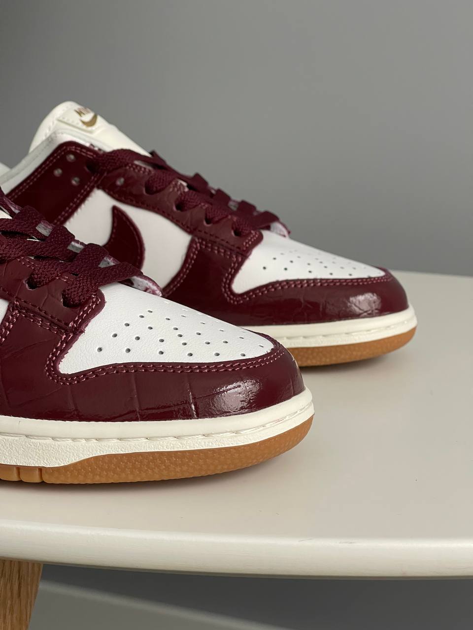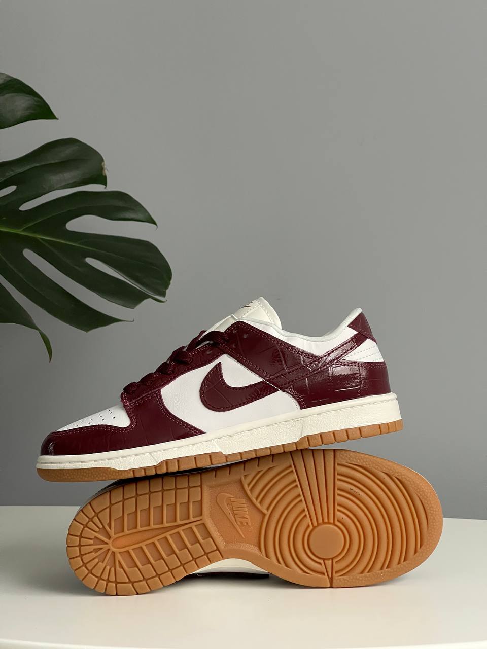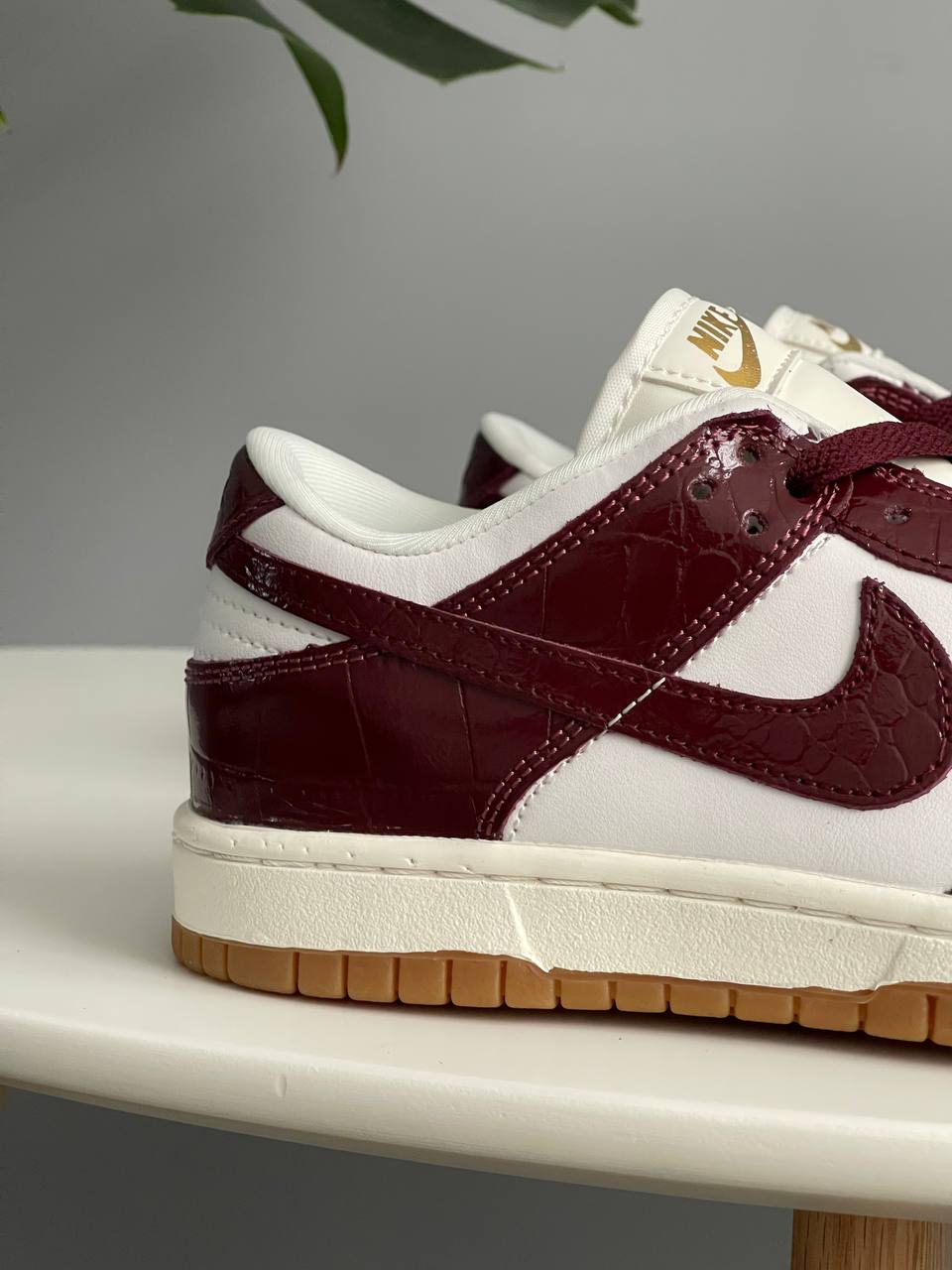 Nike Dunk Low Bordo — класичні низькі кросівки в бордовому кольорі з білою підошвою. Верх із натуральної шкіри та нубуку, міський стиль зі спортивним корінням — ідеально для повсякденного образу.