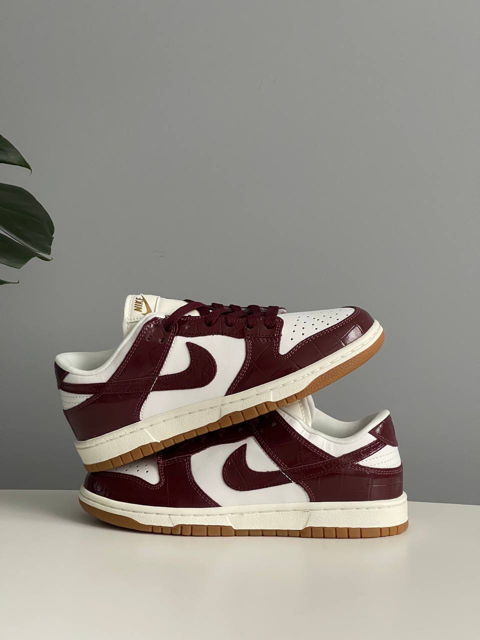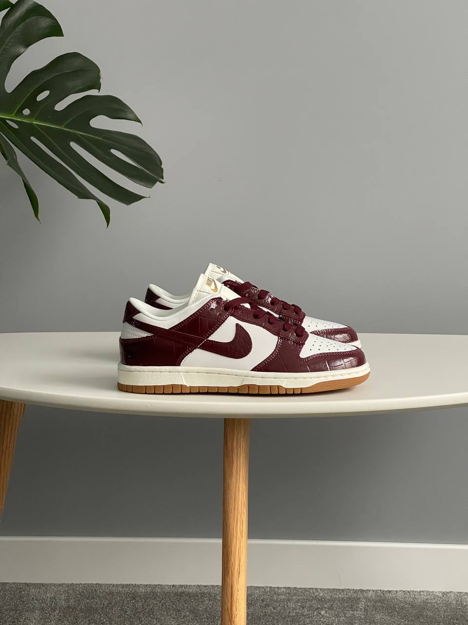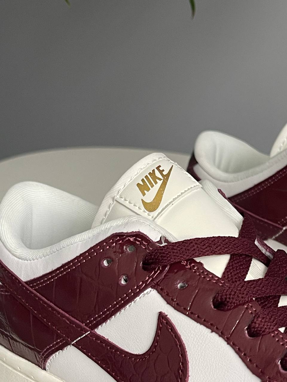 Nike Dunk Low Bordo — класичні низькі кросівки в бордовому кольорі з білою підошвою. Верх із натуральної шкіри та нубуку, міський стиль зі спортивним корінням — ідеально для повсякденного образу.