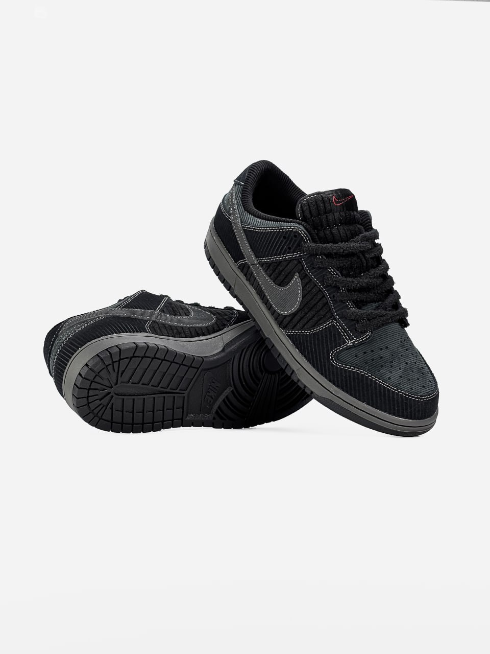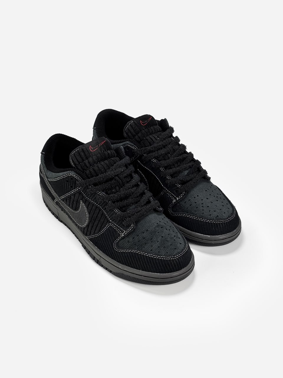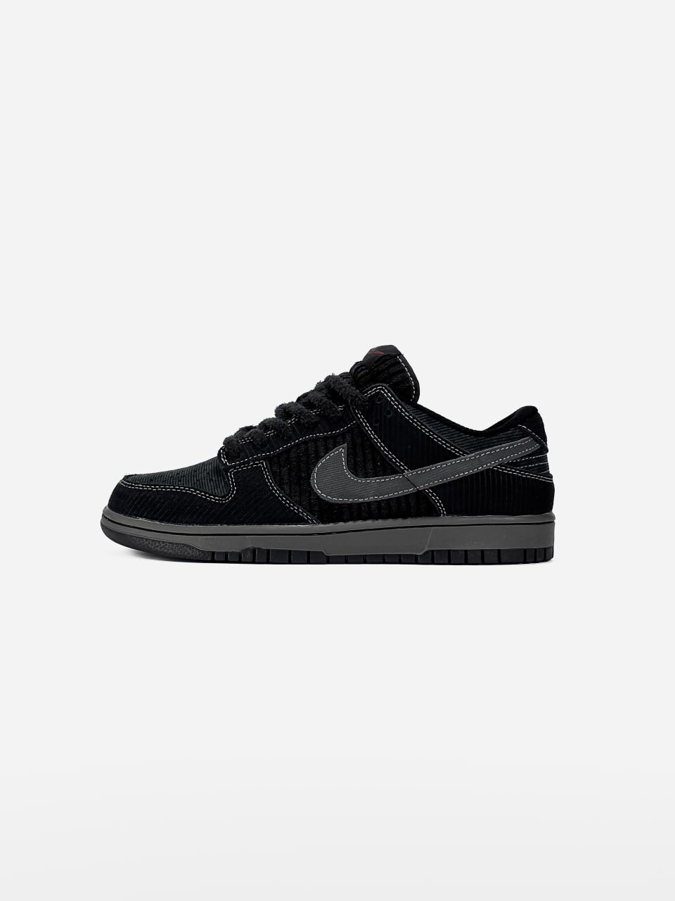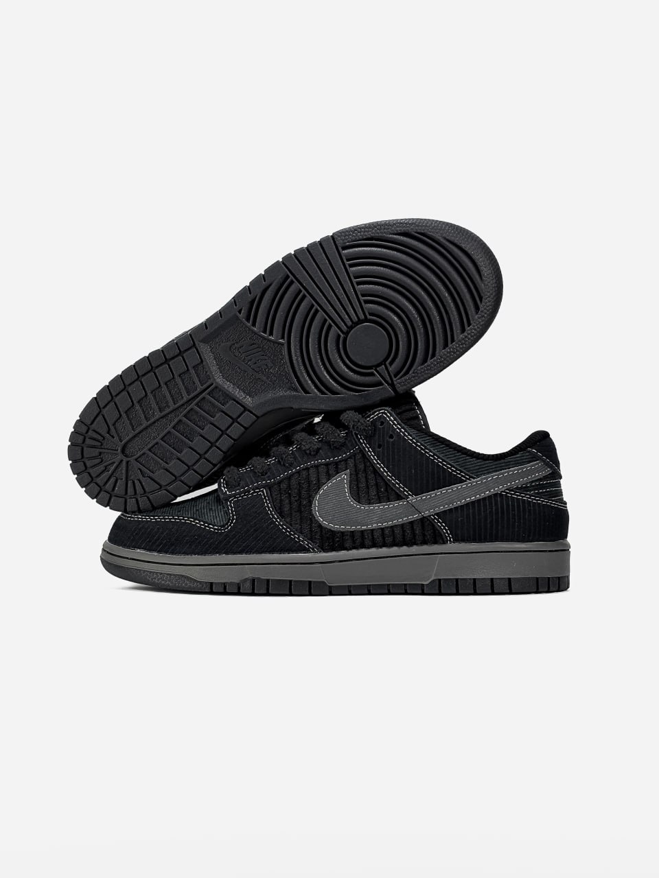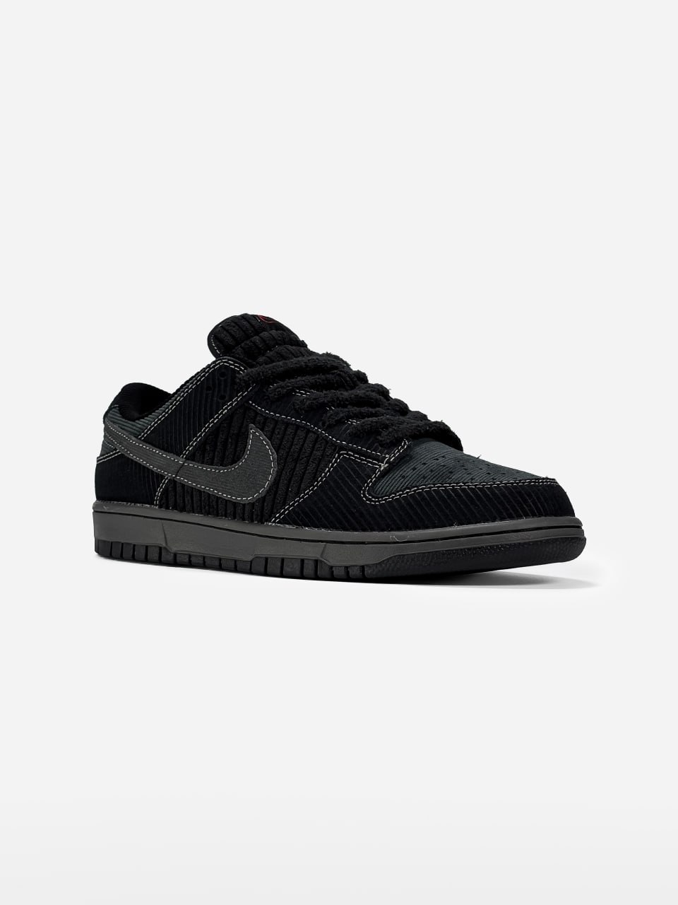 Nike Dunk Low Triple Black Corduroy — стильні чорні кросівки з вельветового матеріалу, що поєднують мінімалістичний дизайн і комфорт для щоденного носіння.