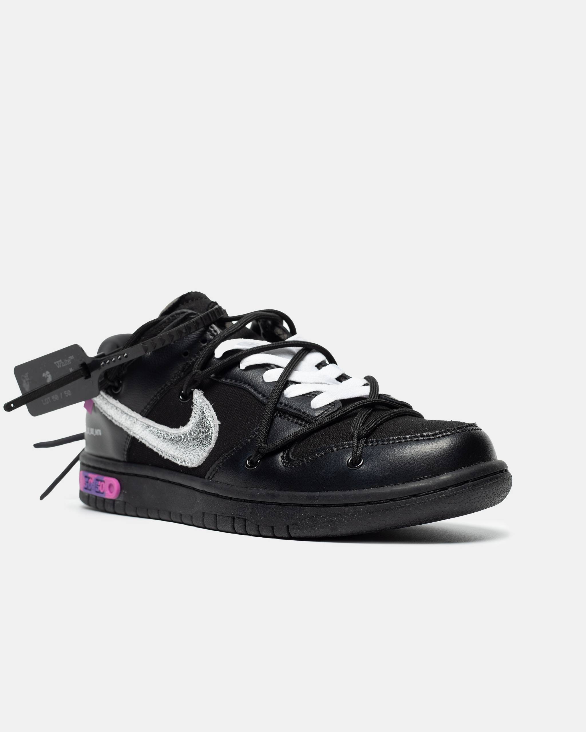 Nike Low Dunk x Off-White 50/50 Black Purple — ексклюзивні кросівки у чорному з фіолетовими акцентами.