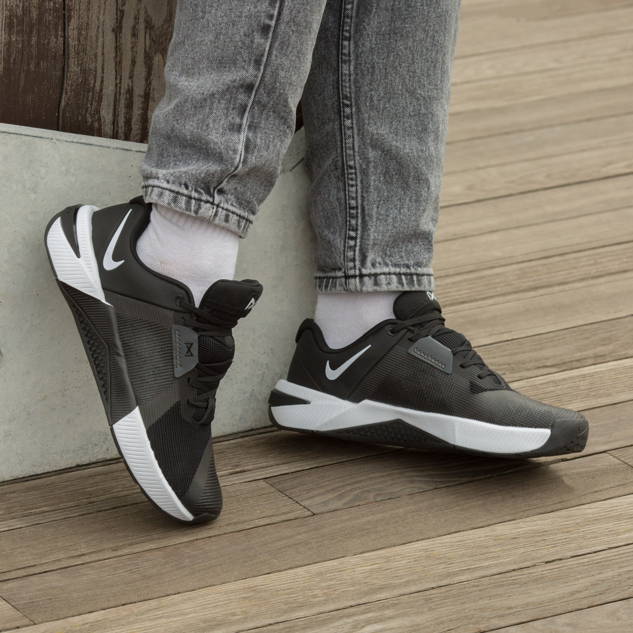 Nike Metcone 10 Black White — кросівки в чорно-білому поєднанні з міцною підошвою та стабільним силуетом, що підходять для тренувань і активного способу життя.