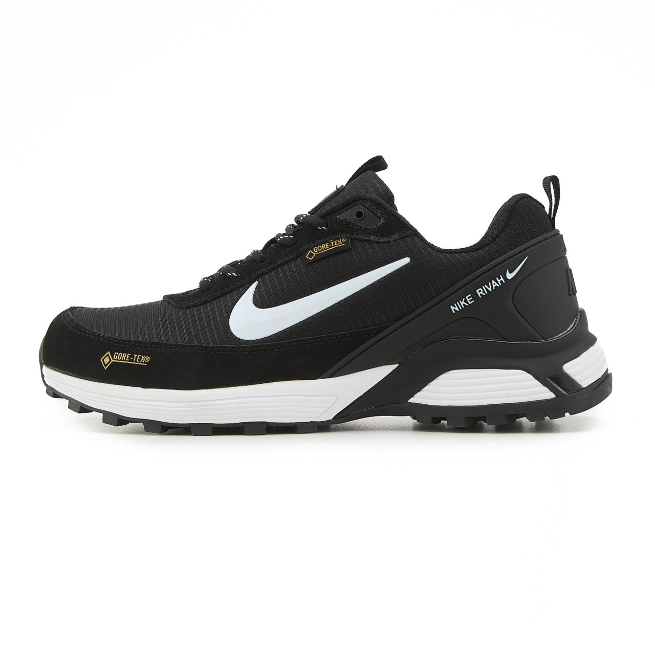 Nike Rivah GTX Black White — водостійкі кросівки з мембраною Gore-Tex у чорному кольорі з білими деталями, що поєднують стиль і надійність у будь-яку погоду.