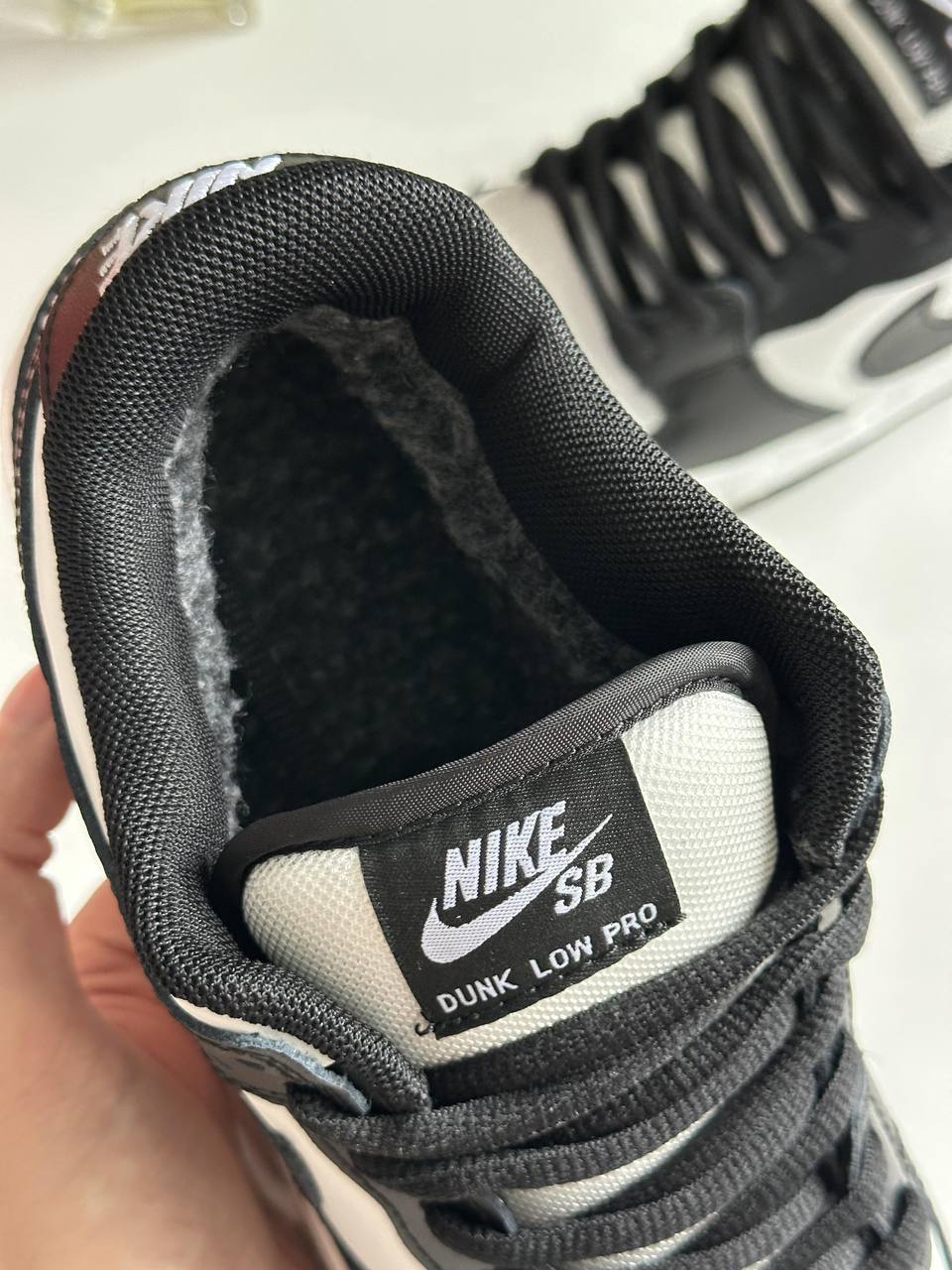 Nike SB Dunk Low Black White Fur — класичні скейт-кросівки з низьким профілем, поєднання чорної шкіри та білої «фурової» текстури для стильного та помітного образу. Комфортна підошва та міцна конструкція ідеальні для щоденного носіння та катання.