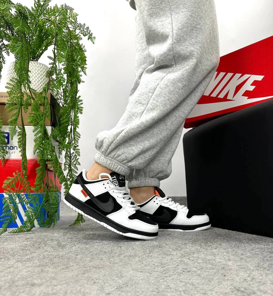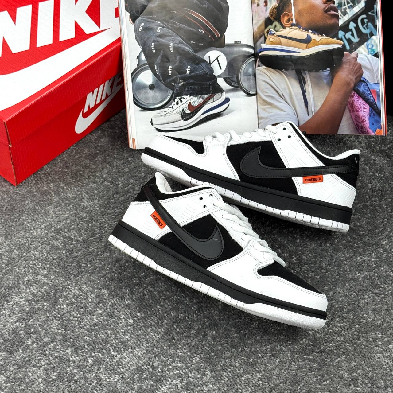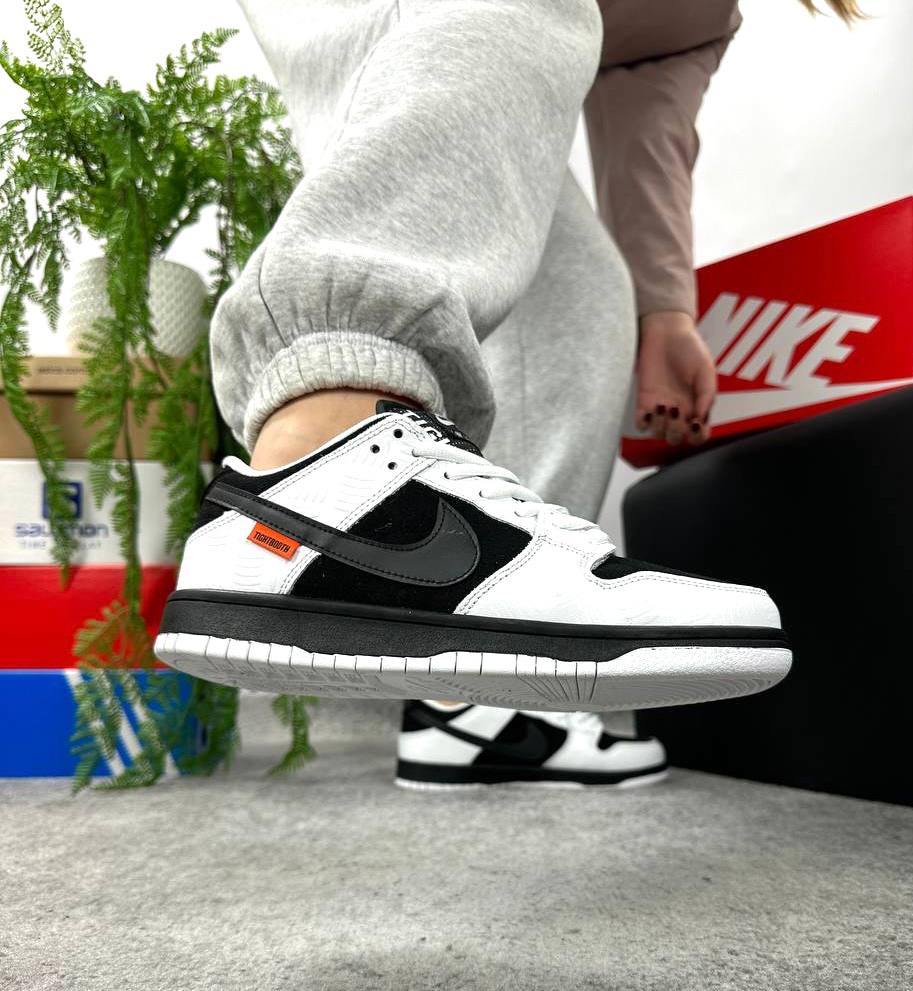 Nike SB Dunk Low Tightbooth White Black — кросівки у чорно-білому кольорі з комбінованим міцним верхом, зручним низьким силуетом та надійною підошвою. Модель підходить для щоденного міського носіння.