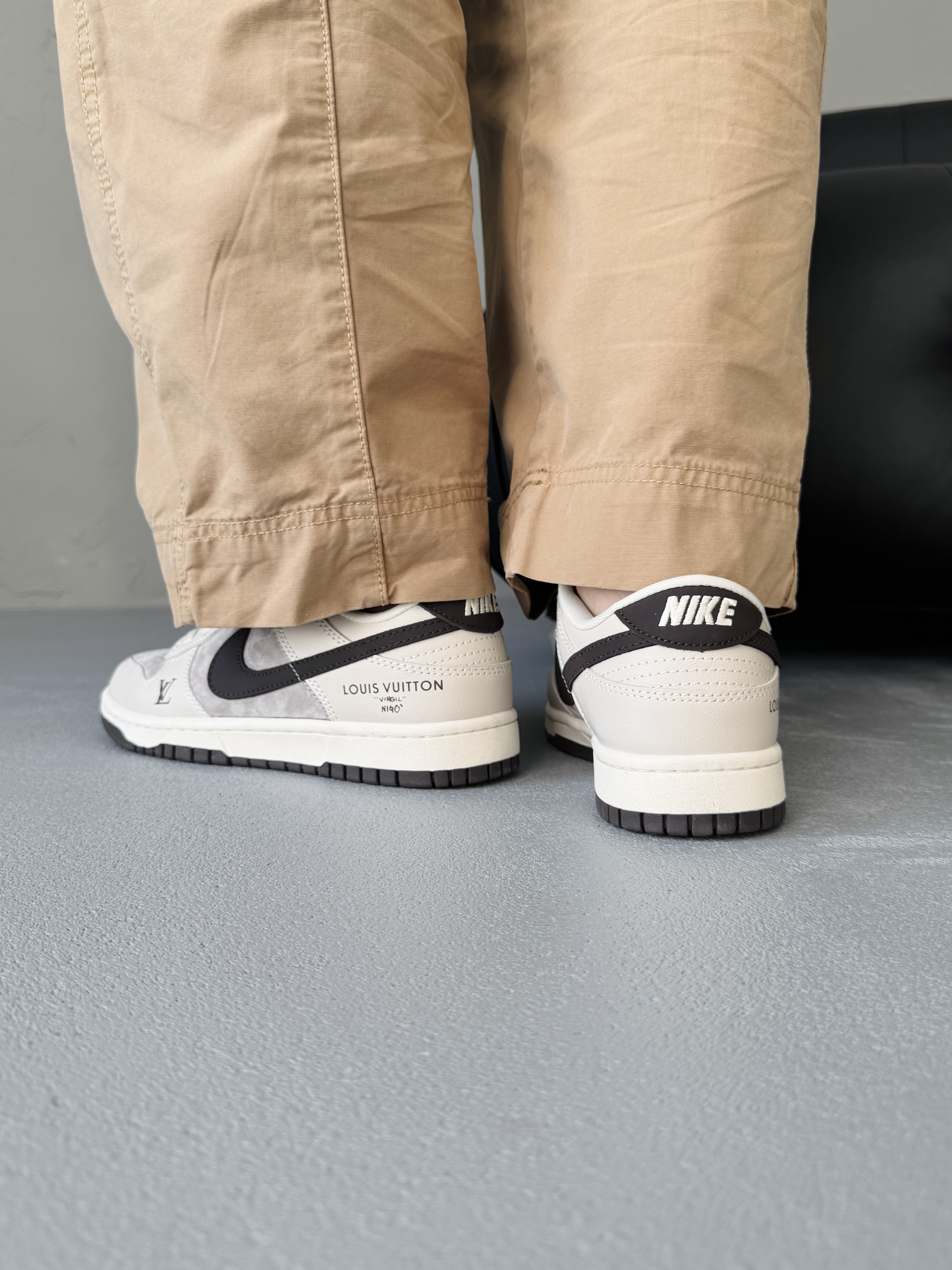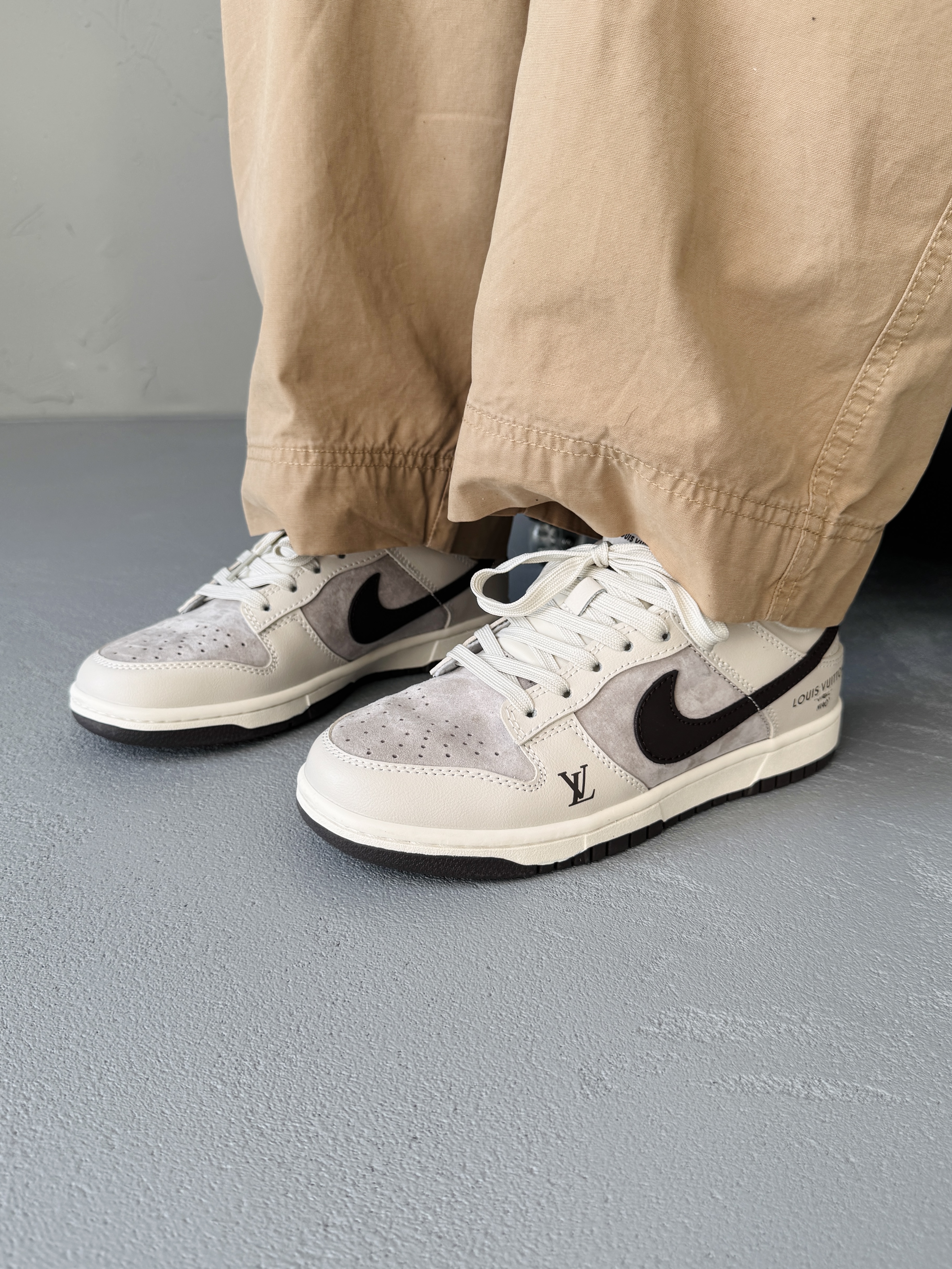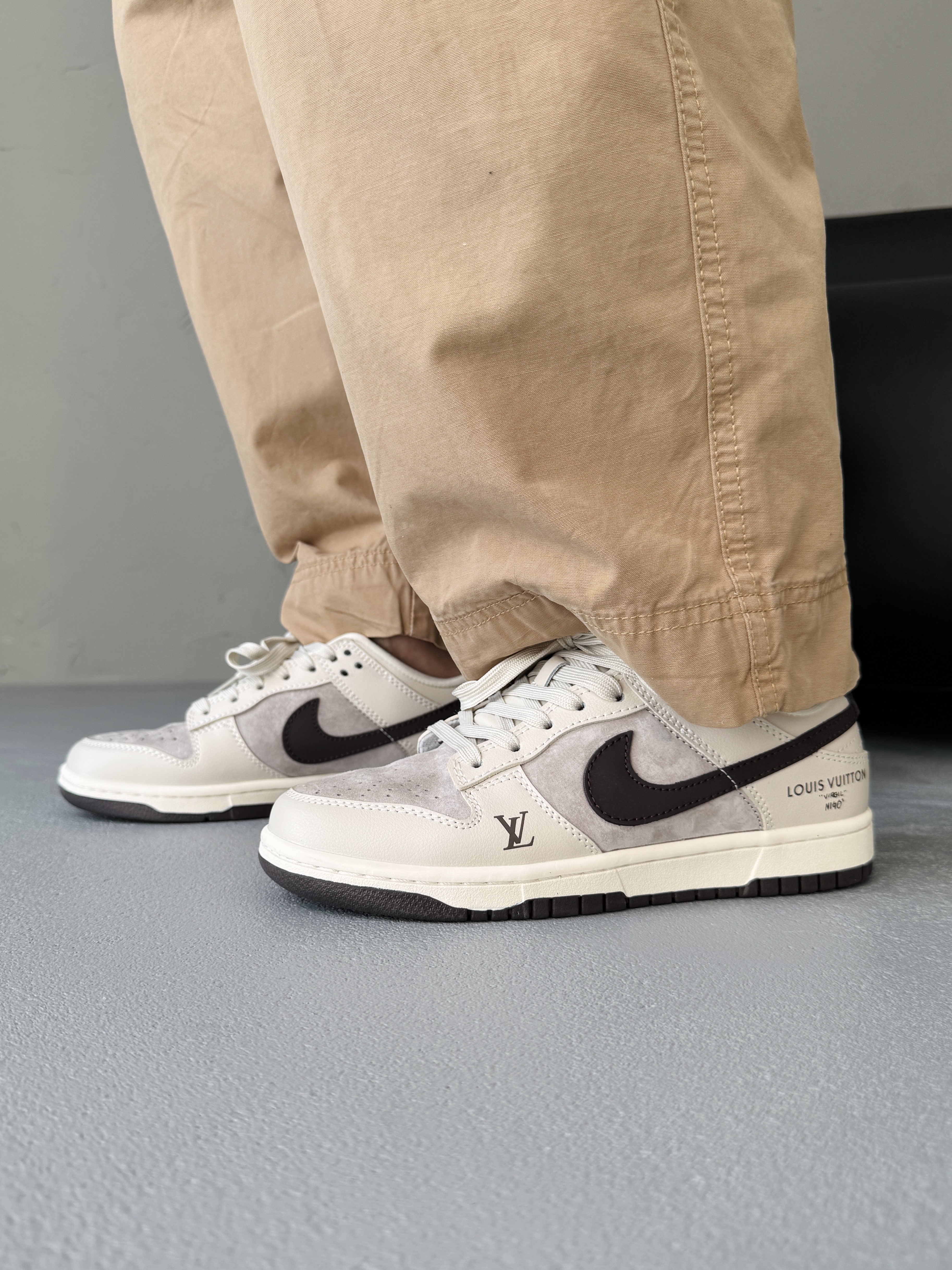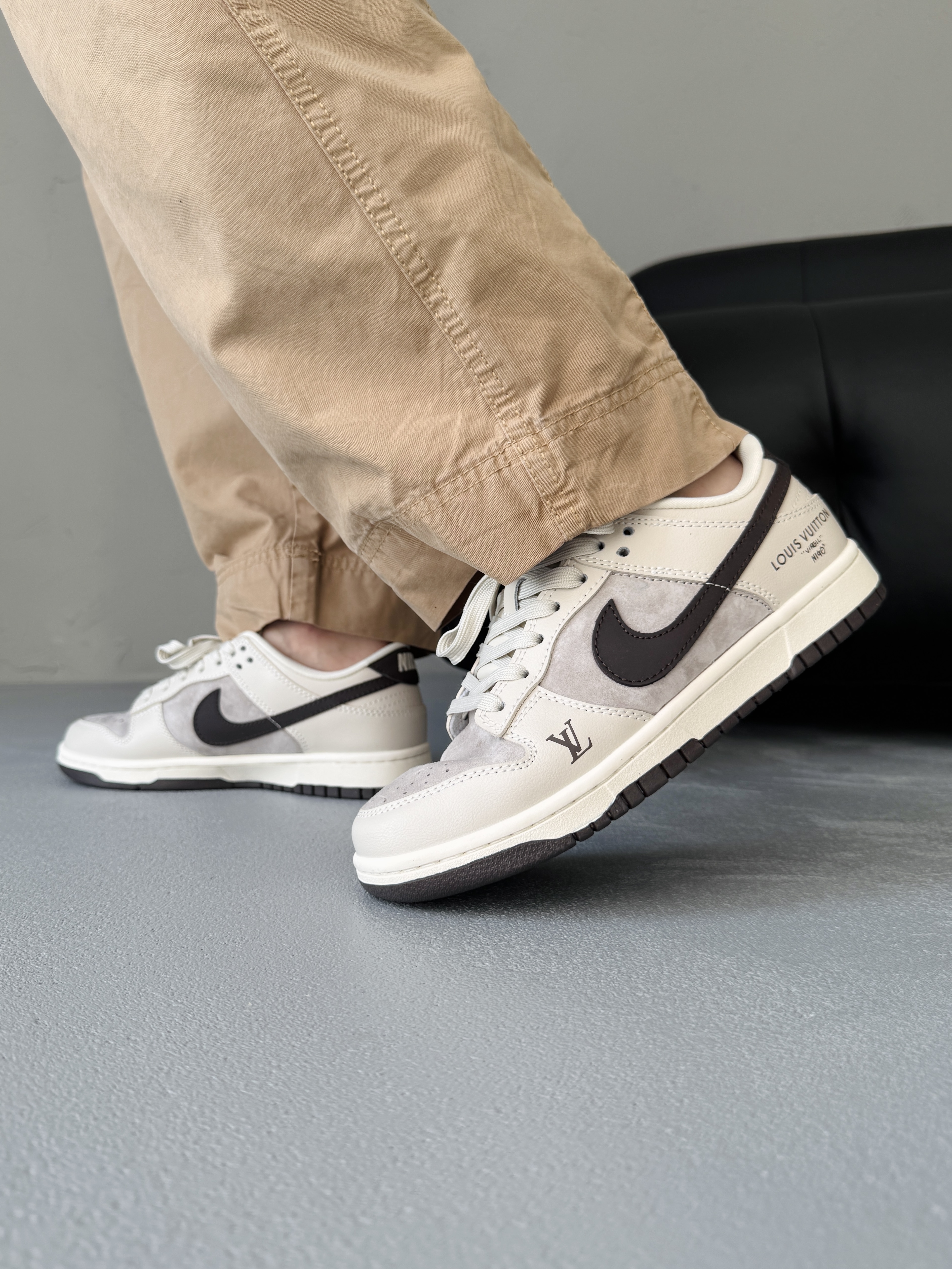 Nike SB Dunk Low x Louis Vuitton Grey/Black — це кросівки, які поєднують стриманий сірo-чорний стиль із високою модою та вуличною естетикою.