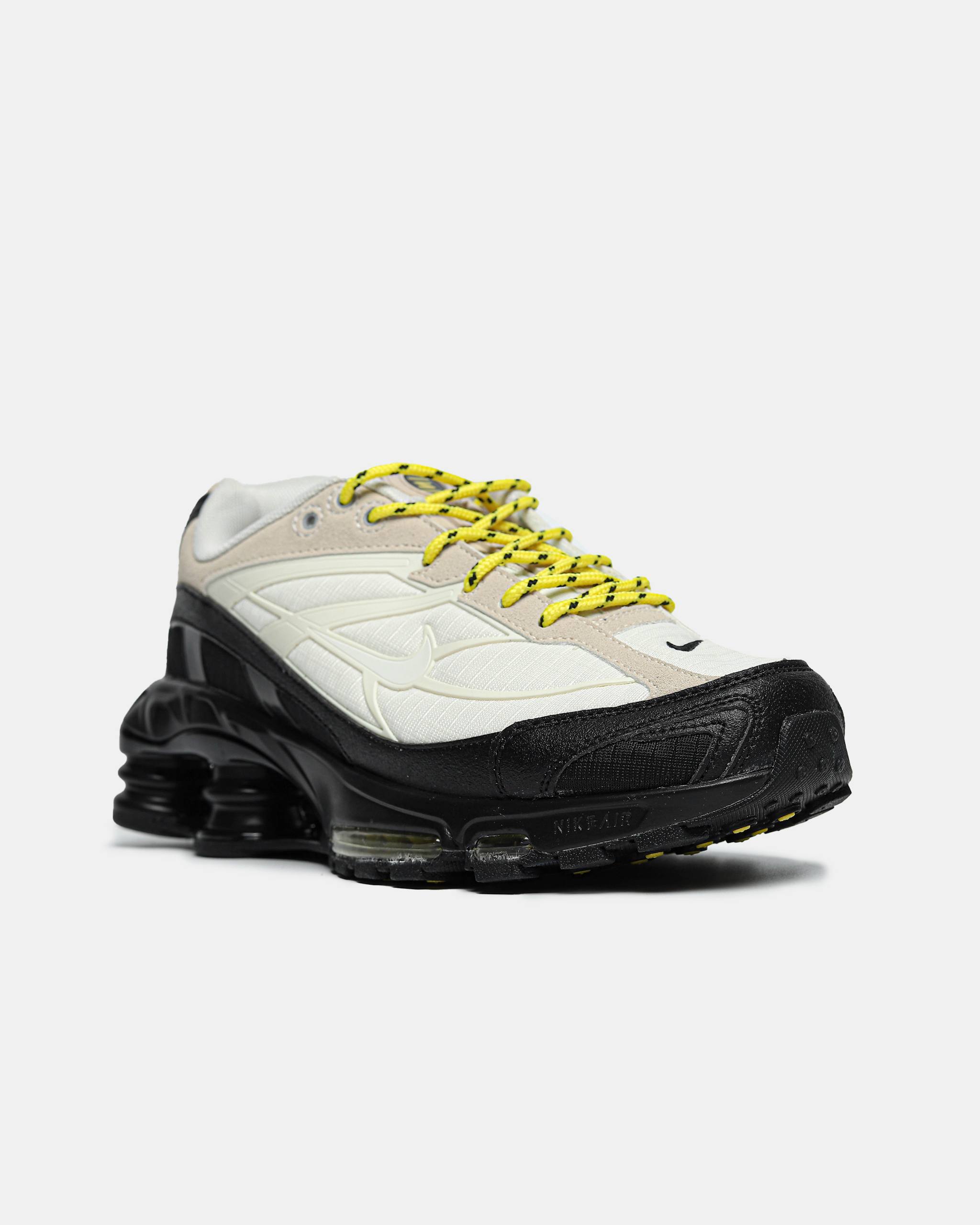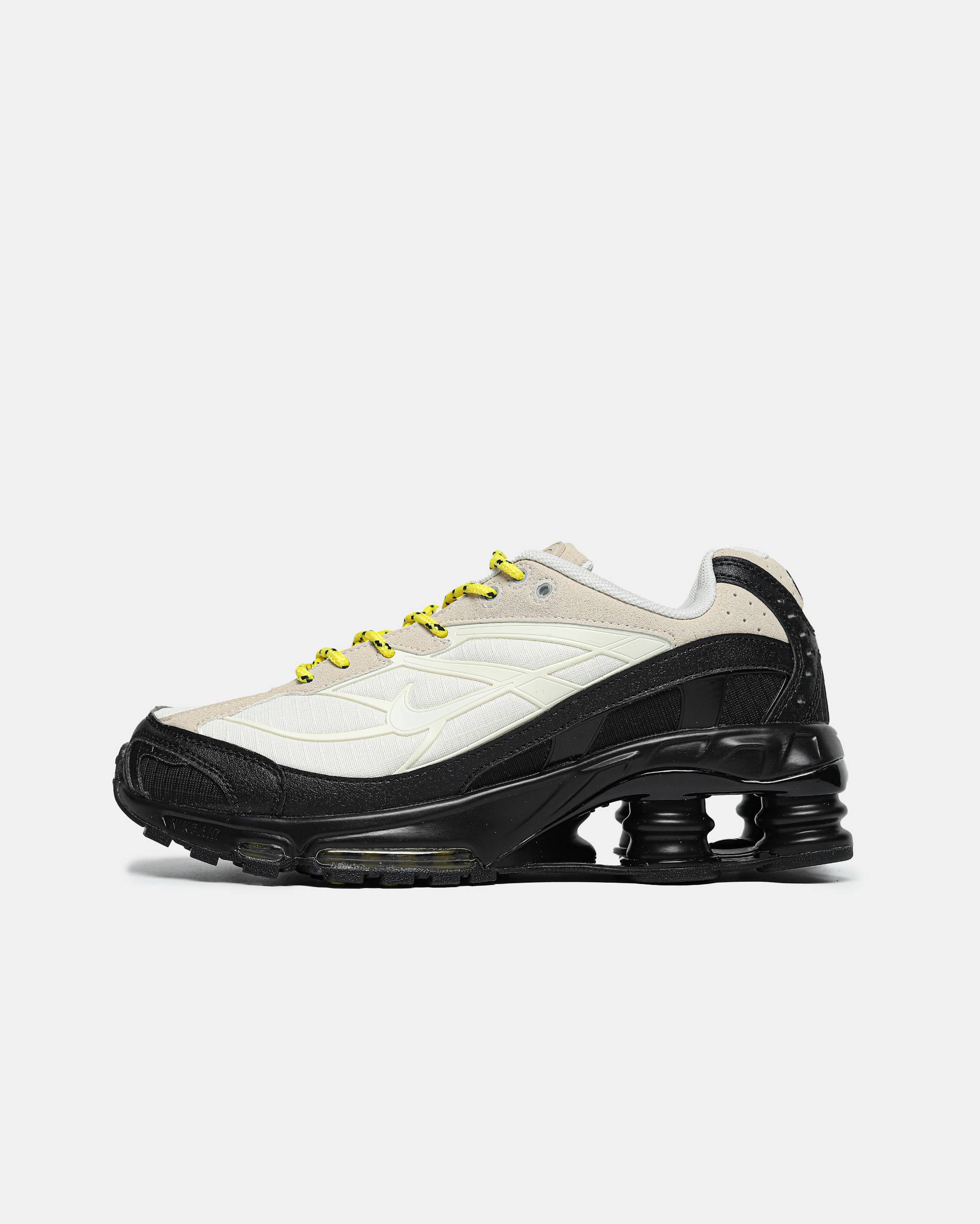 Nike Shox Black Sail — кросівки з пружними амортизуючими колонами в елегантному поєднанні чорного та бежевого кольорів.