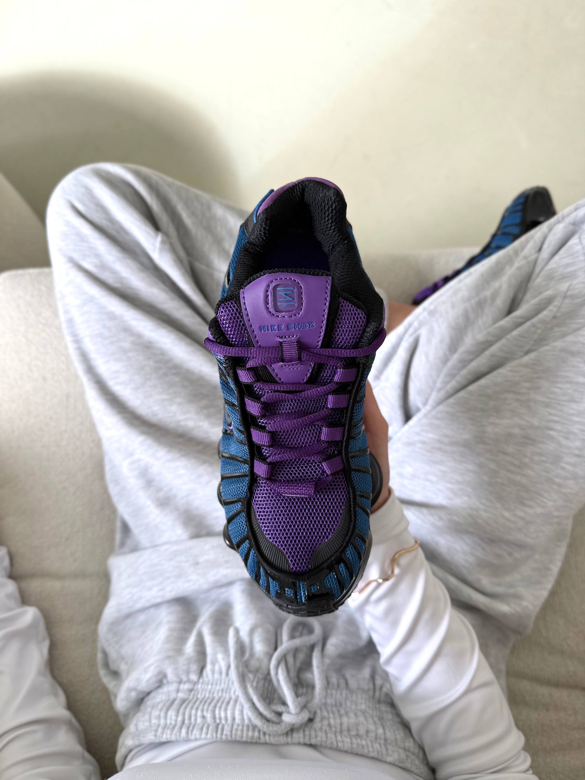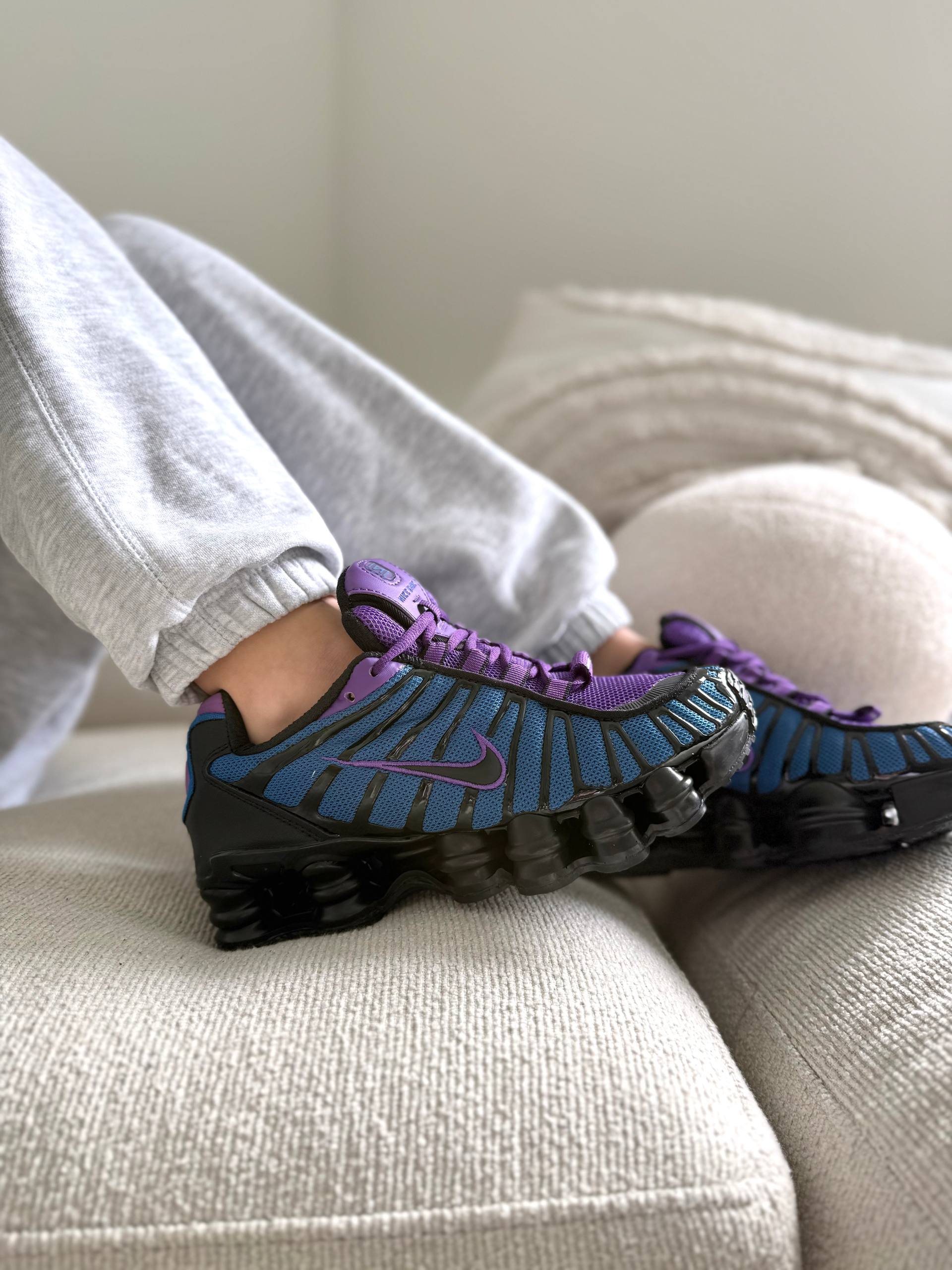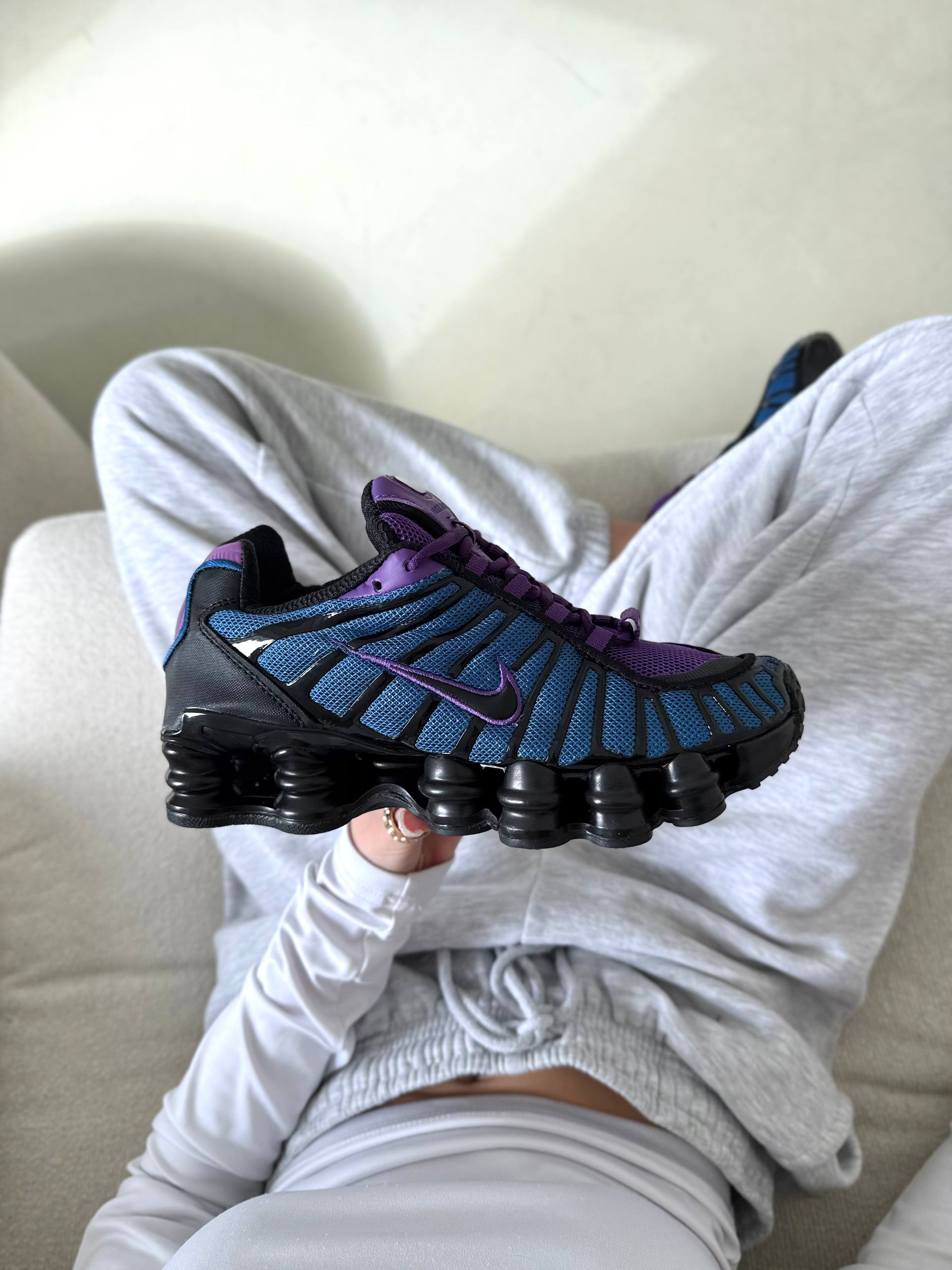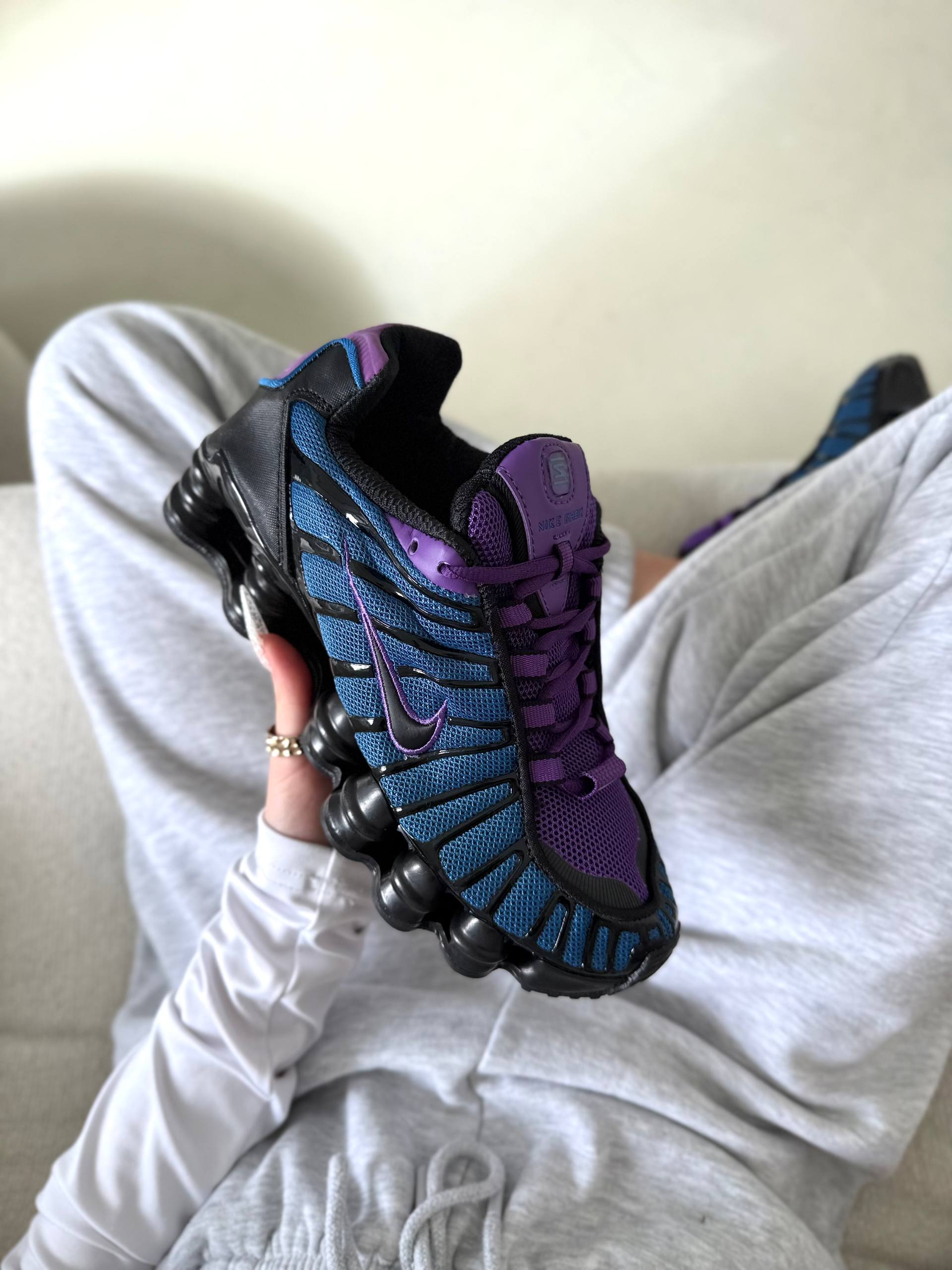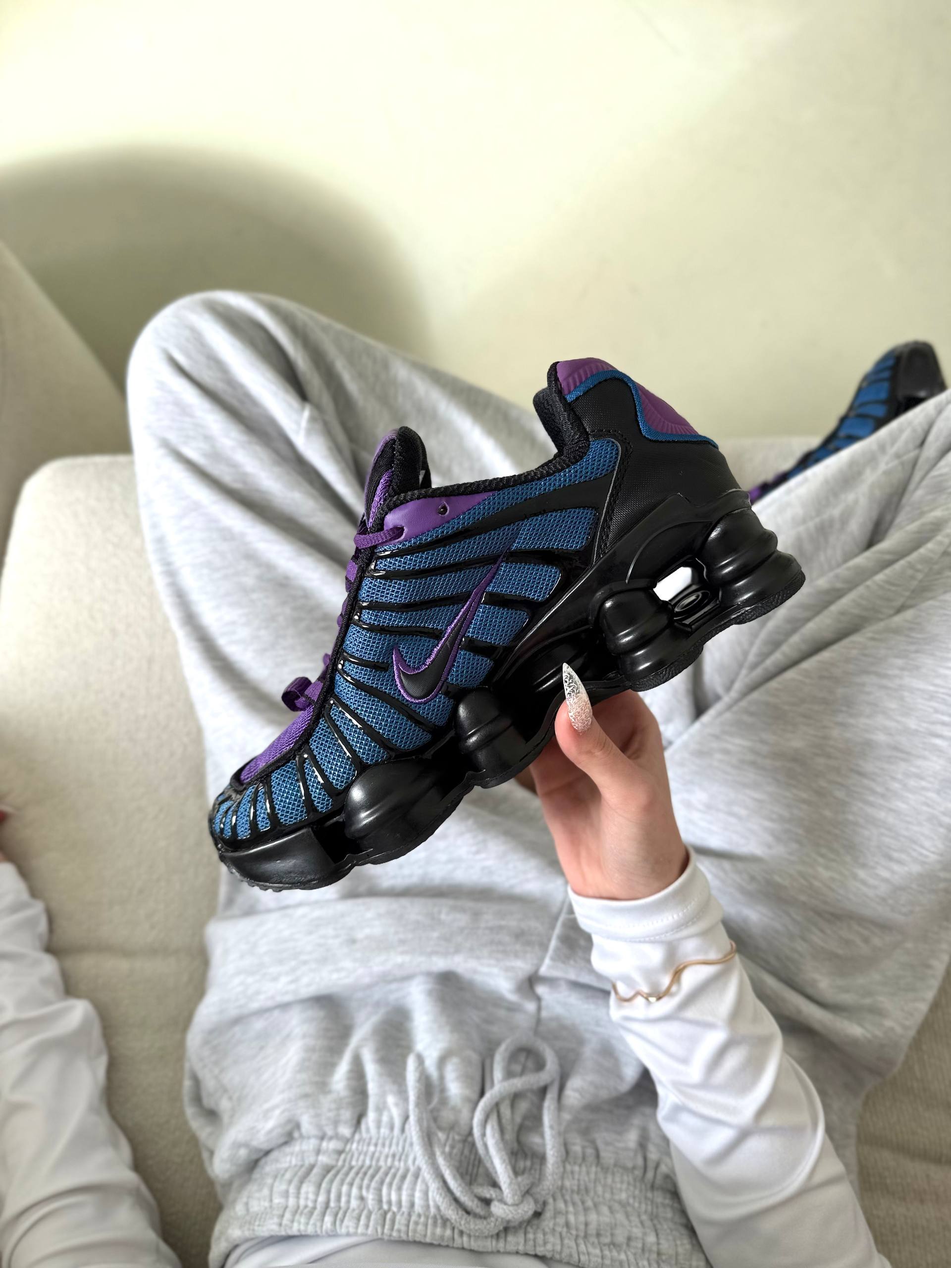 Nike Shox TL Blue Violet Black — кросівки у поєднанні синього, фіолетового та чорного кольорів з футуристичним дизайном і виразною підошвою для щоденного носіння.