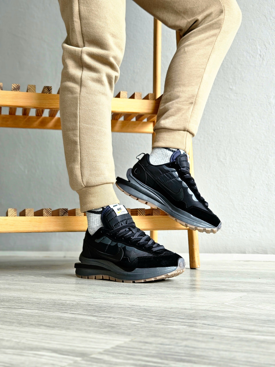 Nike VaporWaffle x Sacai — кросівки з багатошаровим дизайном і легкою амортизацією. Поєднують комфорт для щоденного носіння та оригінальний вигляд.