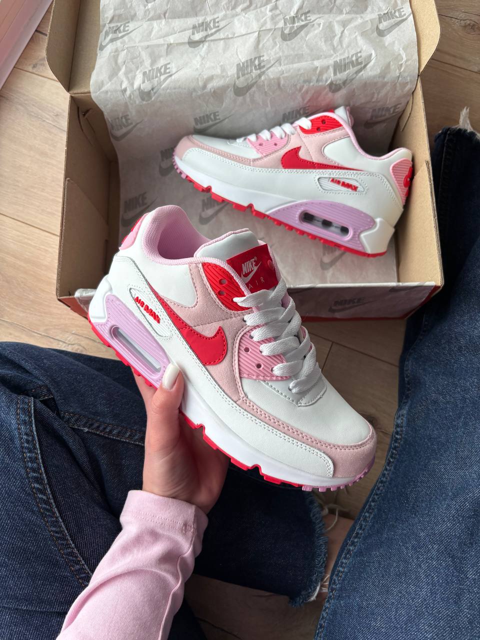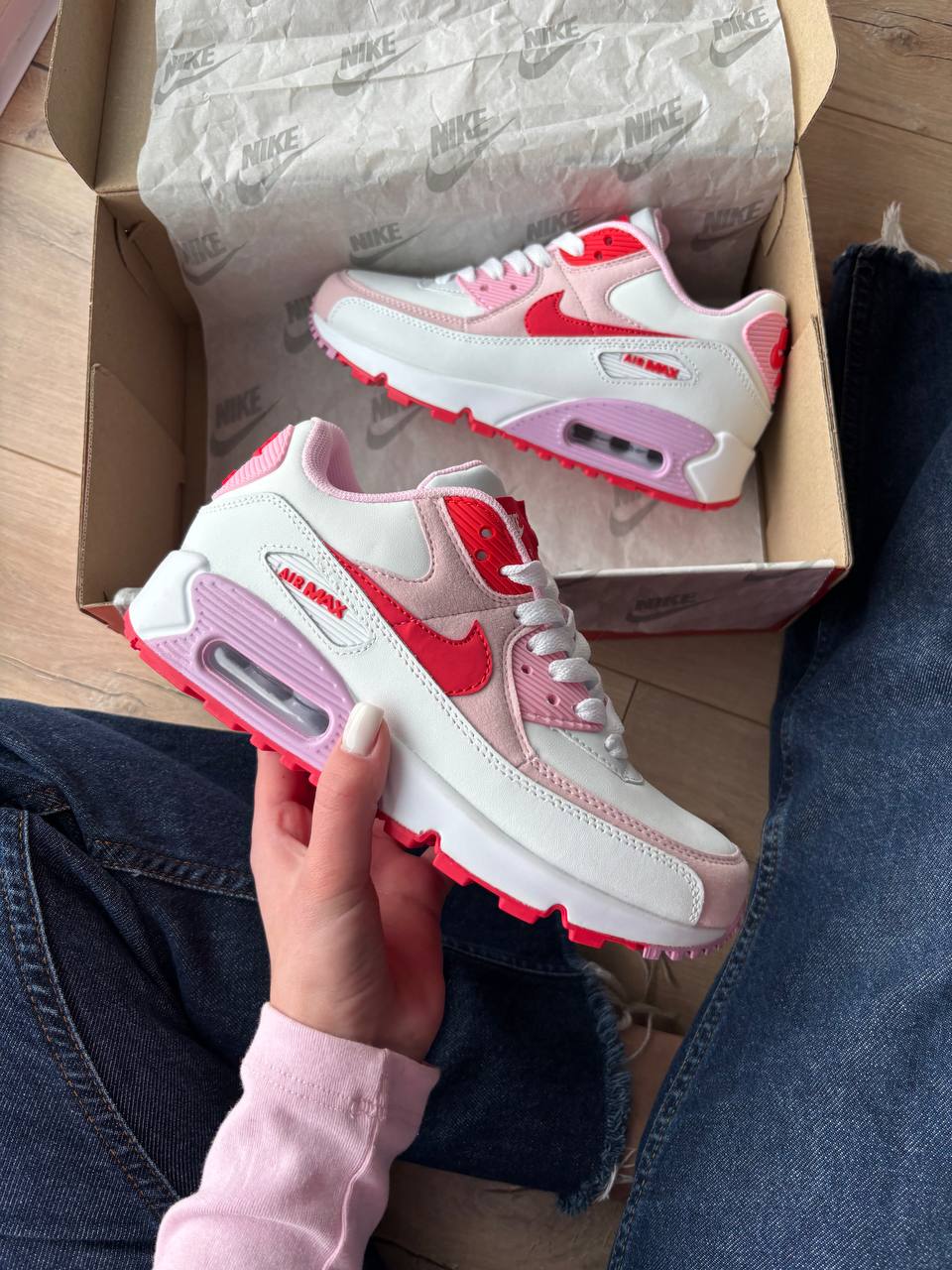 Nike Air Max 90 Valentines Day — кросівки з міцним верхом і пружною амортизацією для щоденного використання. Ніжні кольорові акценти додають виразності та підкреслюють стиль.