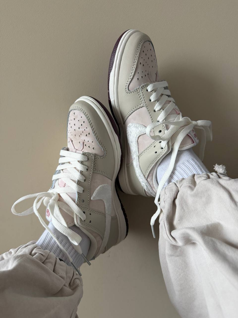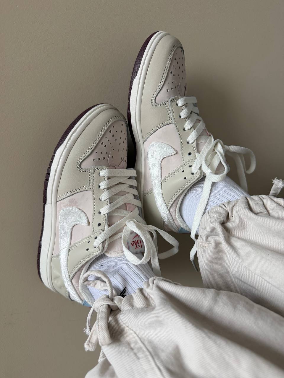 Nike Dunk Low "Valentine's Day" кросівки з тематичними деталями. Забезпечують комфорт під час ходьби. Підходять для прогулянок та повсякденного стилю.