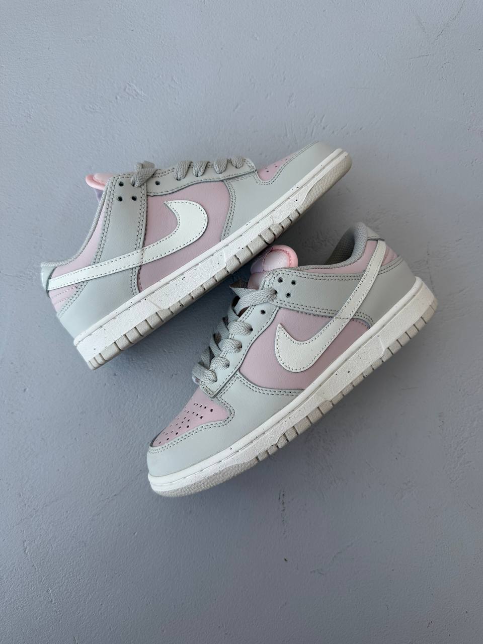 Nike Sb Dunk Pink/Grey –  кросівки у стильному силуеті з гармонійним поєднанням рожевого та сірого кольорів. Мають виразний дизайн, акуратні декоративні елементи та впізнаваний логотип.