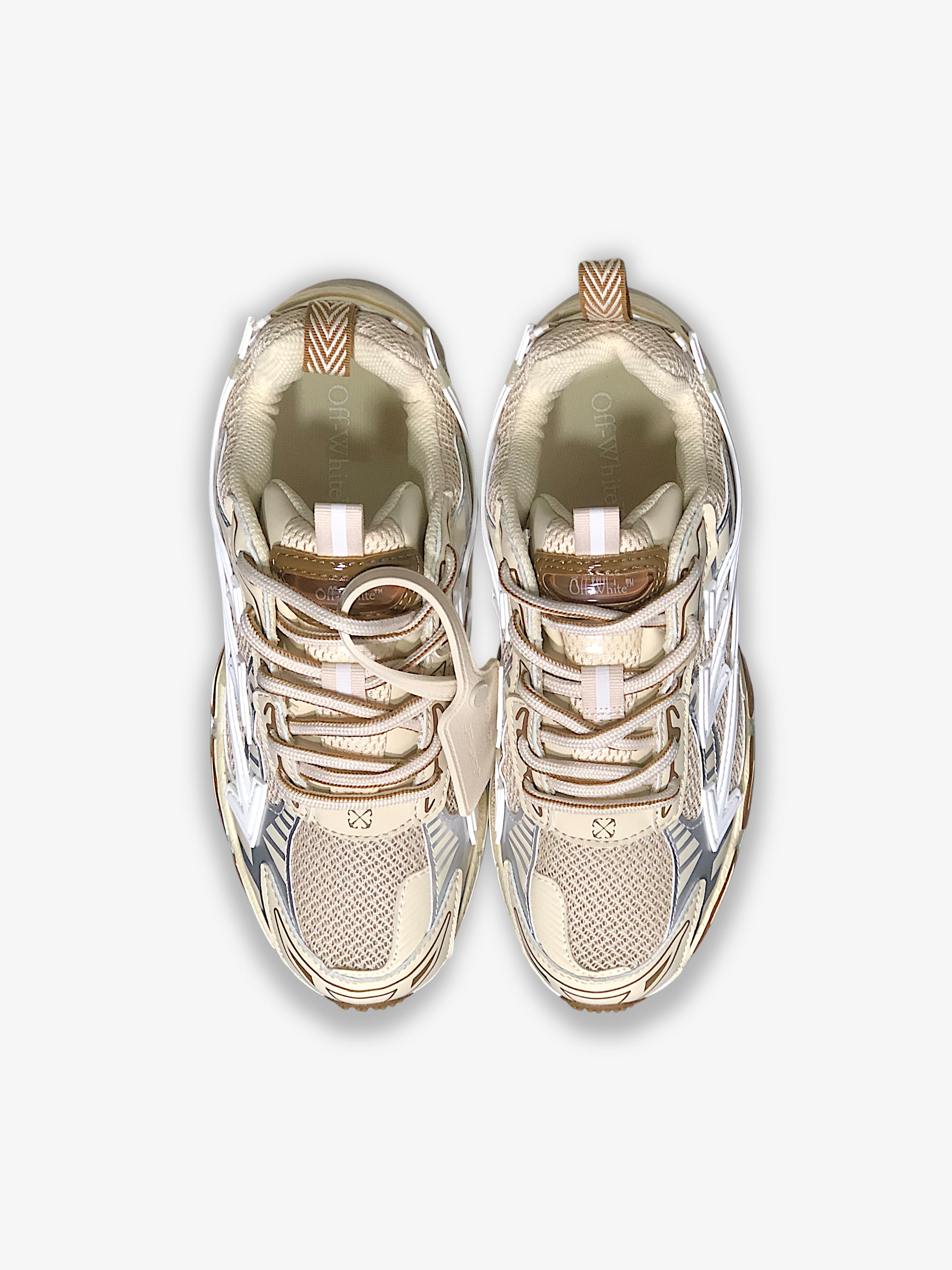 Off-White Be Right Back Beige — це стильні кросівки з мінімалістичним силуетом у світло-бежевому кольорі, доповнені деталями бренду — написами в лапках, стриманим логотипом та індустріальним духом, що поєднують стрітстайл і концептуальний дизайн.