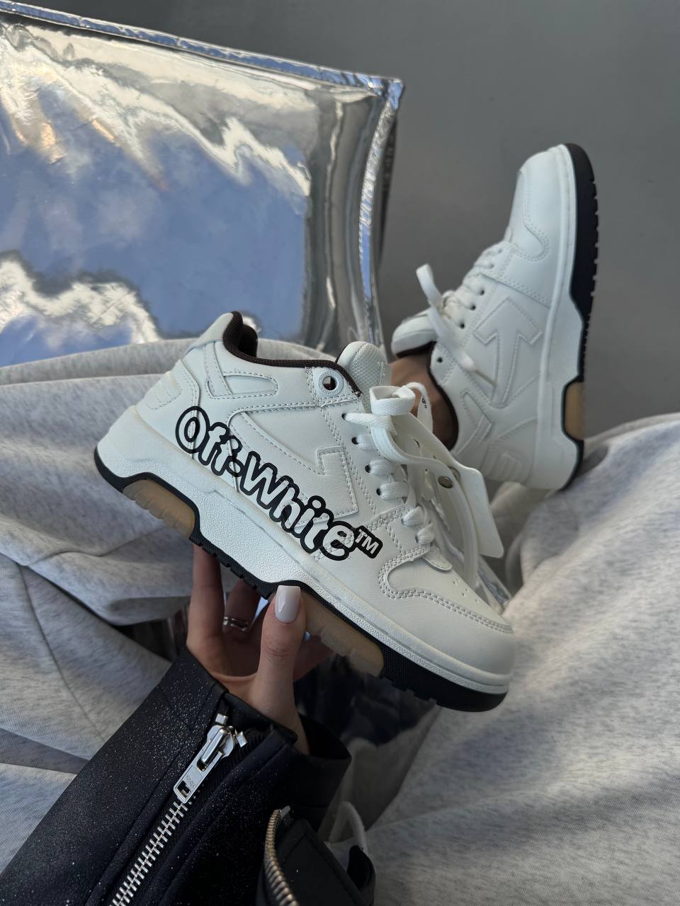 OFF WHITE OUT OF OFFICE FOR WALKING WHITE LOGO BLACK — стильні шкіряні кросівки з фірмовими акцентами бренду. Поєднують преміальні матеріали, комфорт і впізнаваний вуличний стиль.