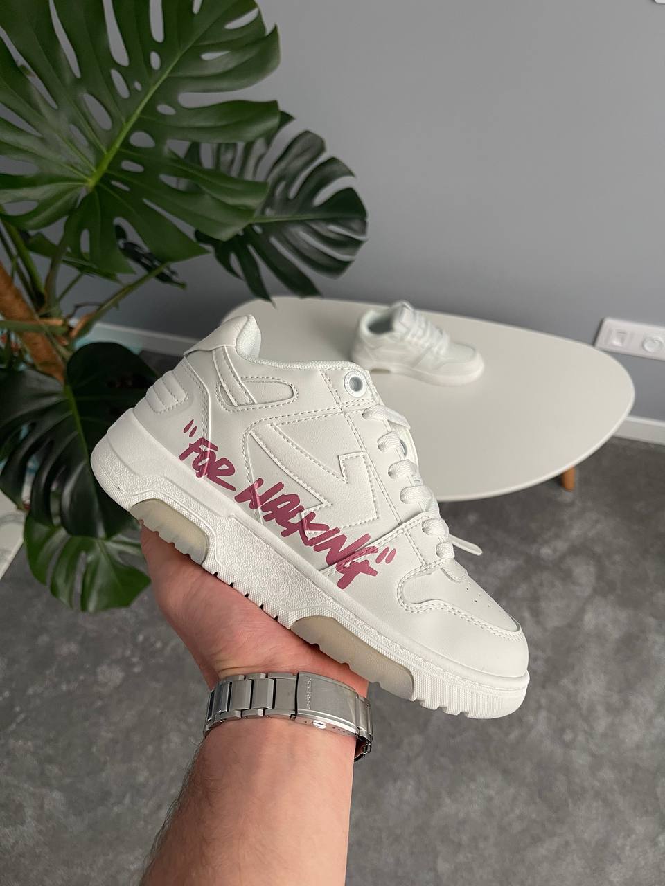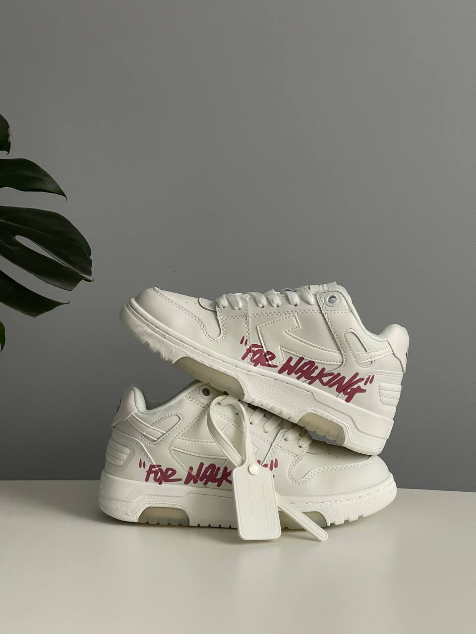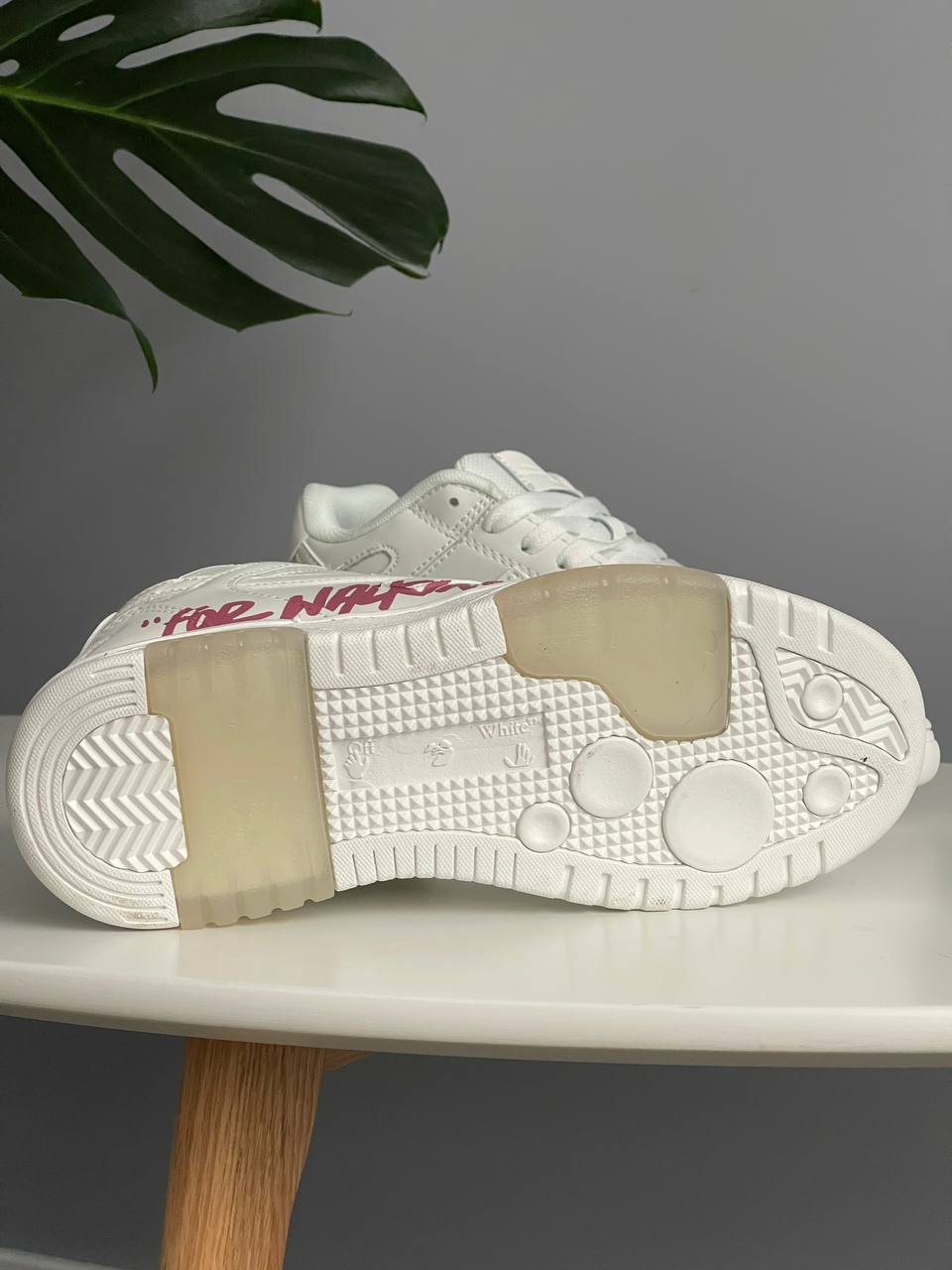 Off White For Walking White Pink — стильні чоботи з біло-рожевими акцентами, масивною підошвою та впізнаваним фірмовим оформленням. Яскравий вибір для модного щоденного образу.