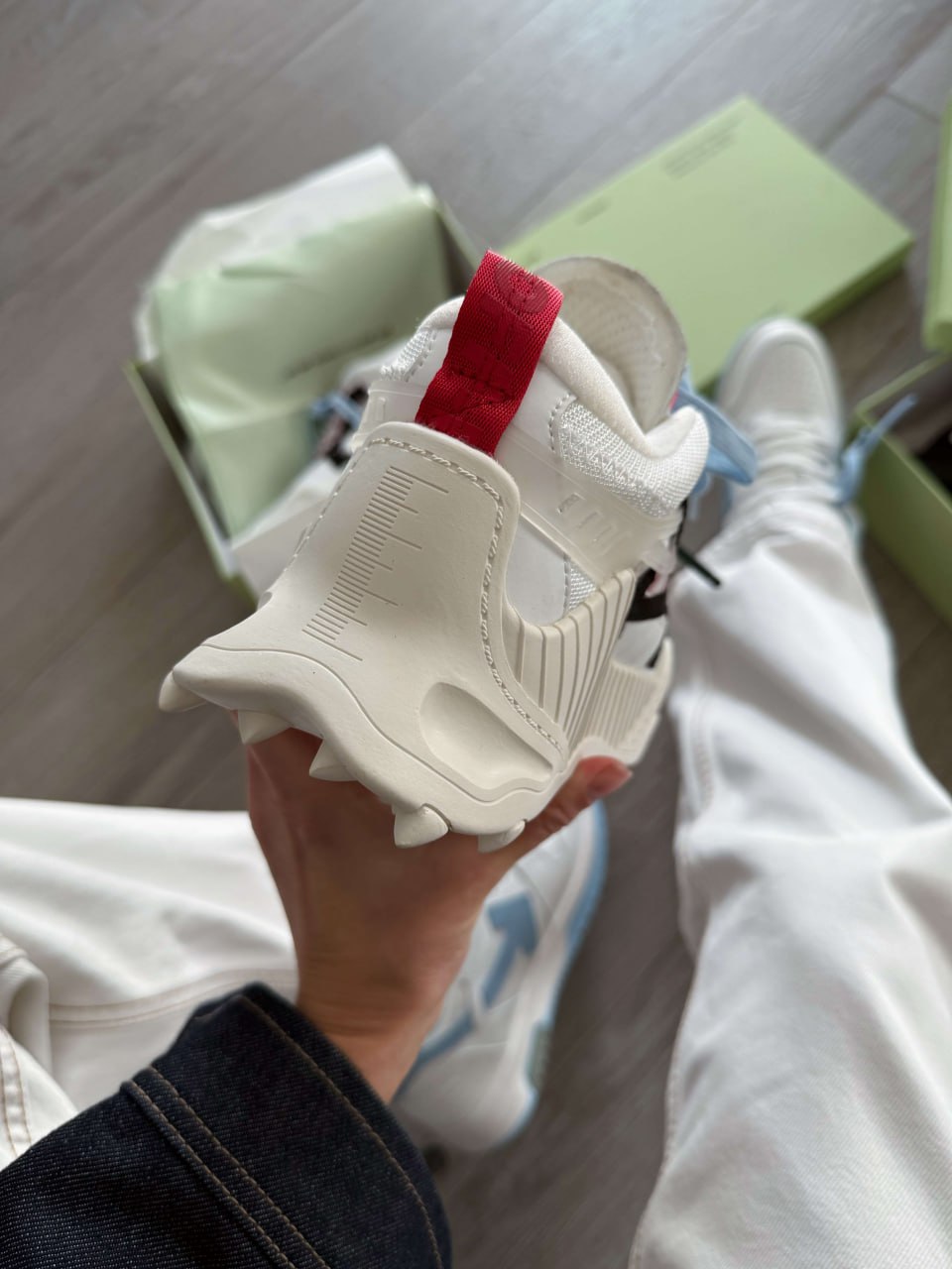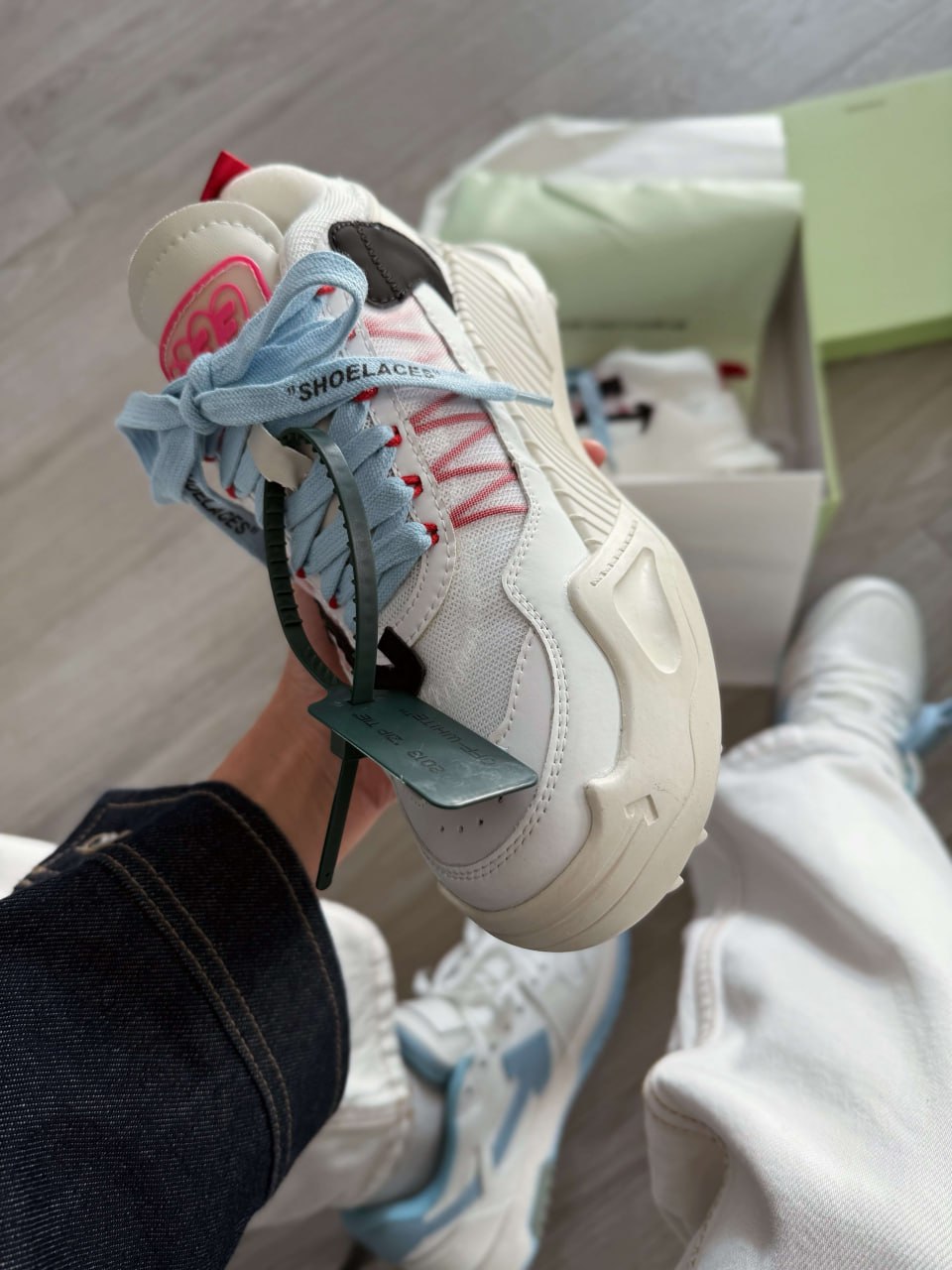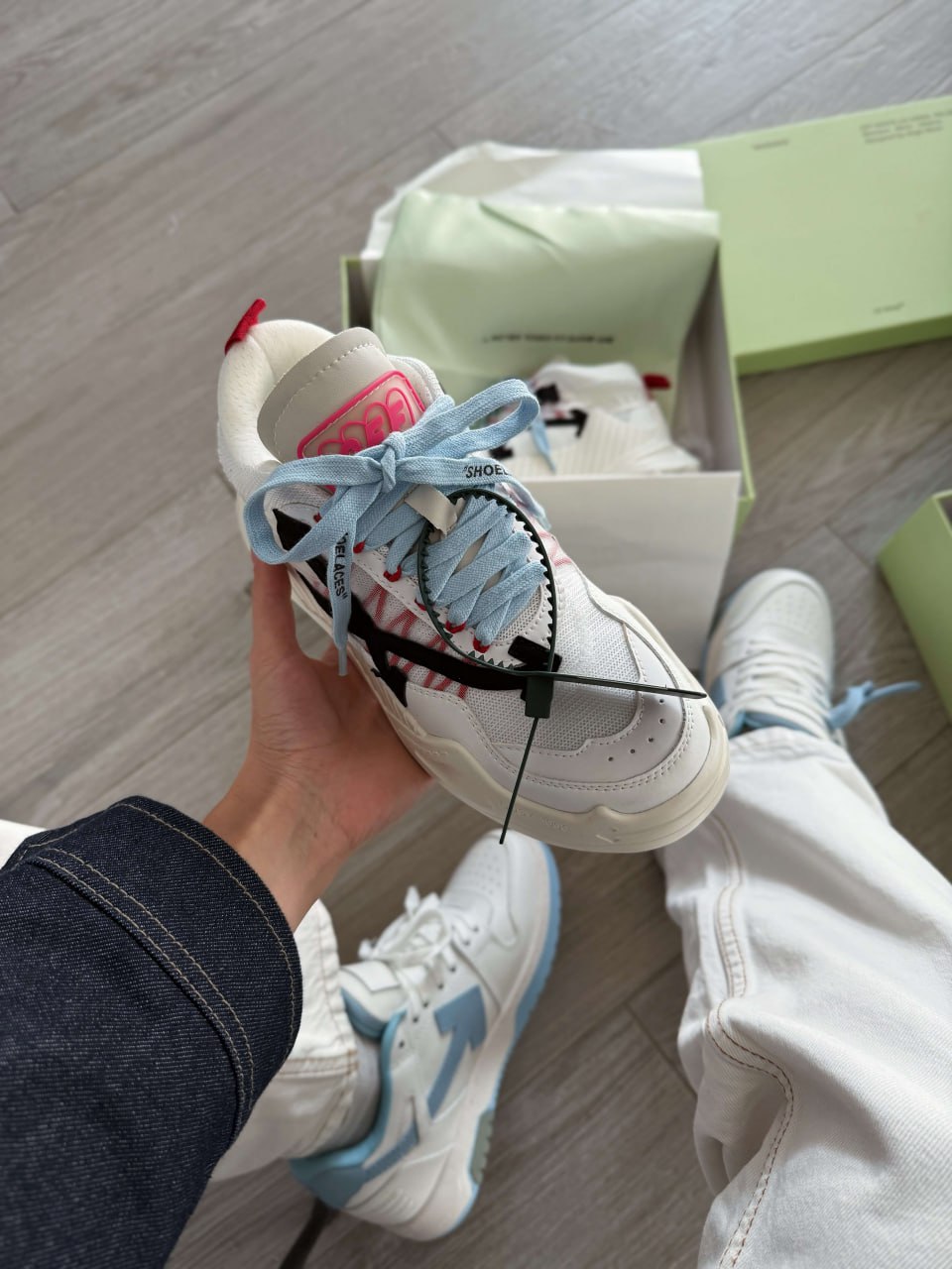 Off-White Odsy-1000 White Pink Black — стильні кросівки з футуристичним дизайном, поєднанням білого, рожевого та чорного кольорів і масивною підошвою.