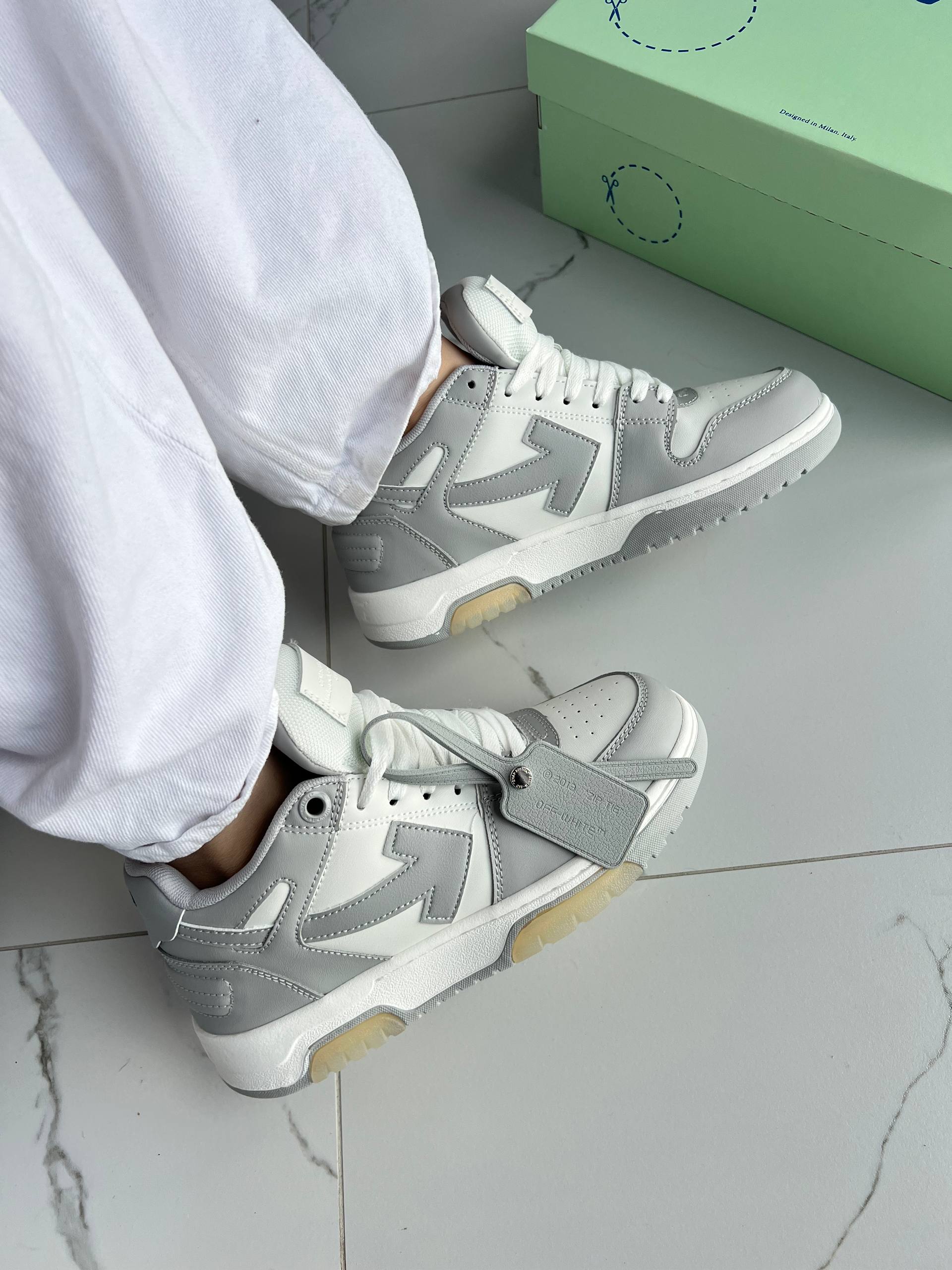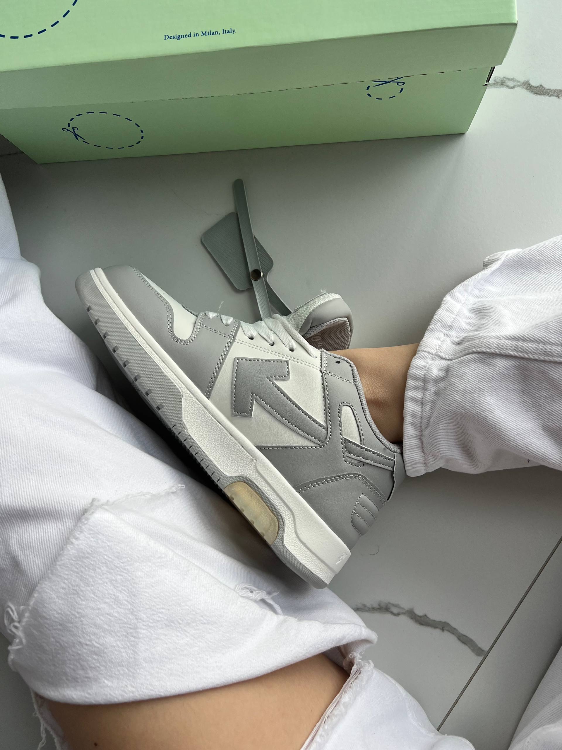 Off-White Out of Office Low Tops Grey White — сучасні кросівки з акцентним дизайном у градієнтних відтінках чорного. Стильна модель для щоденного використання та доповнення будь-якого образу.