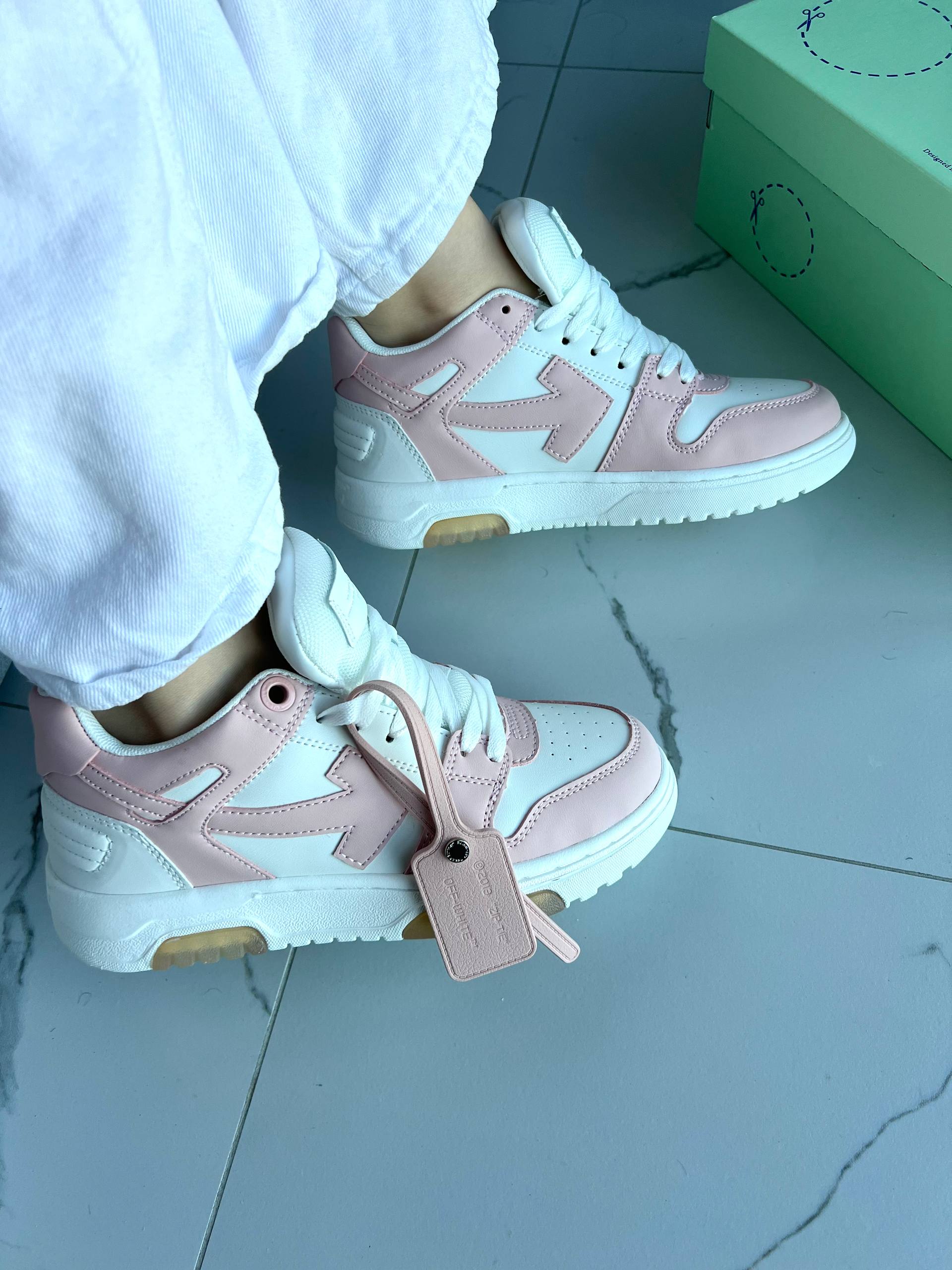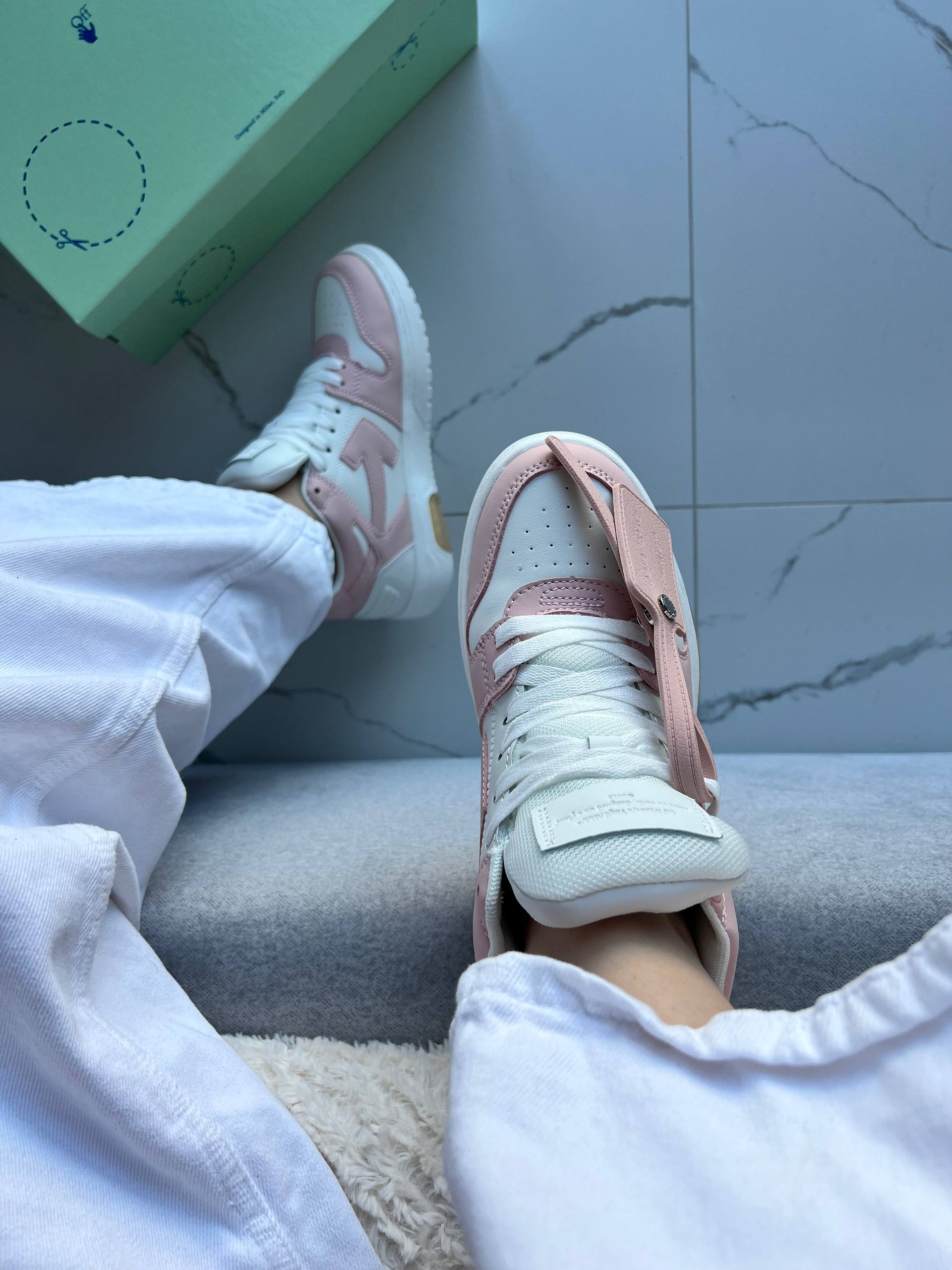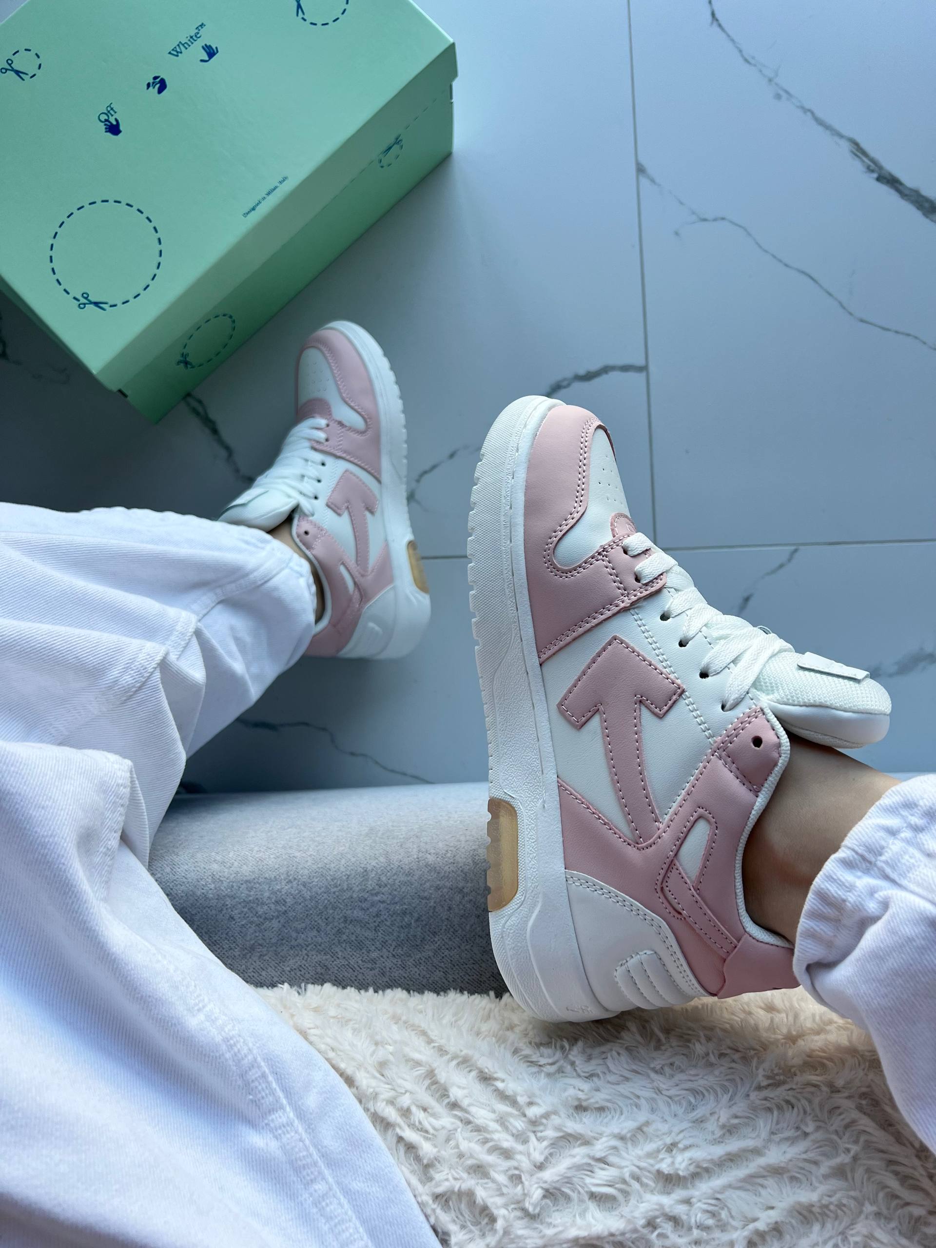 Off-White Out of Office Pink White  стильні кросівки з упізнаваним дизайном Off-White, виконані у ніжному поєднанні білого та рожевого для сучасного міського образу.