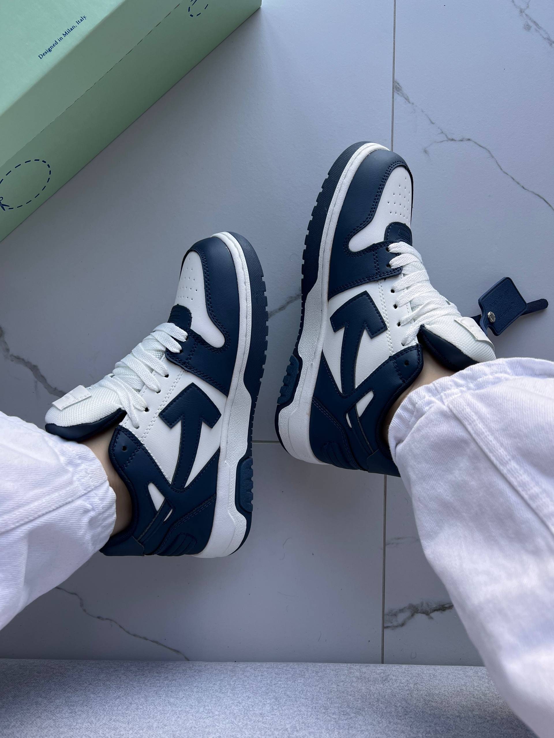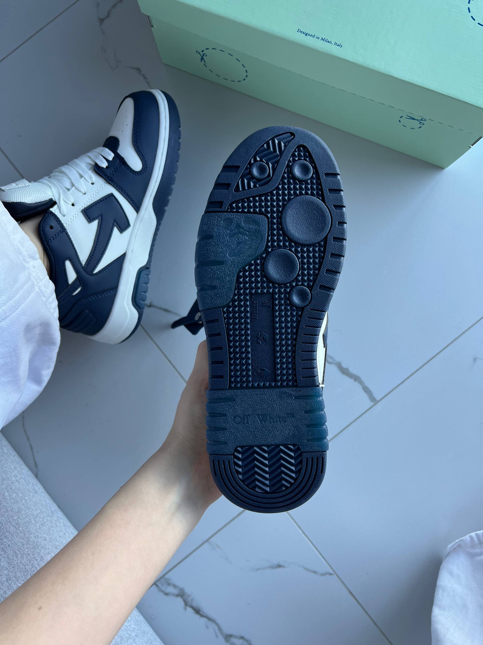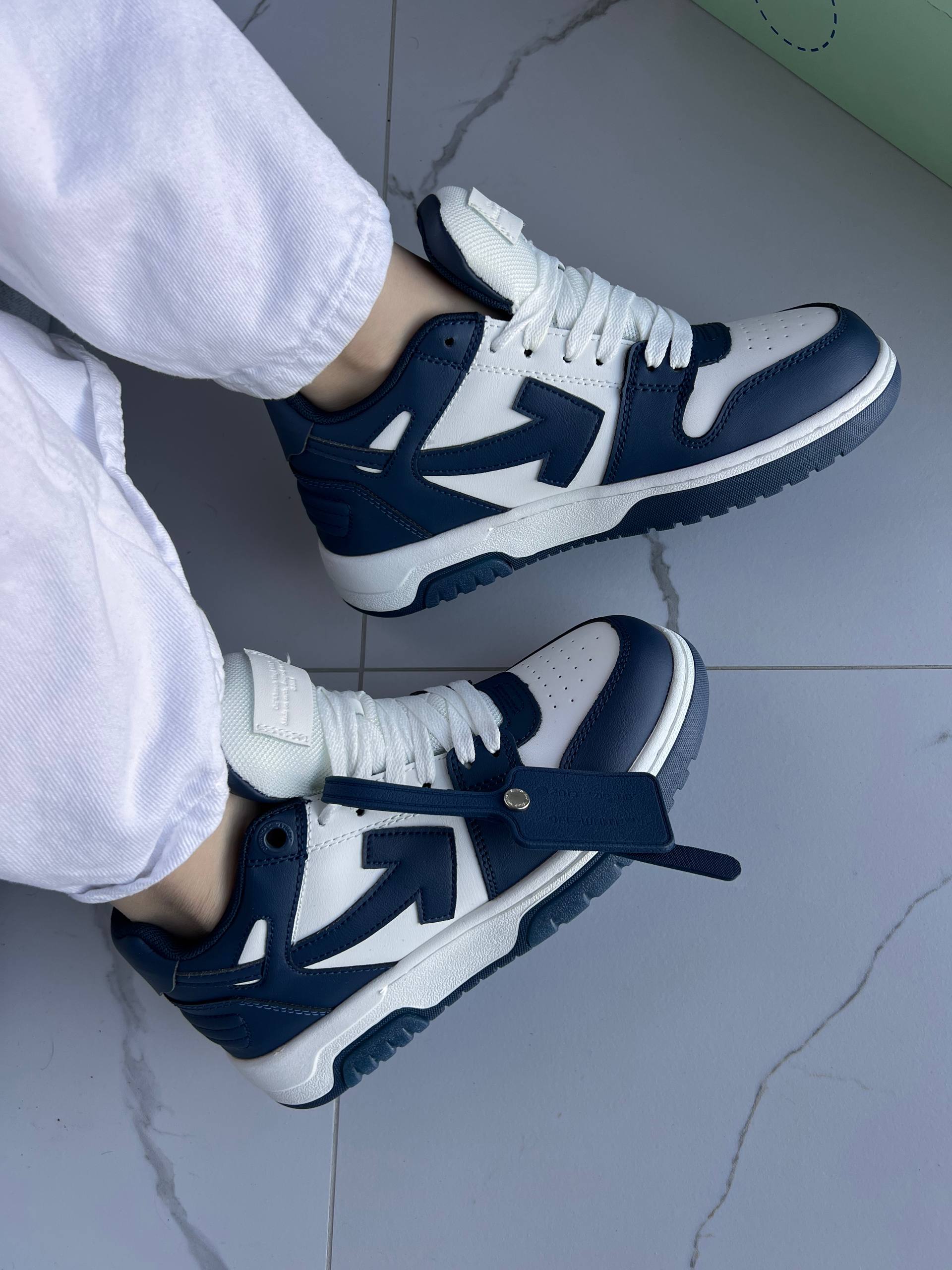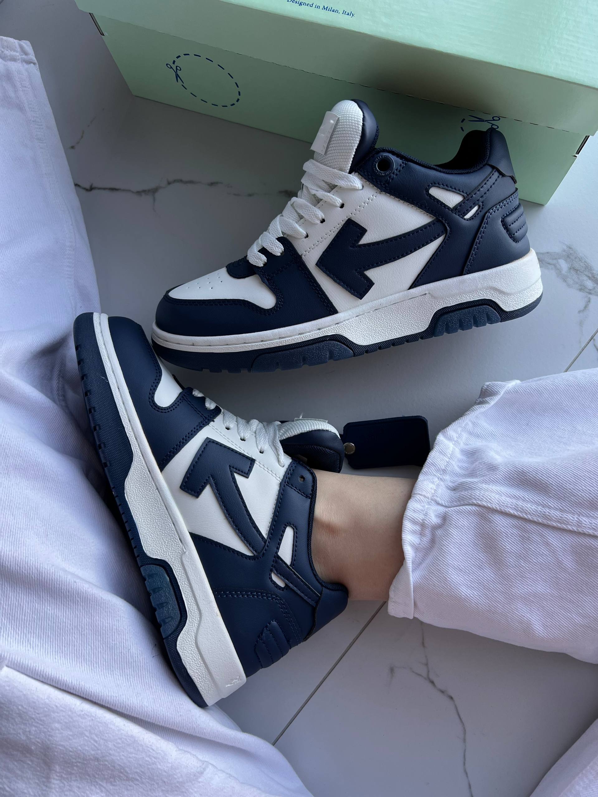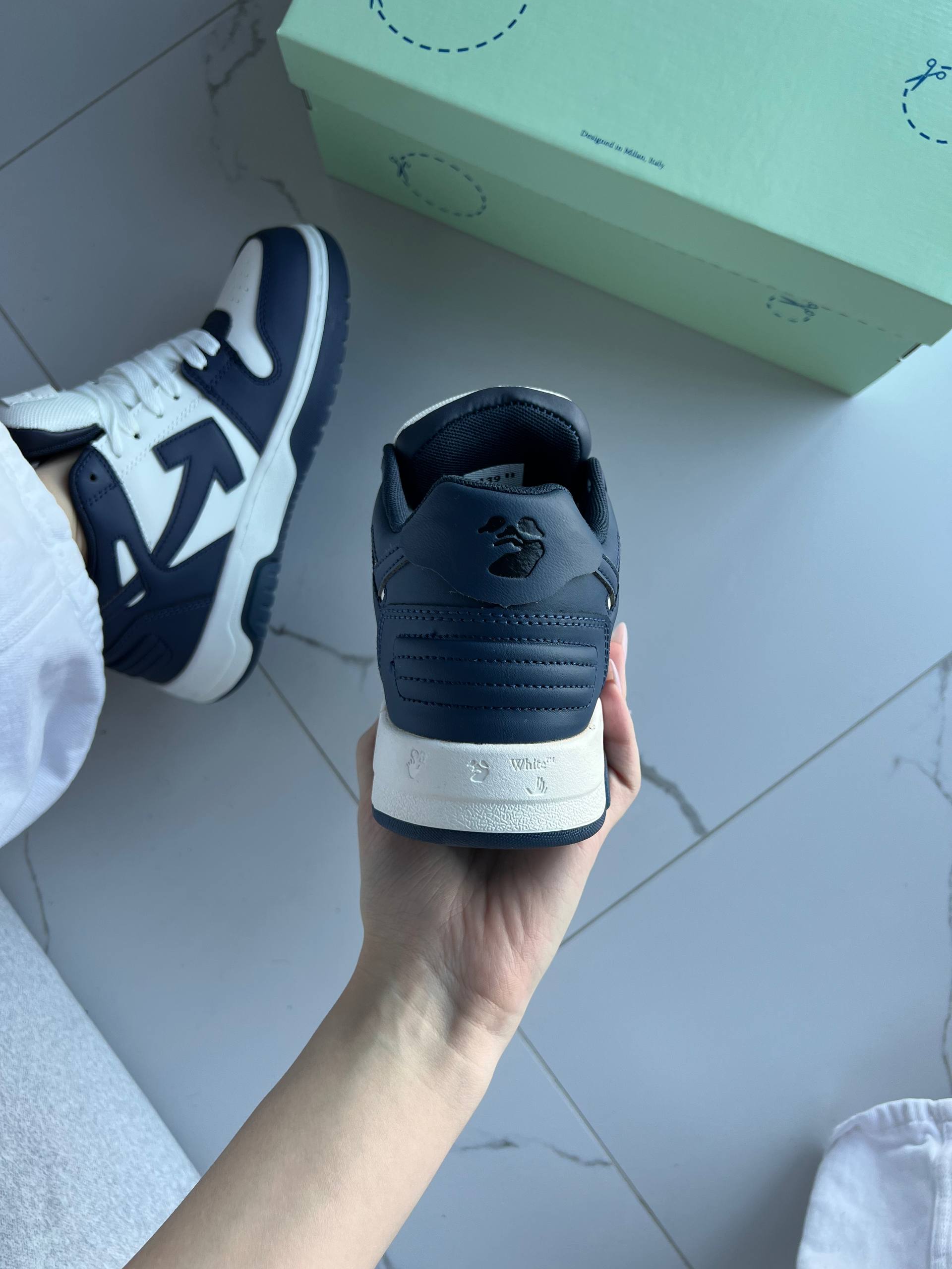 Off-White Out of Office Tops Dark Blue White — сучасні кросівки з акцентним дизайном у градієнтних відтінках чорного. Стильна модель для щоденного використання та доповнення будь-якого образу.