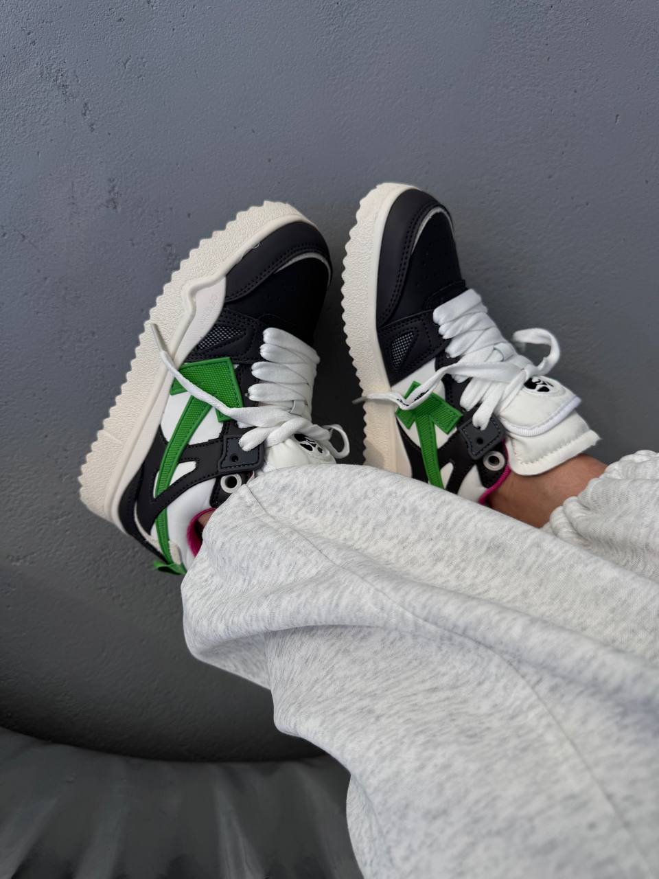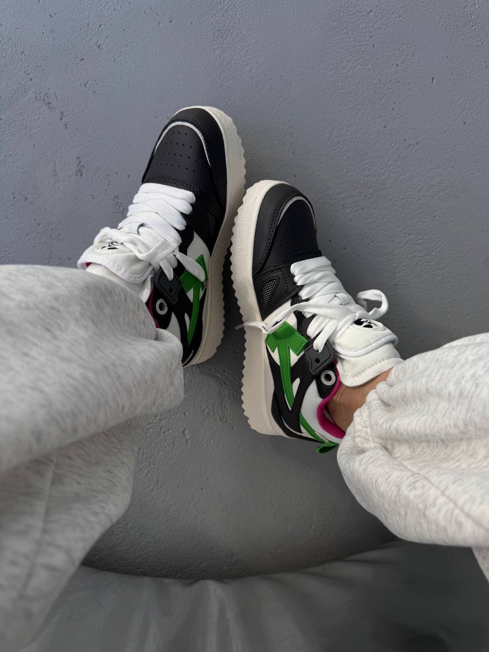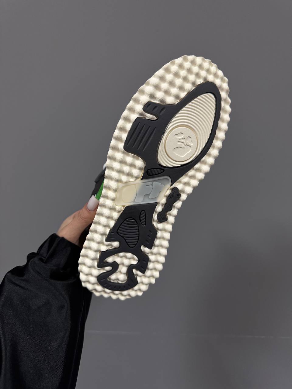 Off White Sponge Mid Top Black — стильні високі кросівки з преміальної шкіри та замші. Вирізняються впізнаваними фірмовими деталями й забезпечують комфорт у сучасному вуличному стилі.