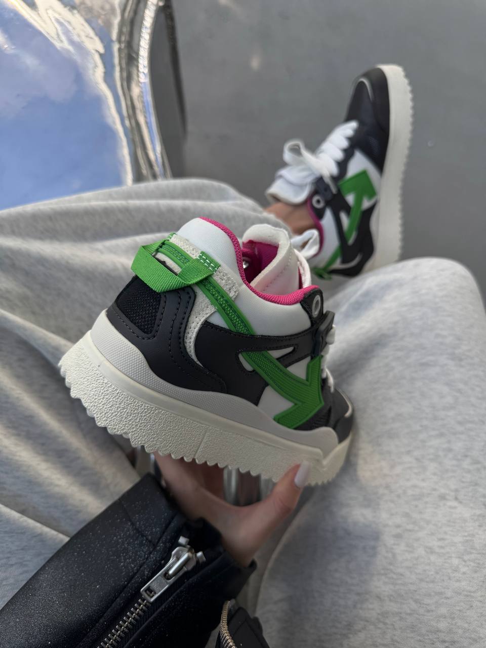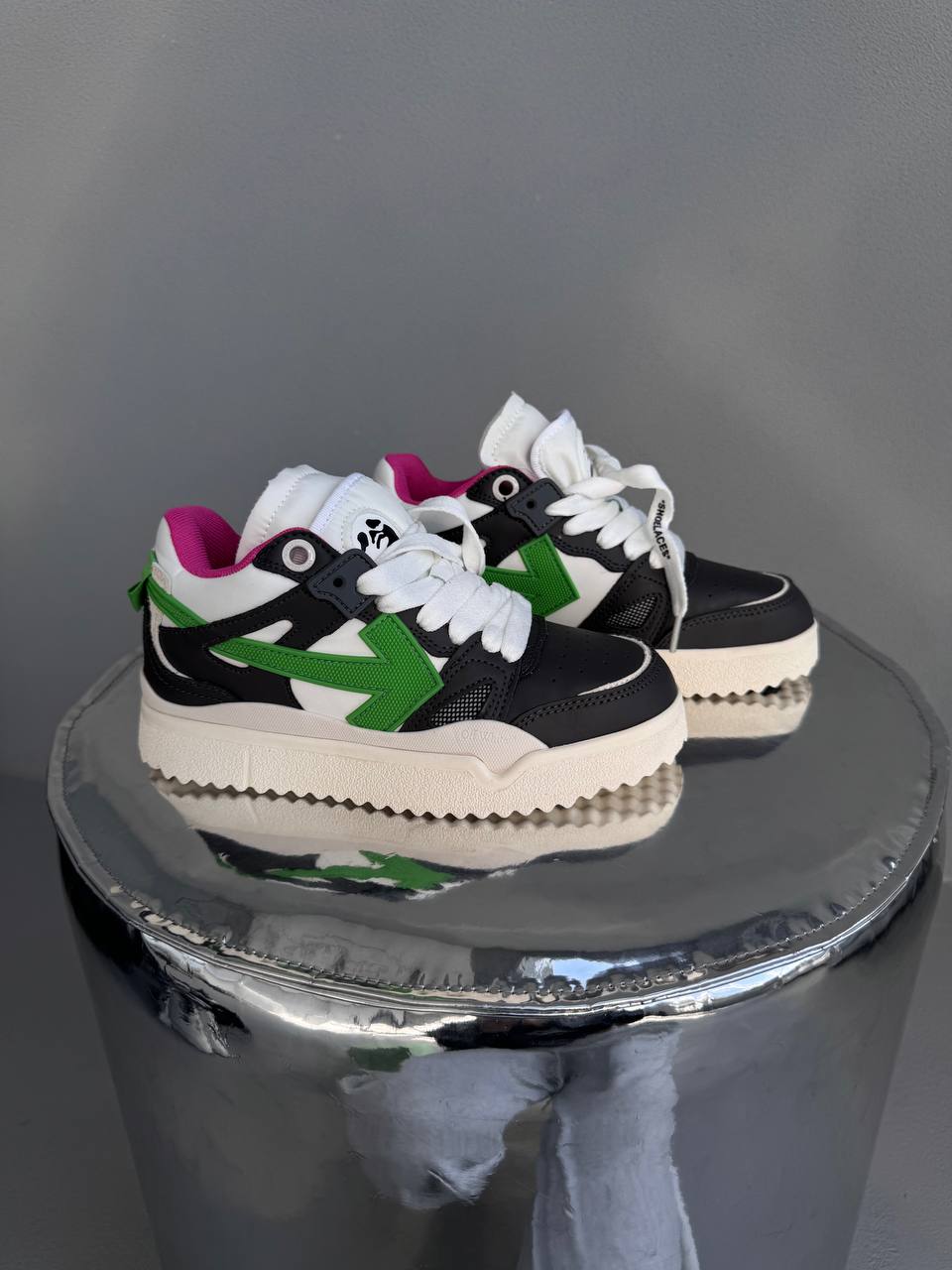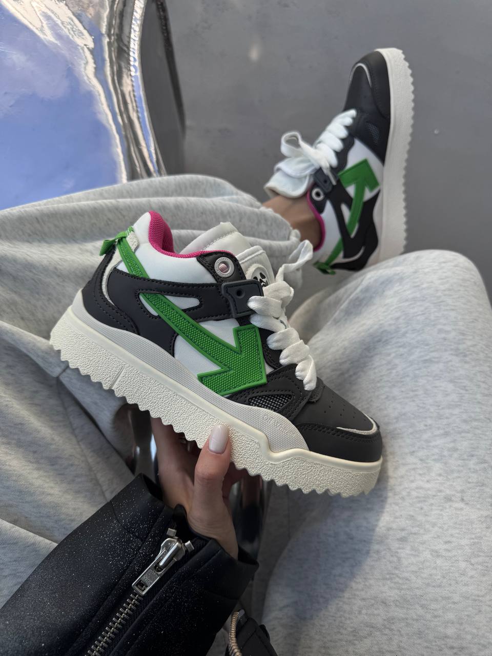 Off White Sponge Mid Top Black — стильні високі кросівки з преміальної шкіри та замші. Вирізняються впізнаваними фірмовими деталями й забезпечують комфорт у сучасному вуличному стилі.