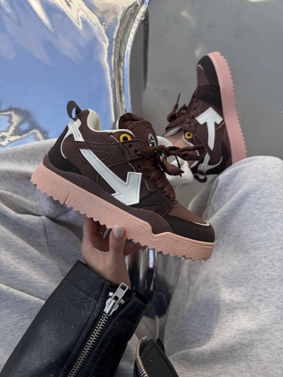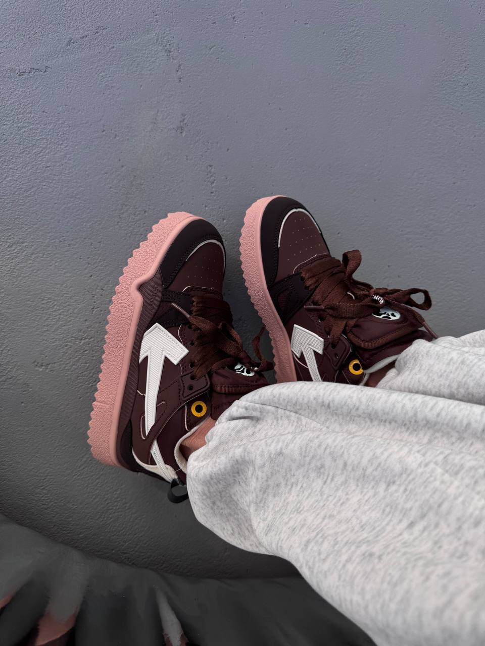 Off White Sponge Mid Top Brown/White — стильні високі кросівки з преміальної шкіри та замші. Вирізняються впізнаваними фірмовими деталями й забезпечують комфорт у сучасному вуличному стилі.
