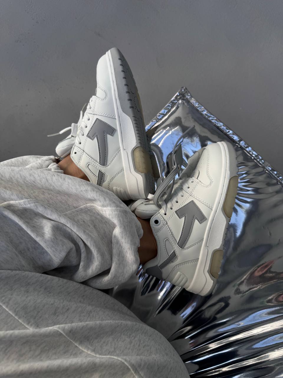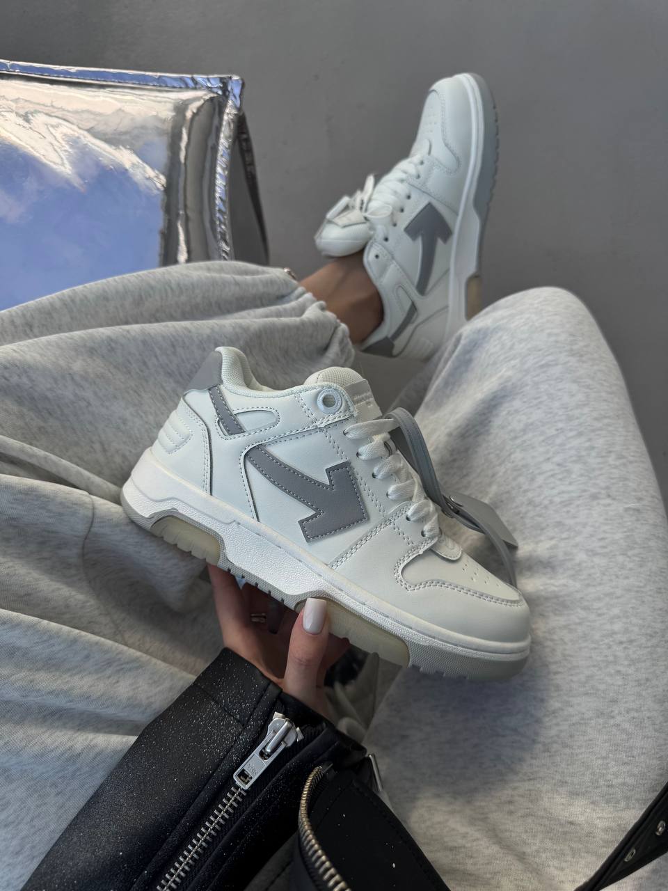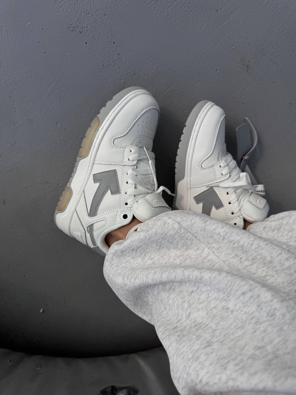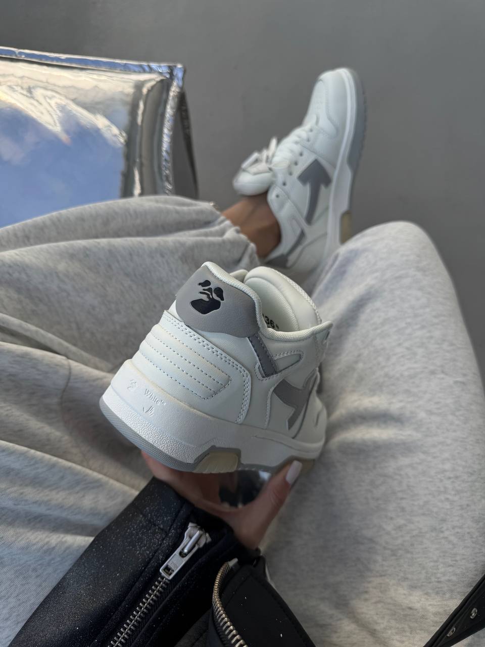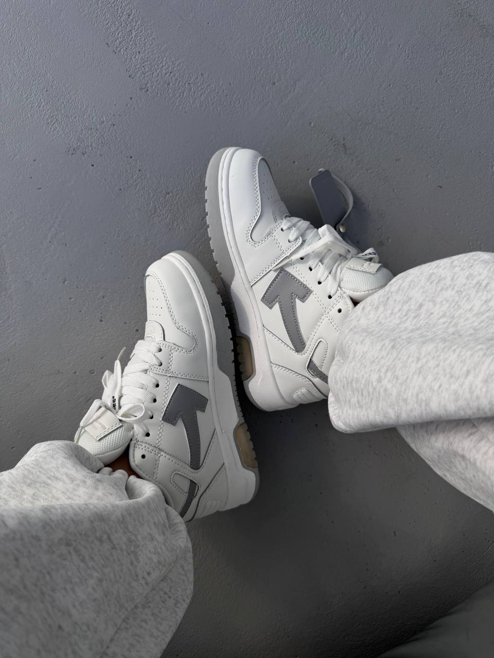 Off White Sponge Mid Top White/Grey — високі кросівки з білого та світло-сірого матеріалу з преміум деталями бренду. Поєднання стильного вигляду, міцної підошви та комфортної амортизації.