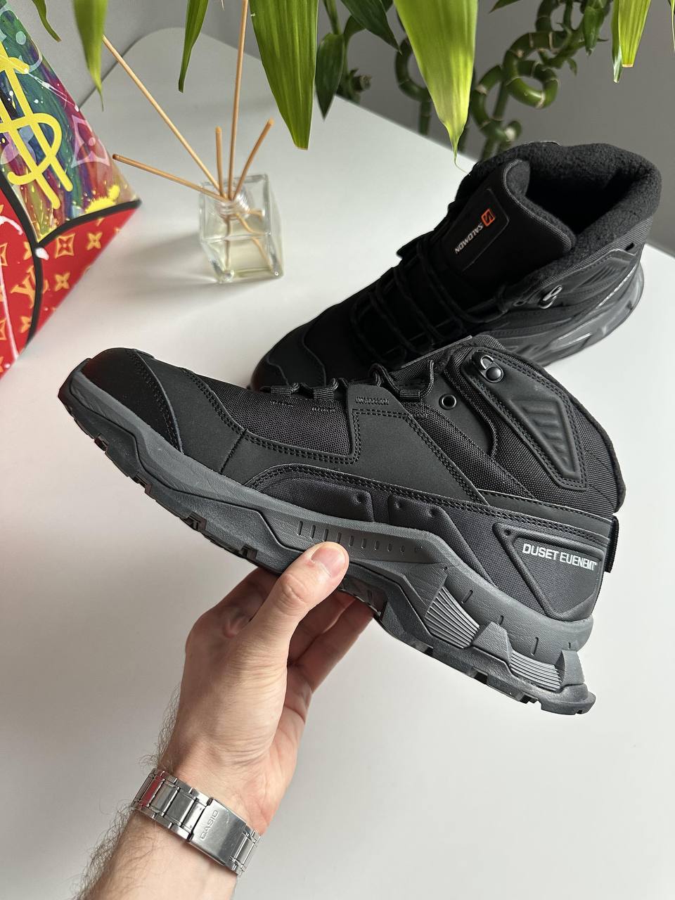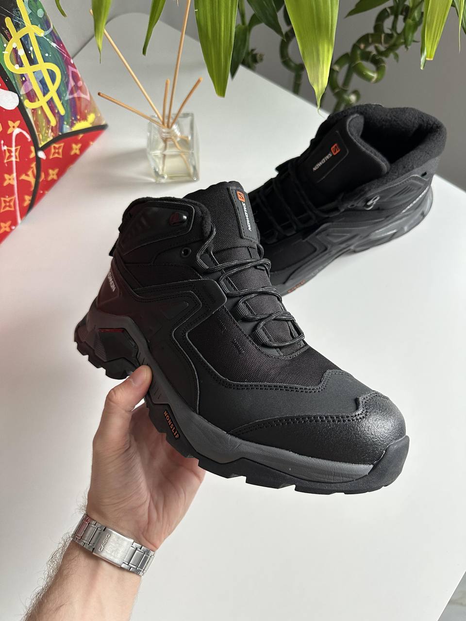 Salomon Quest Element Gtx Black Grey White — трекінгові черевики з водонепроникною мембраною, міцною гумовою підошвою з глибоким протектором та амортизуючою підошвою. Забезпечують надійне зчеплення, комфорт і захист під час походів.