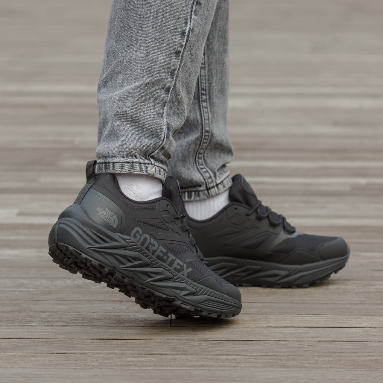 The North Face Gore-tex Black — унікальна версія культової моделі з додатковою кишенею на шнурівці. Комбінований верх, амортизація ABZORB і стильний сіро-бежевий дизайн забезпечують комфорт і сучасний вигляд.