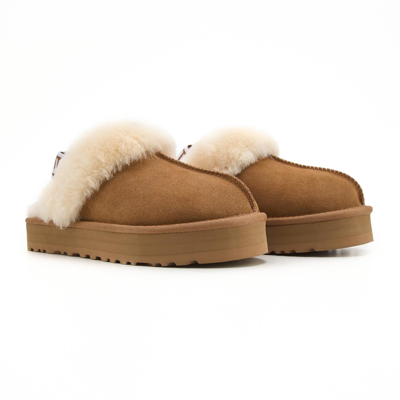 Ugg Funkette Chestnut  стильні сабо на платформі у теплому каштановому відтінку. Виконані з м’якої замші та оздоблені натуральною овчиною. Мають зручну підошву з амортизацією та ремінець на п’яті для надійної фіксації. Ідеальні для затишку й щоденного комфорту.