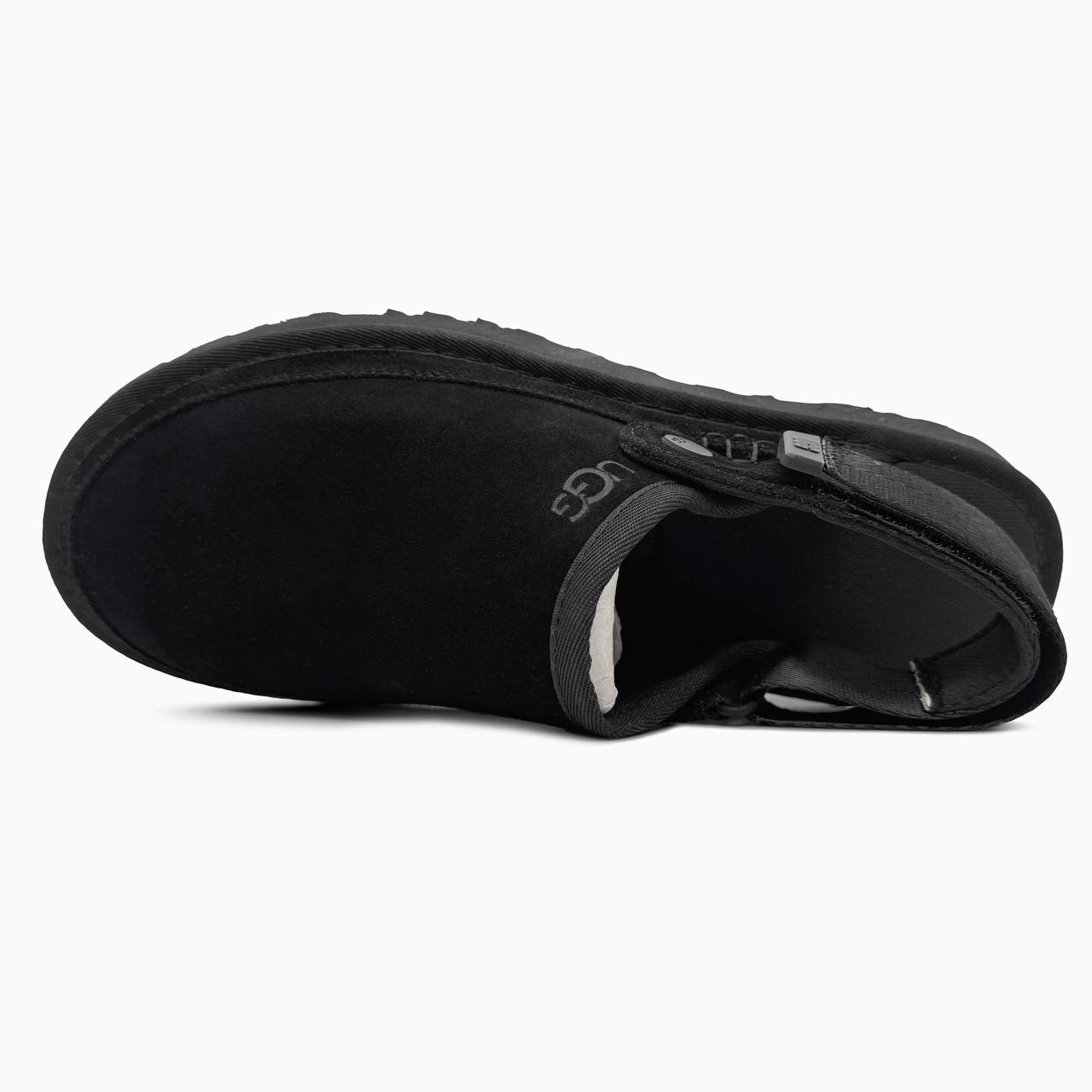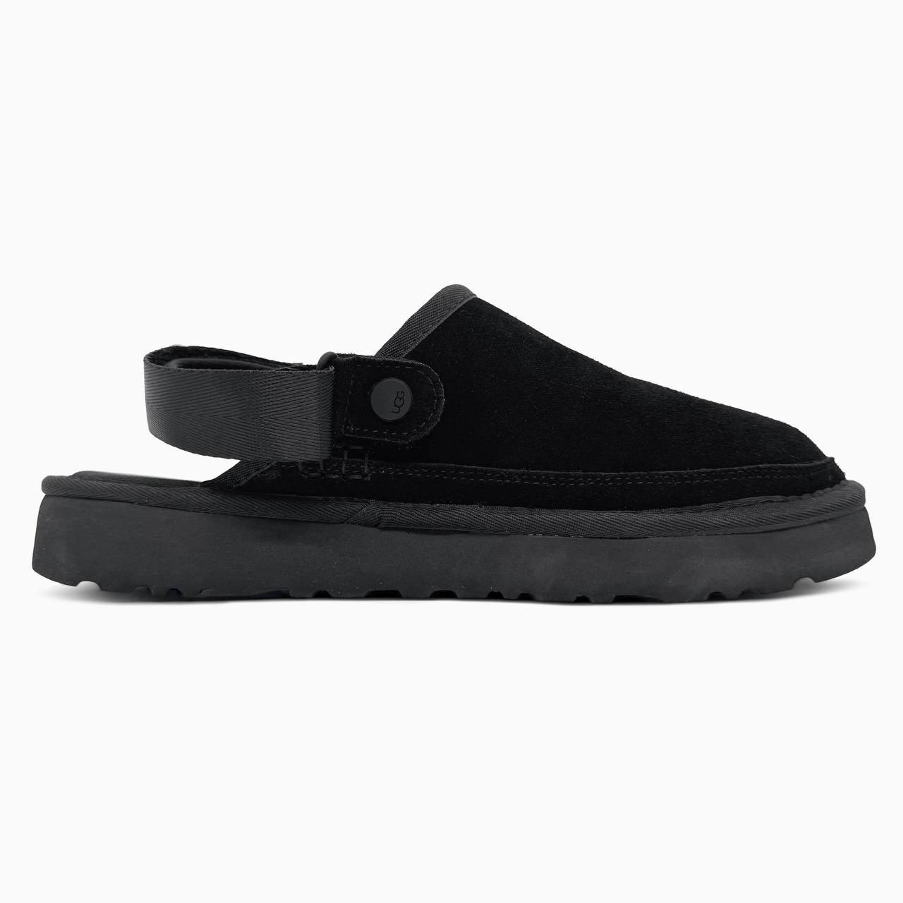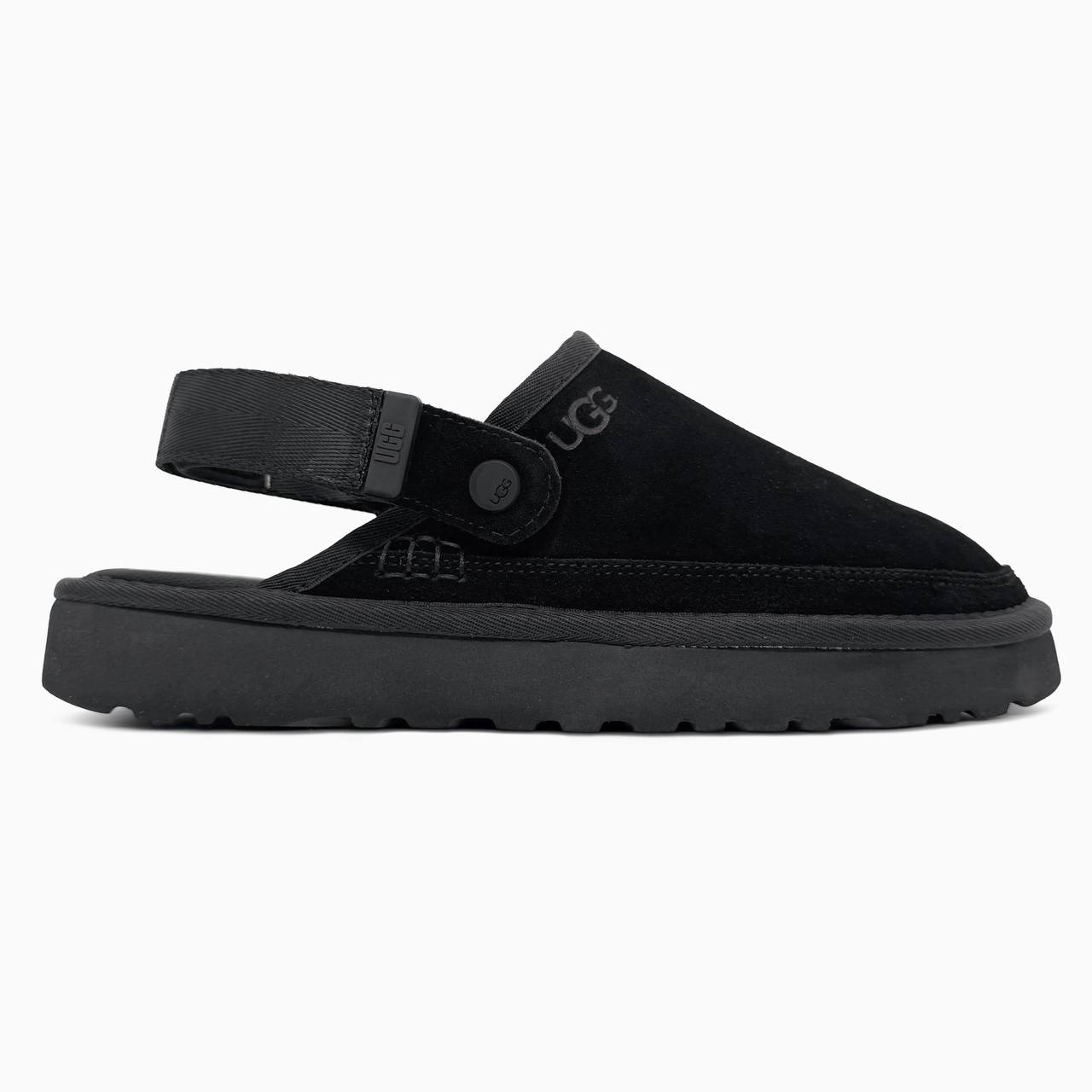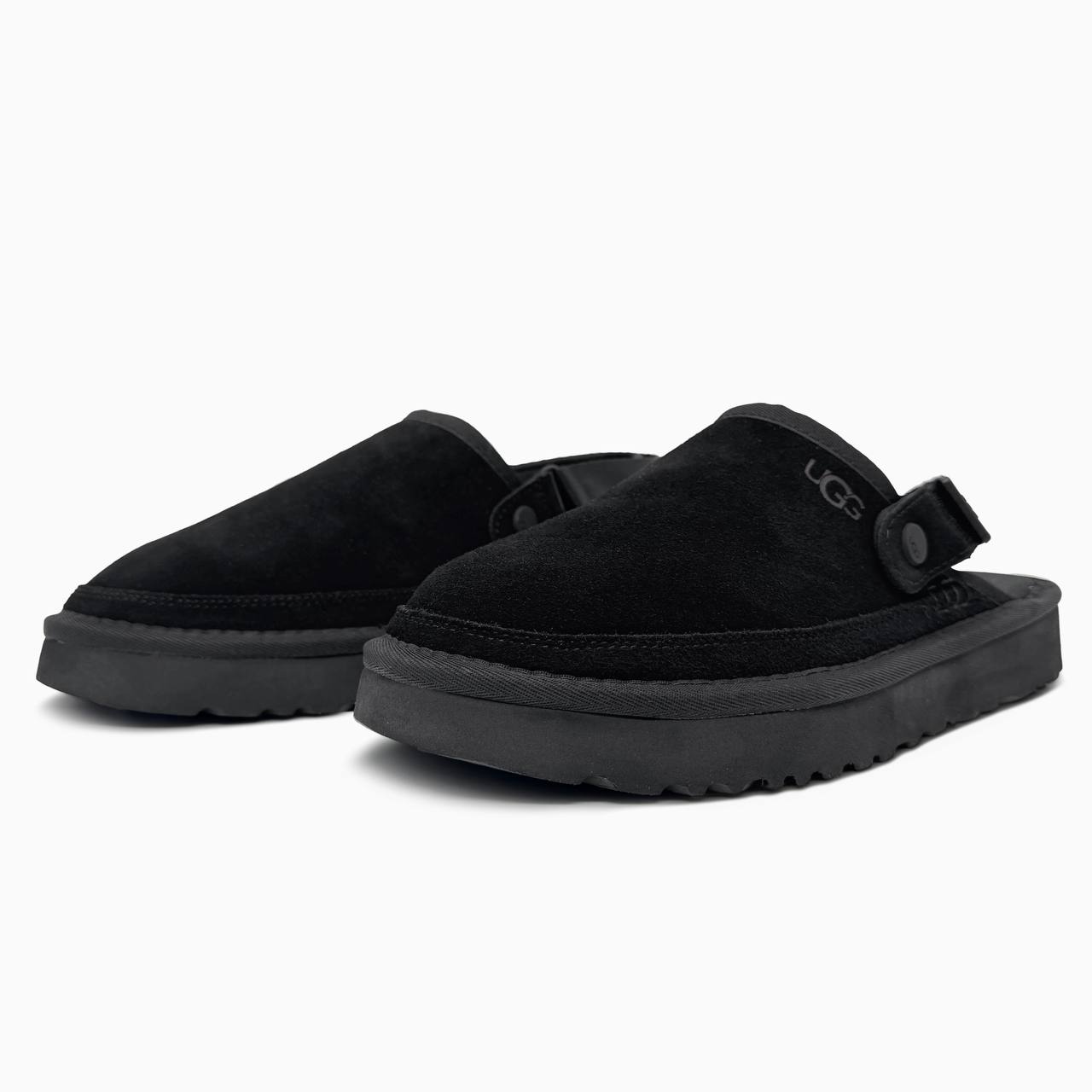 UGG Goldenstar Clog Black — це елегантні чорні замшеві клоги з ремінцем на п’яті, м’якою устілкою та легкою підошвою.