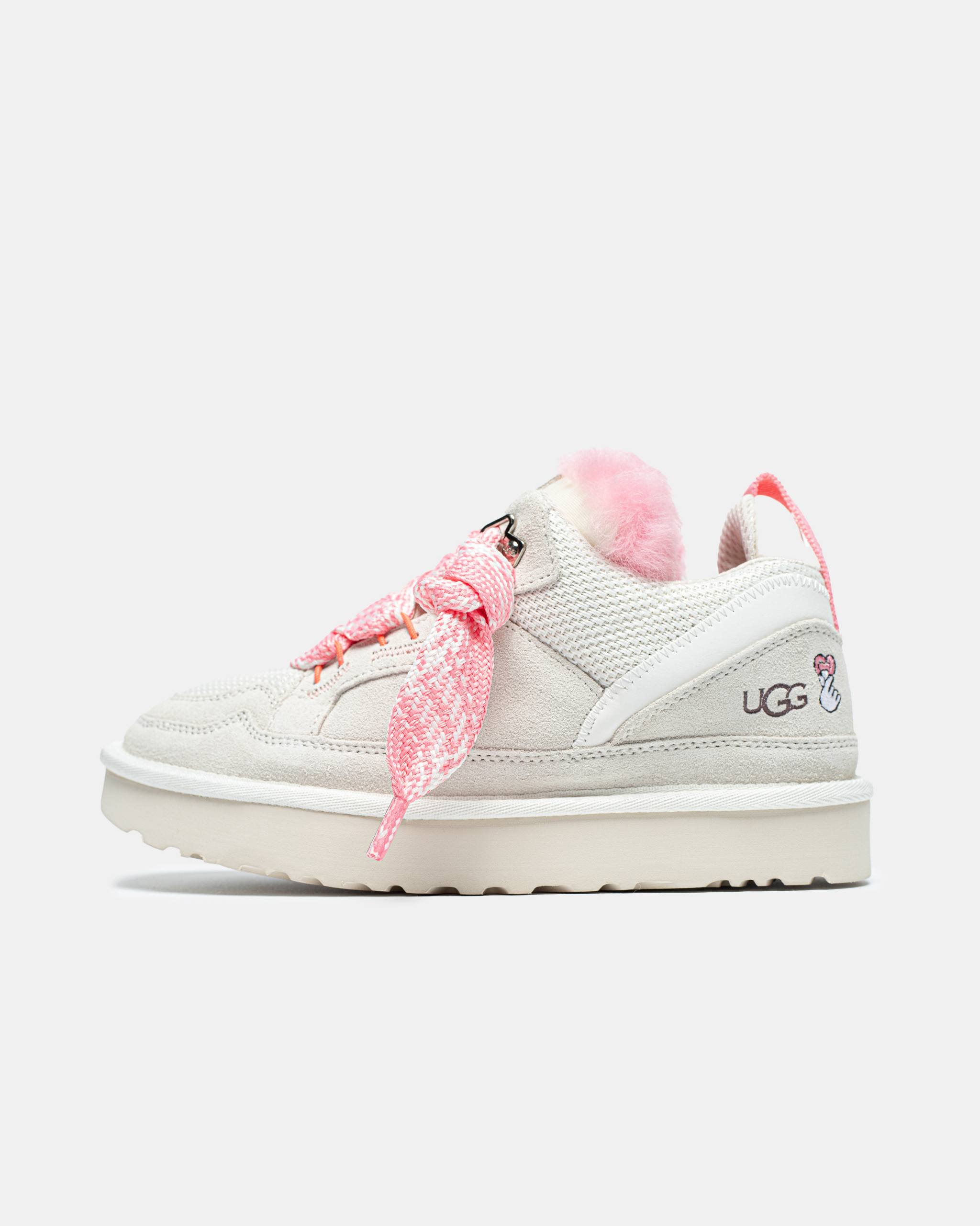 UGG Lowmel Low Grey Love — сірі замшеві кросівки з м’якою підошвою та акцентними рожевими деталями для стильного повсякденного образу.