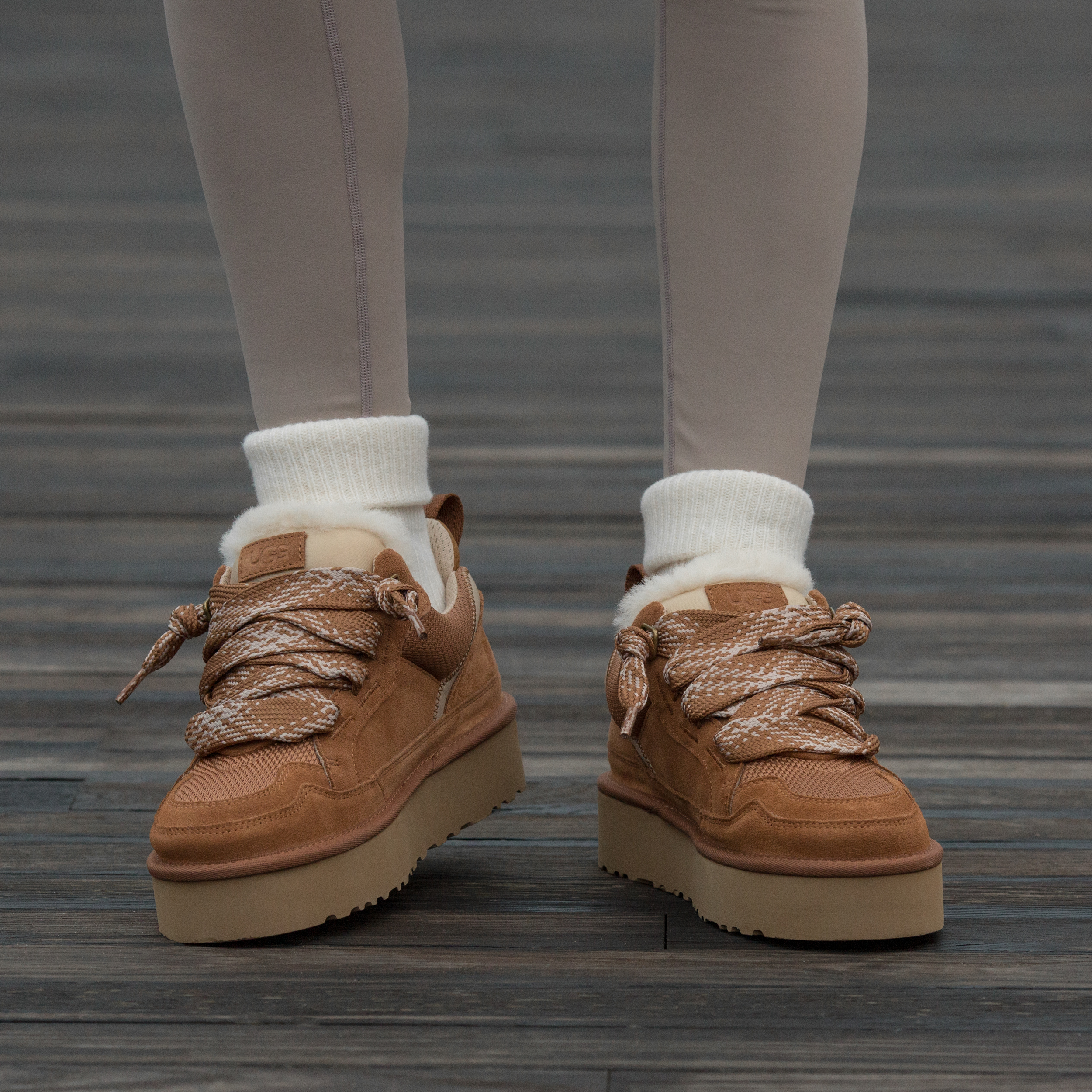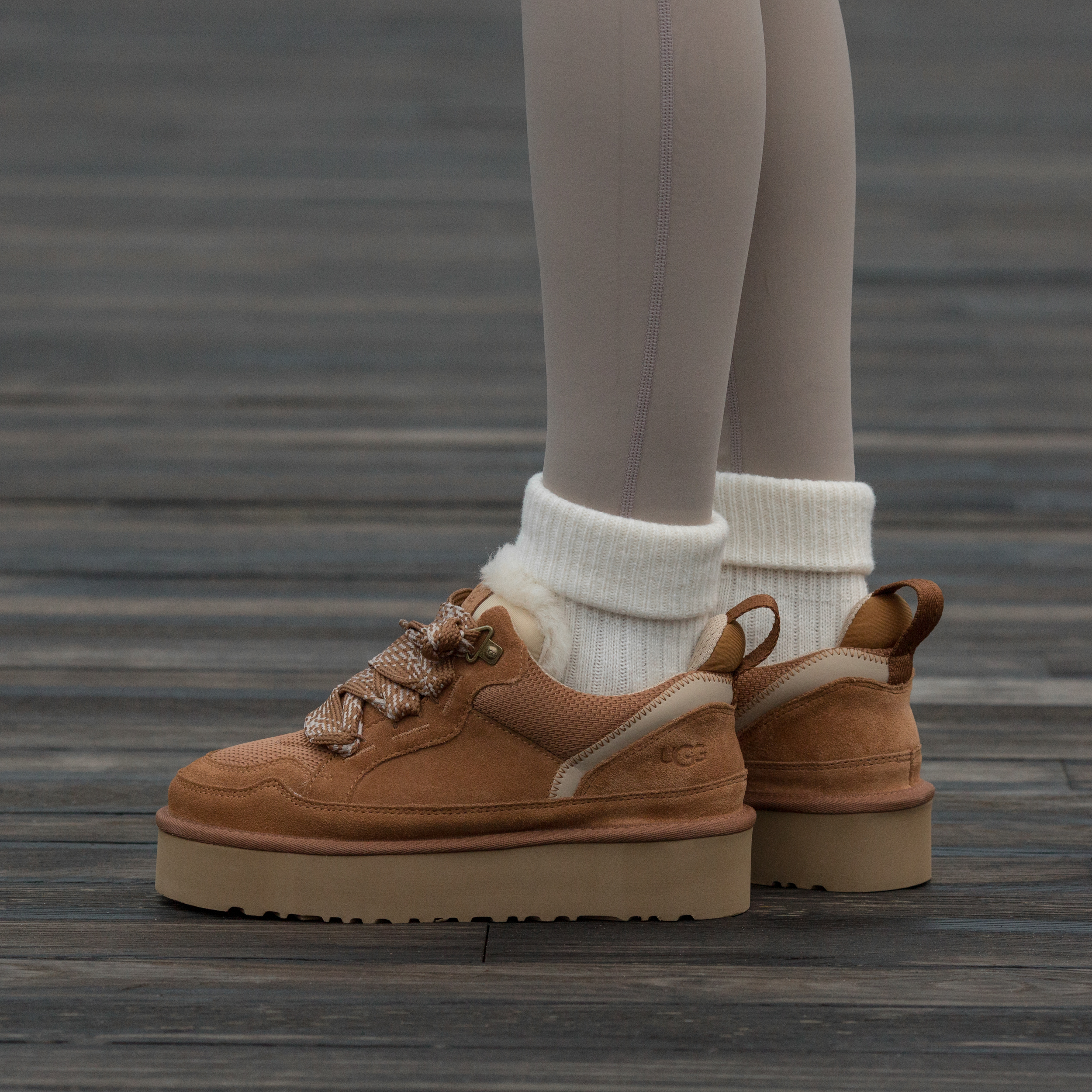 UGG Lowmel Sneaker Platform Chestnut — це теплі замшеві кеди на платформі в насиченому каштановому кольорі.