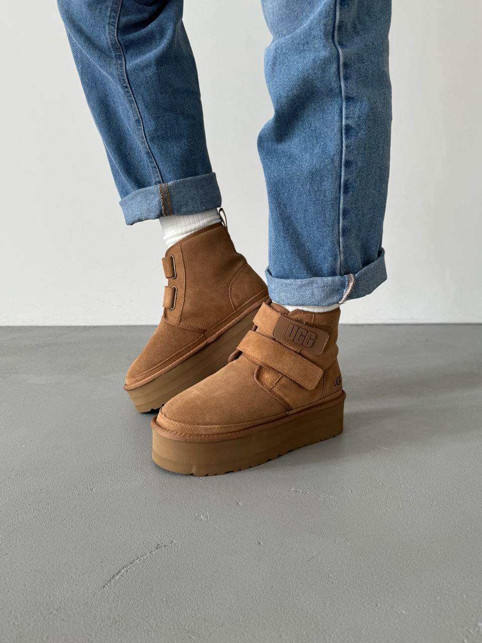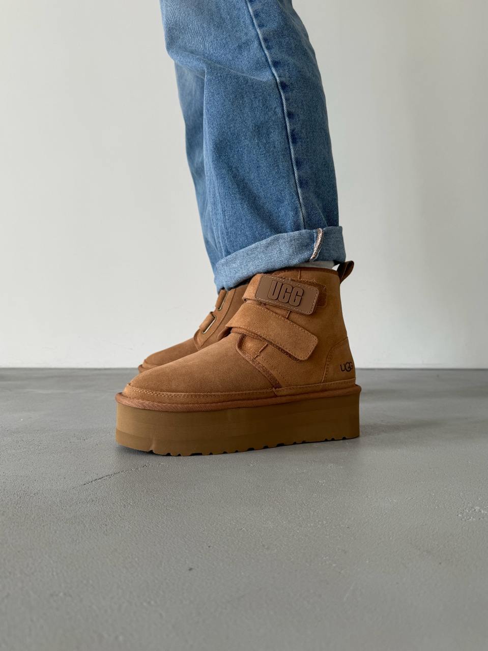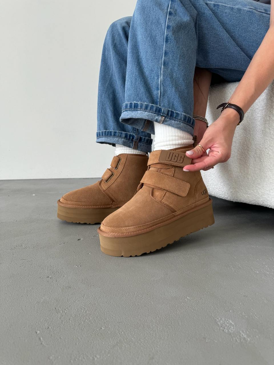 Ugg Neumal Platform Velcro Chestnut — Стильні замшеві черевики на платформі з фіксацією на липучці. Усередині тепле хутро , зручна підошва забезпечує комфорт і стабільність у холодну пору.