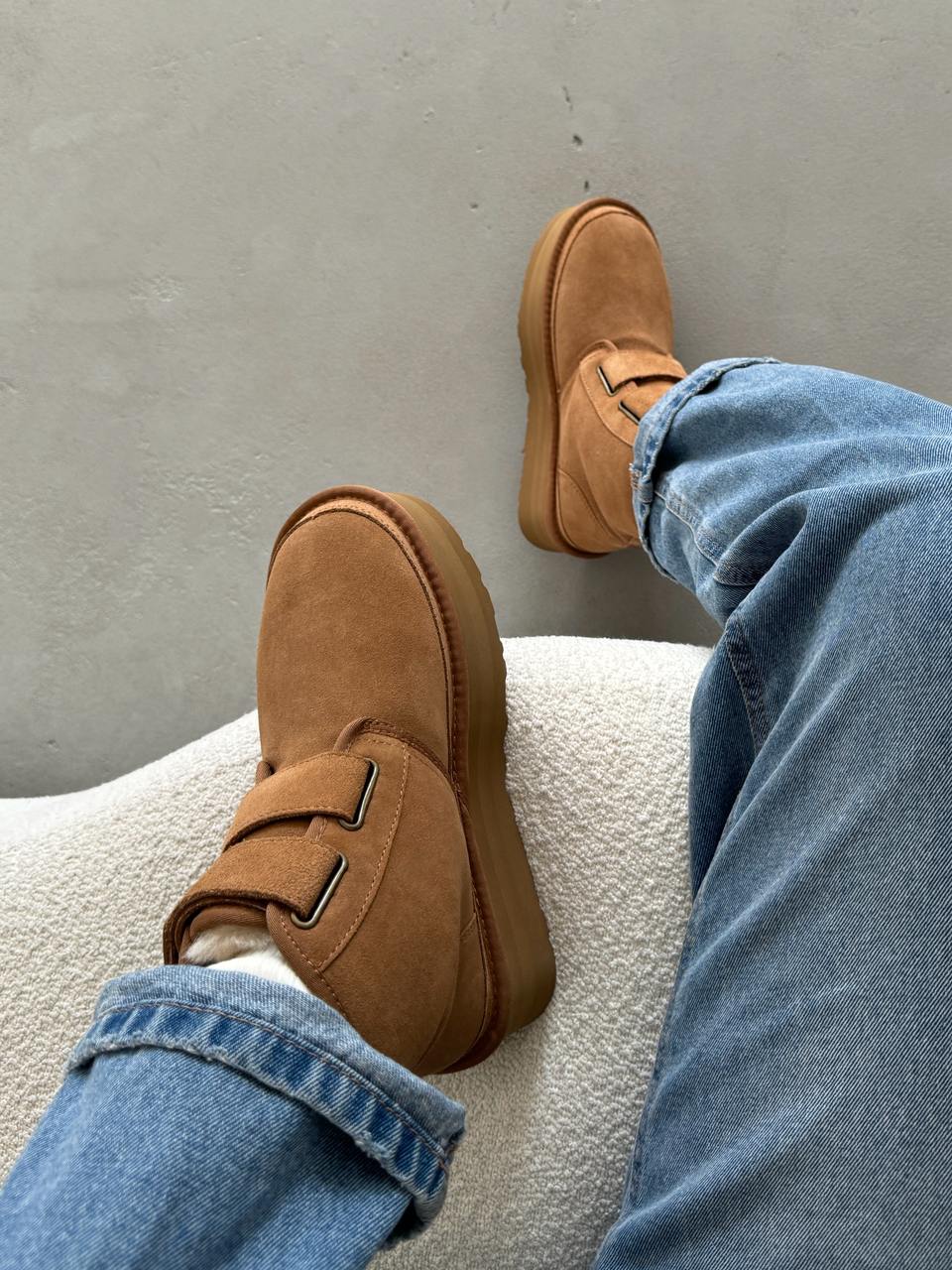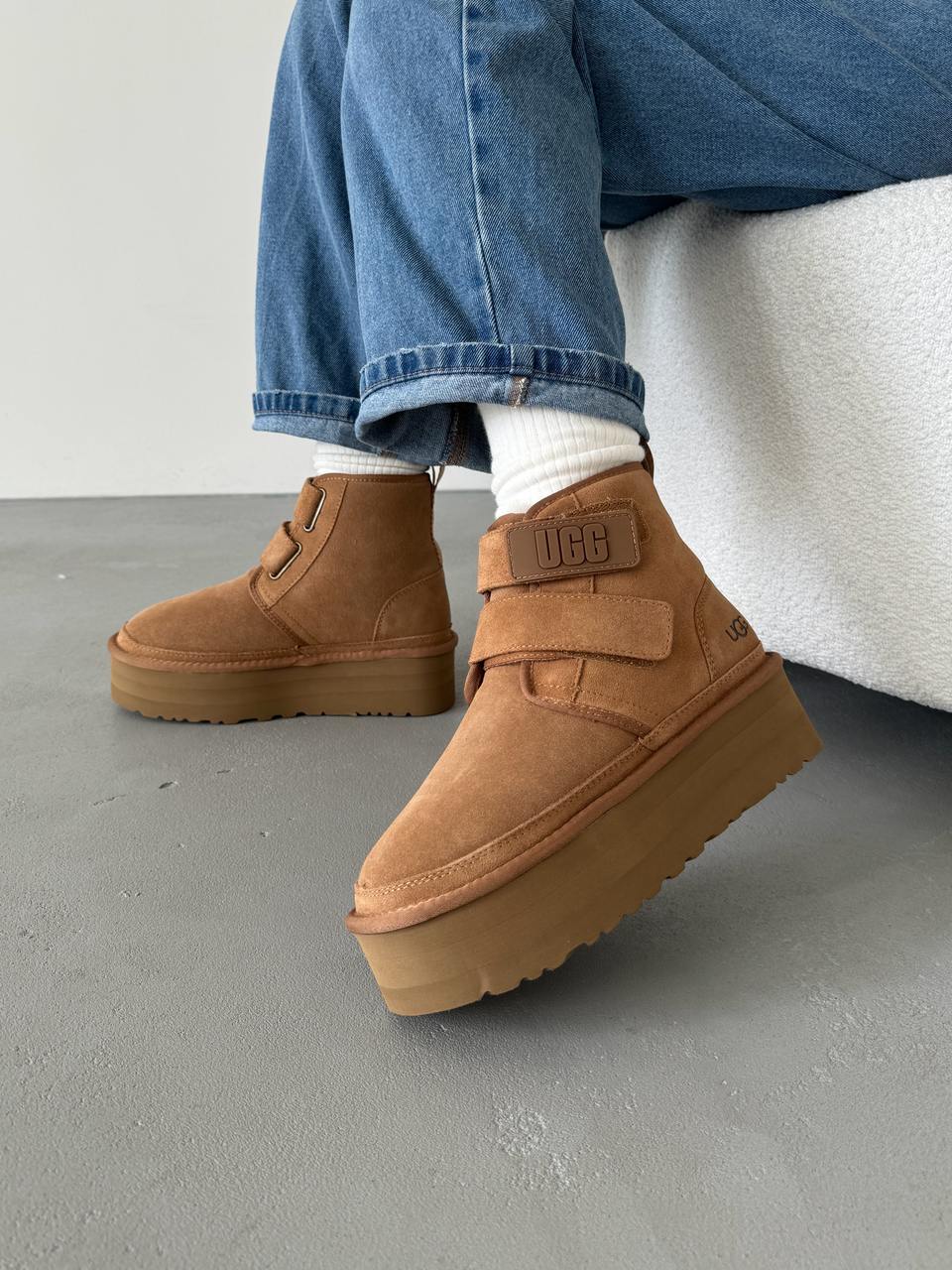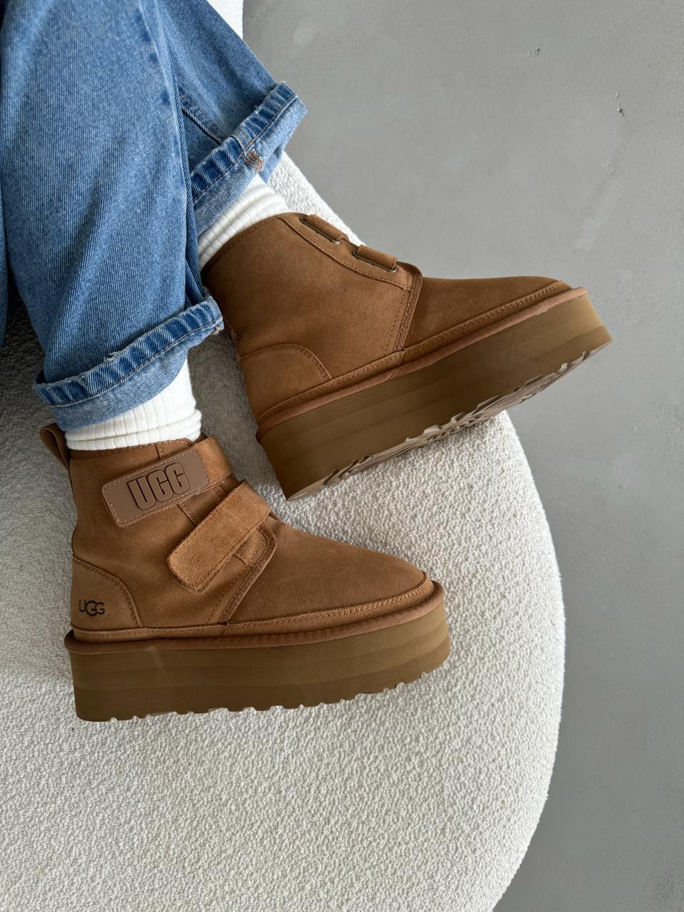 Ugg Neumal Platform Velcro Chestnut — Стильні замшеві черевики на платформі з фіксацією на липучці. Усередині тепле хутро , зручна підошва забезпечує комфорт і стабільність у холодну пору.