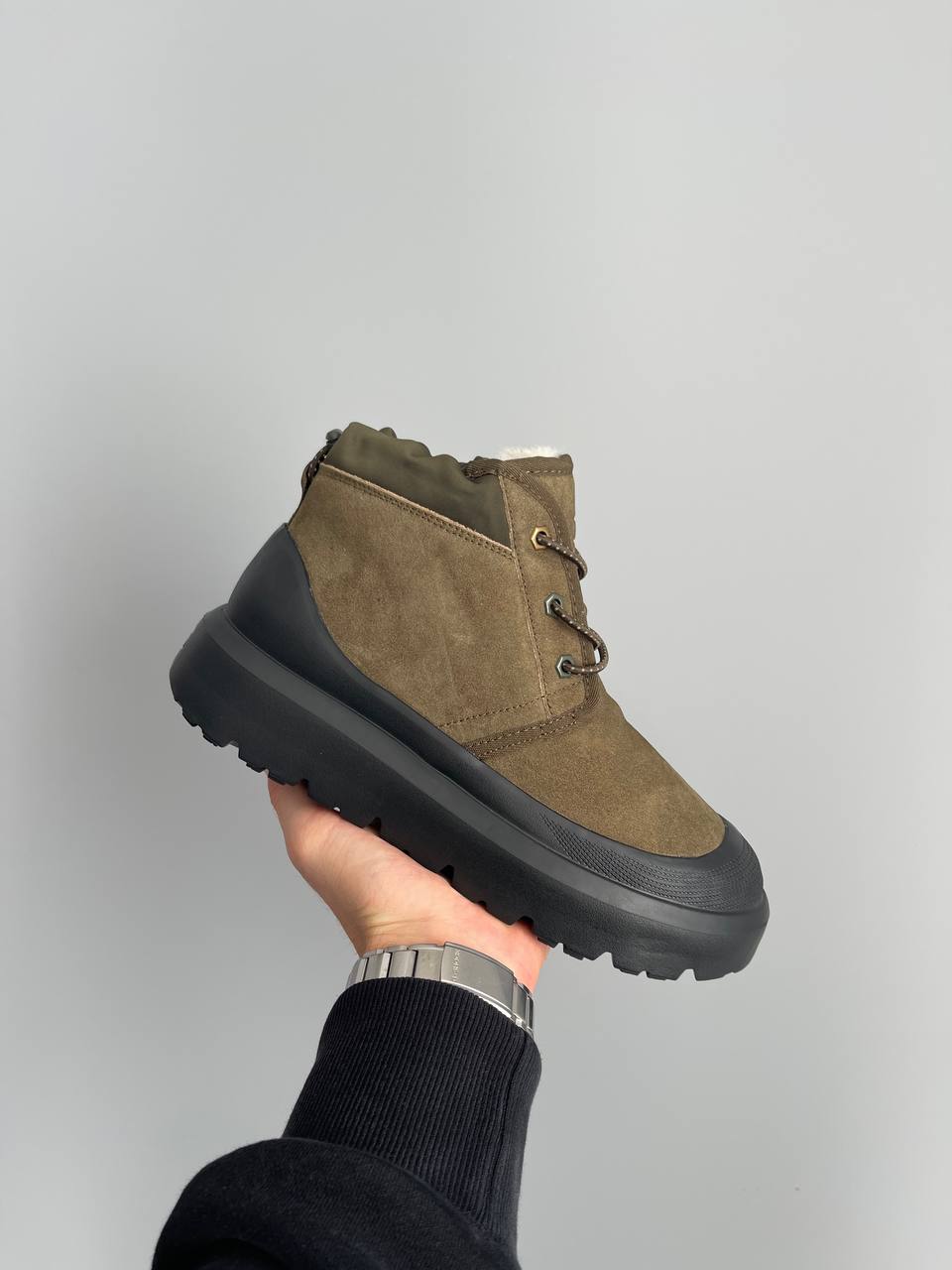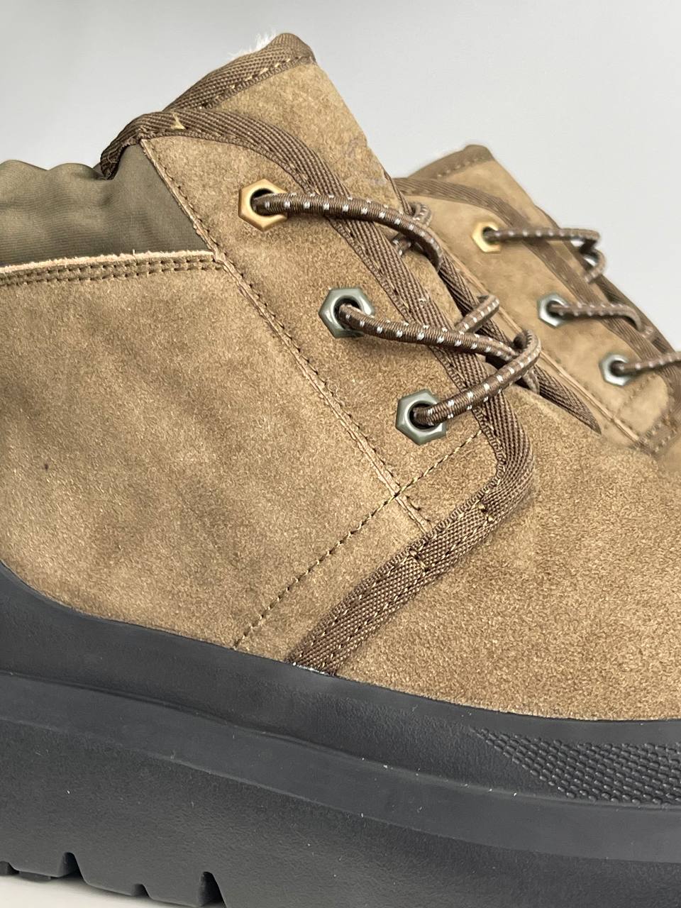 UGG Neumel Hybrid Khaki Black — стильні утеплені черевики з комбінації замші та нейлону. Забезпечують тепло, комфорт і сучасний вигляд у холодну пору року.