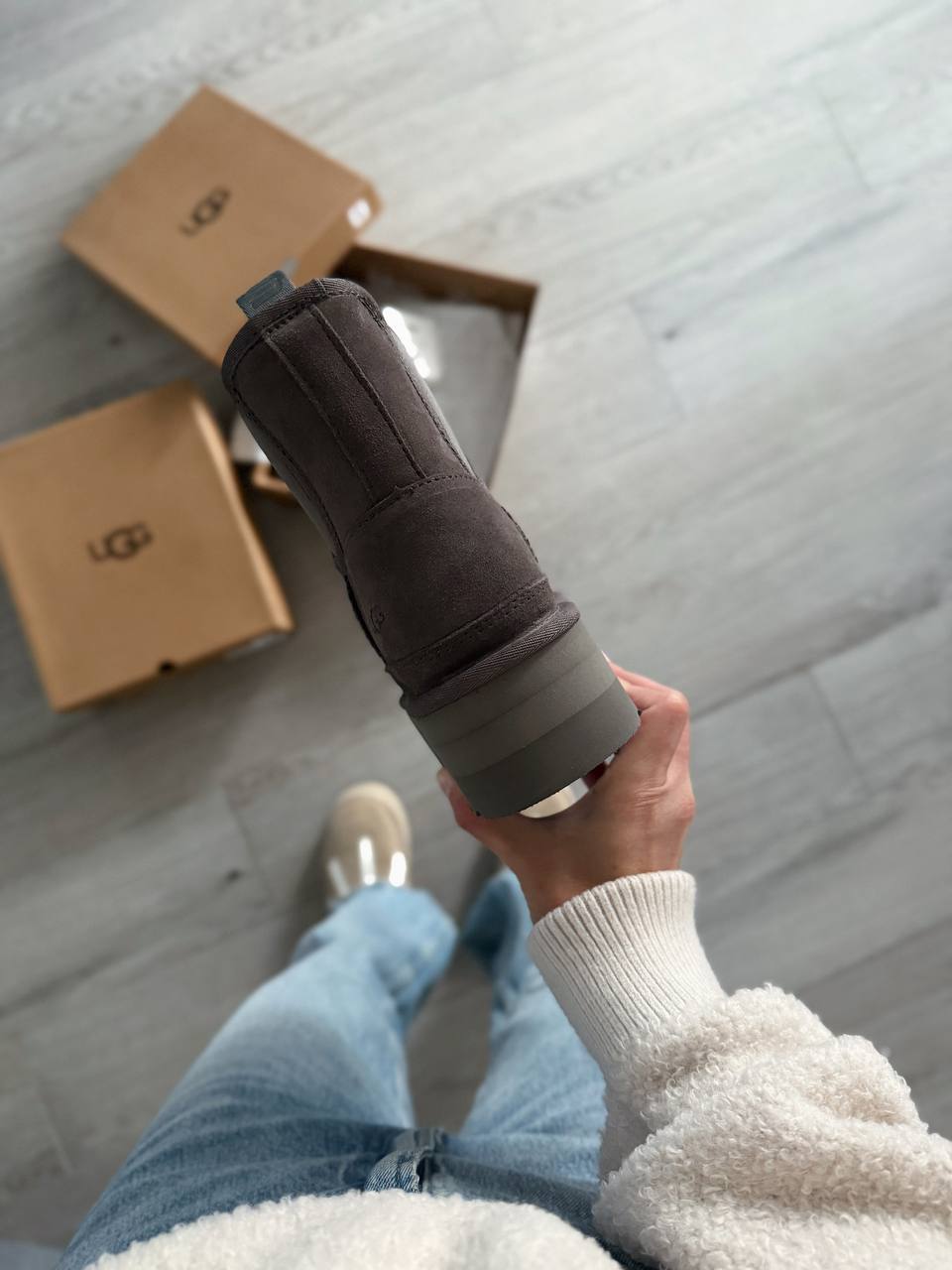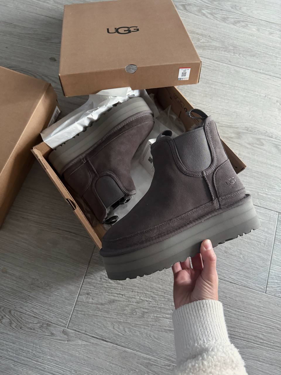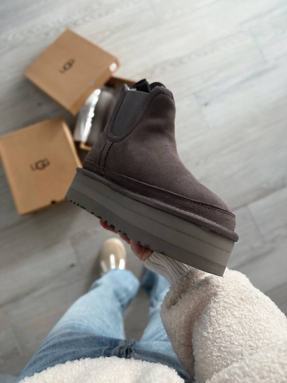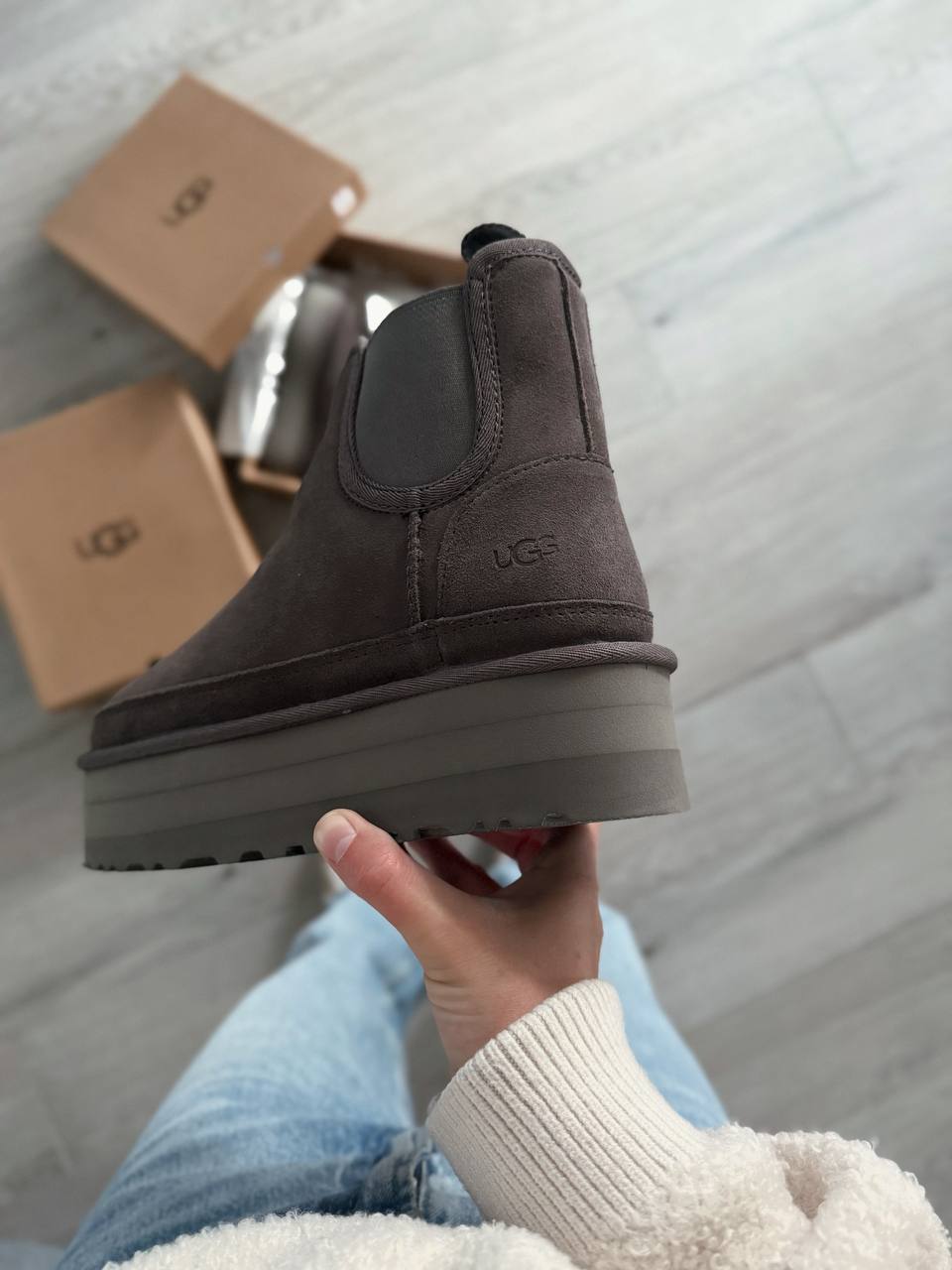 UGG Neumel Platform Chelsea Grey — стильні замшеві черевики на платформі з еластичними вставками та м’яким утепленням для комфортного щоденного носіння.