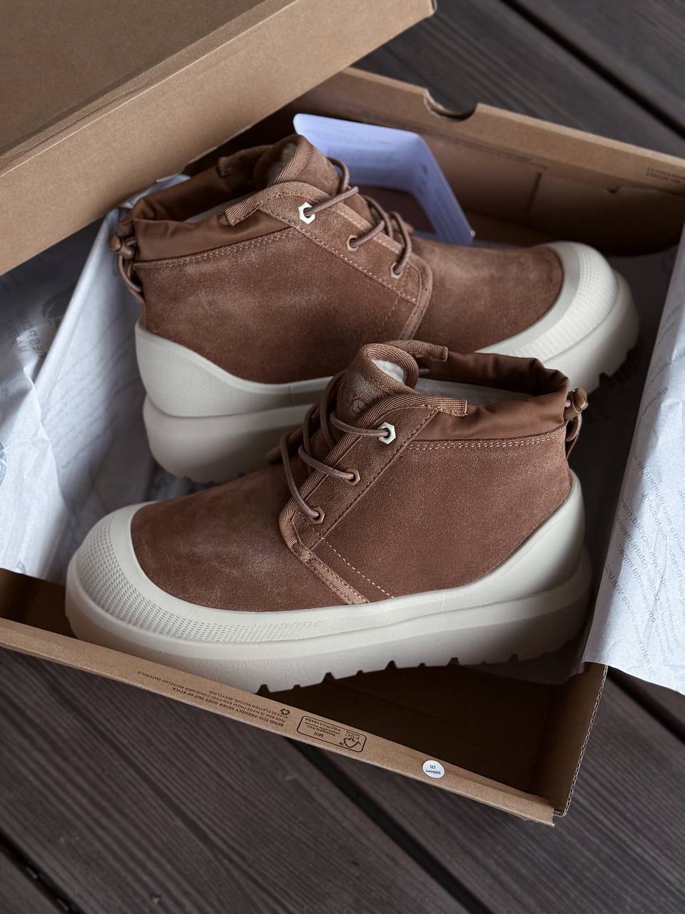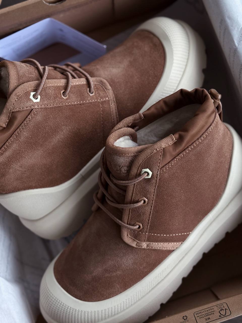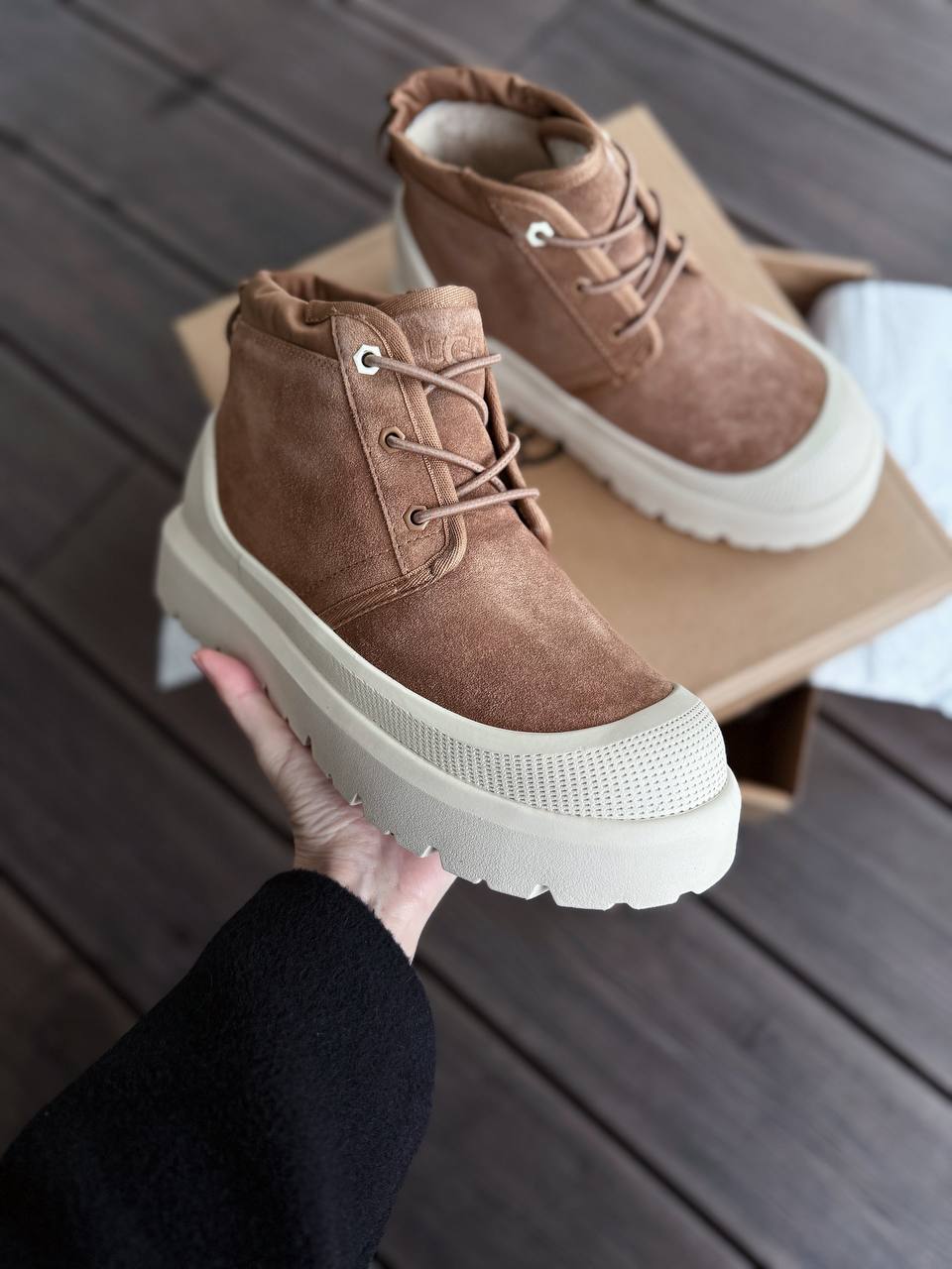 UGG Neumel Weather Chestnut Whitecap — теплі водостійкі чоботи з м’яким білим хутром.