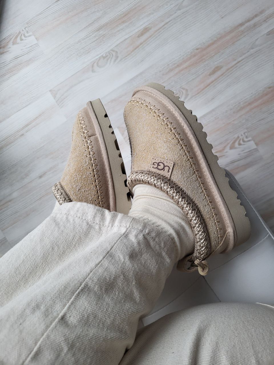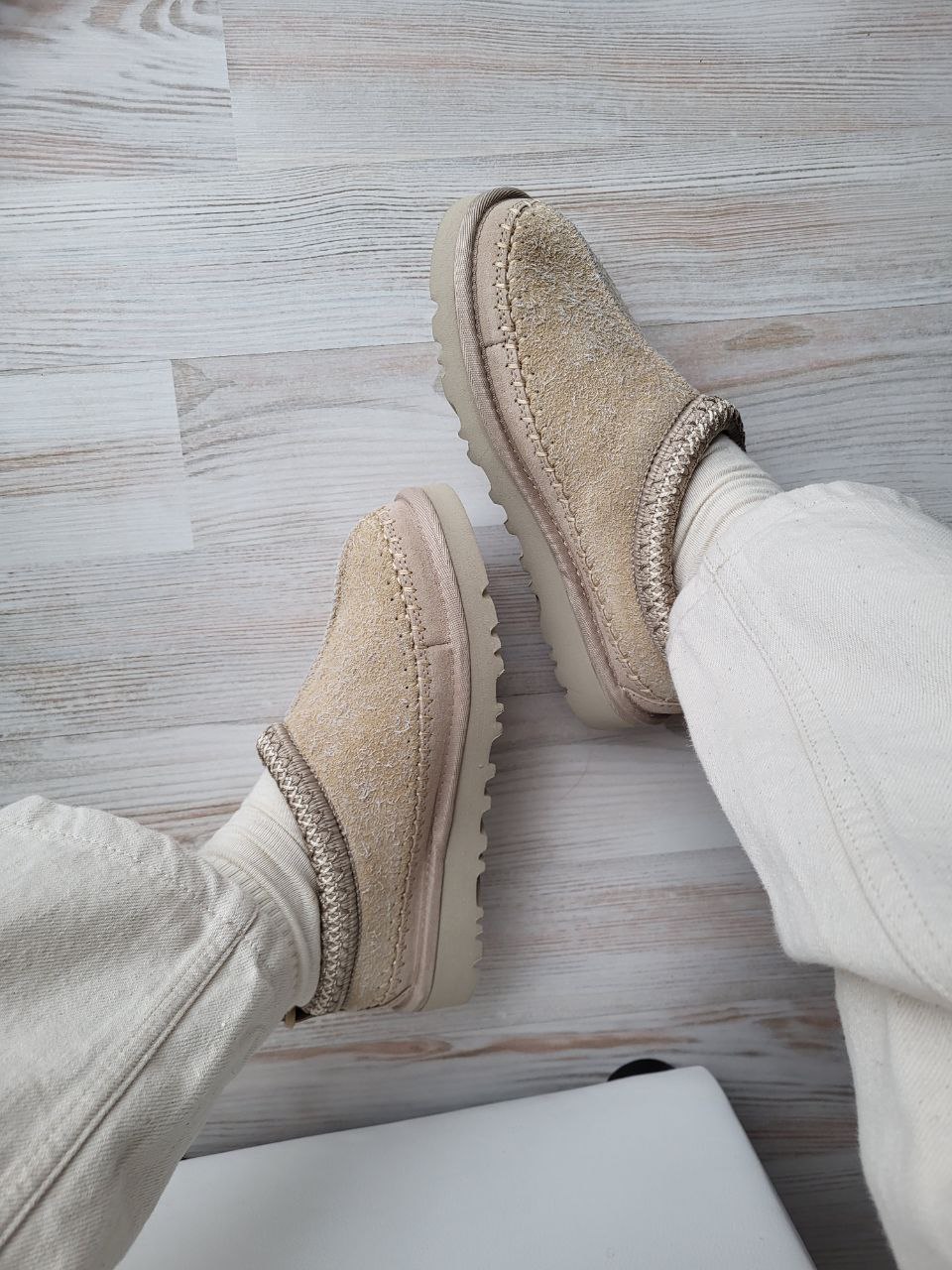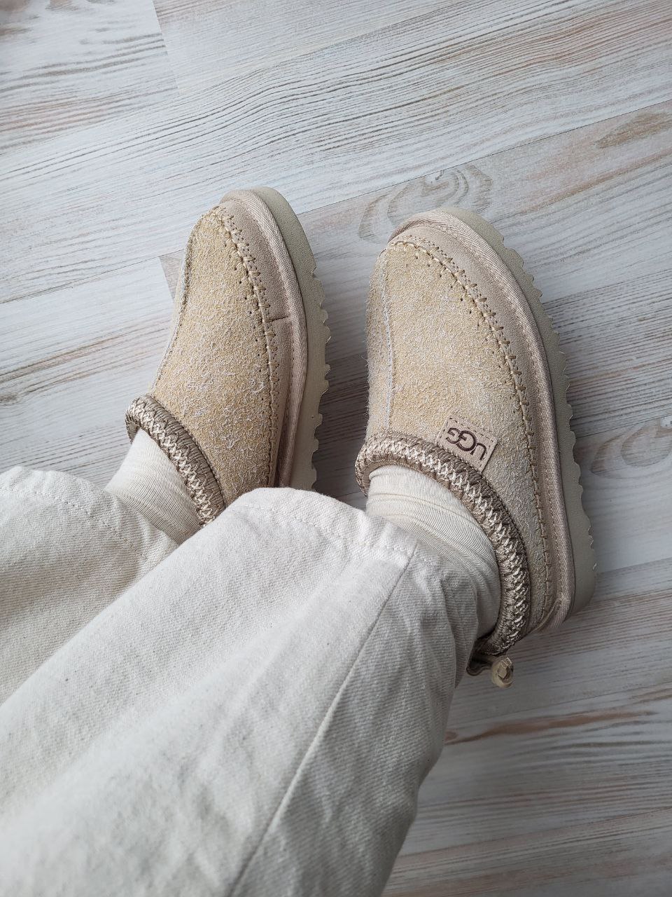 UGG Tasman Biarritz Mustard Seed — стильні та зручні сабо з м’якою овчиною всередині та яскравим гірчичним кольором для комфортного повсякденного носіння.