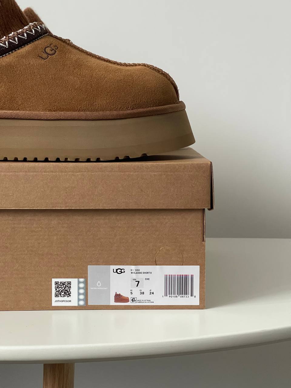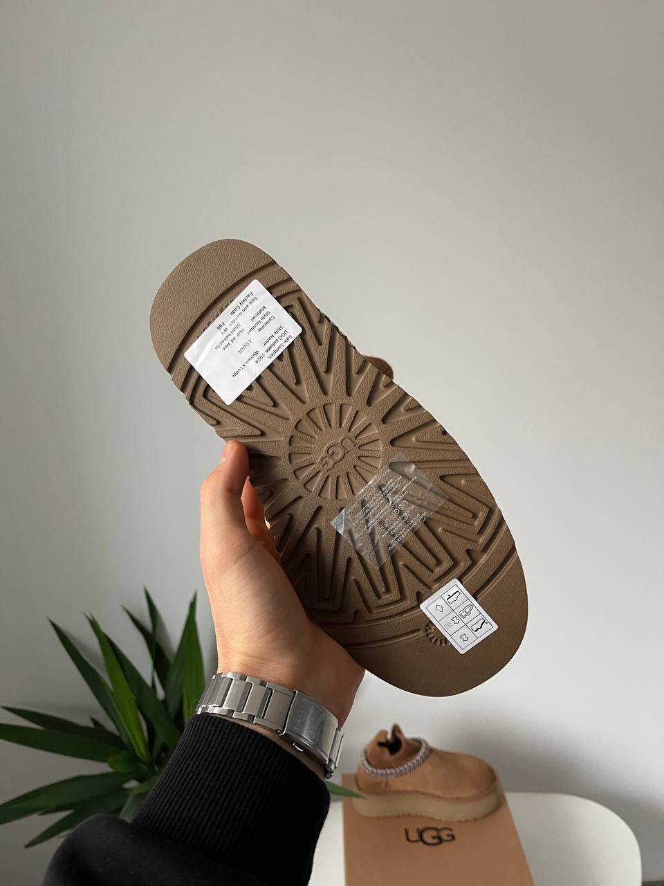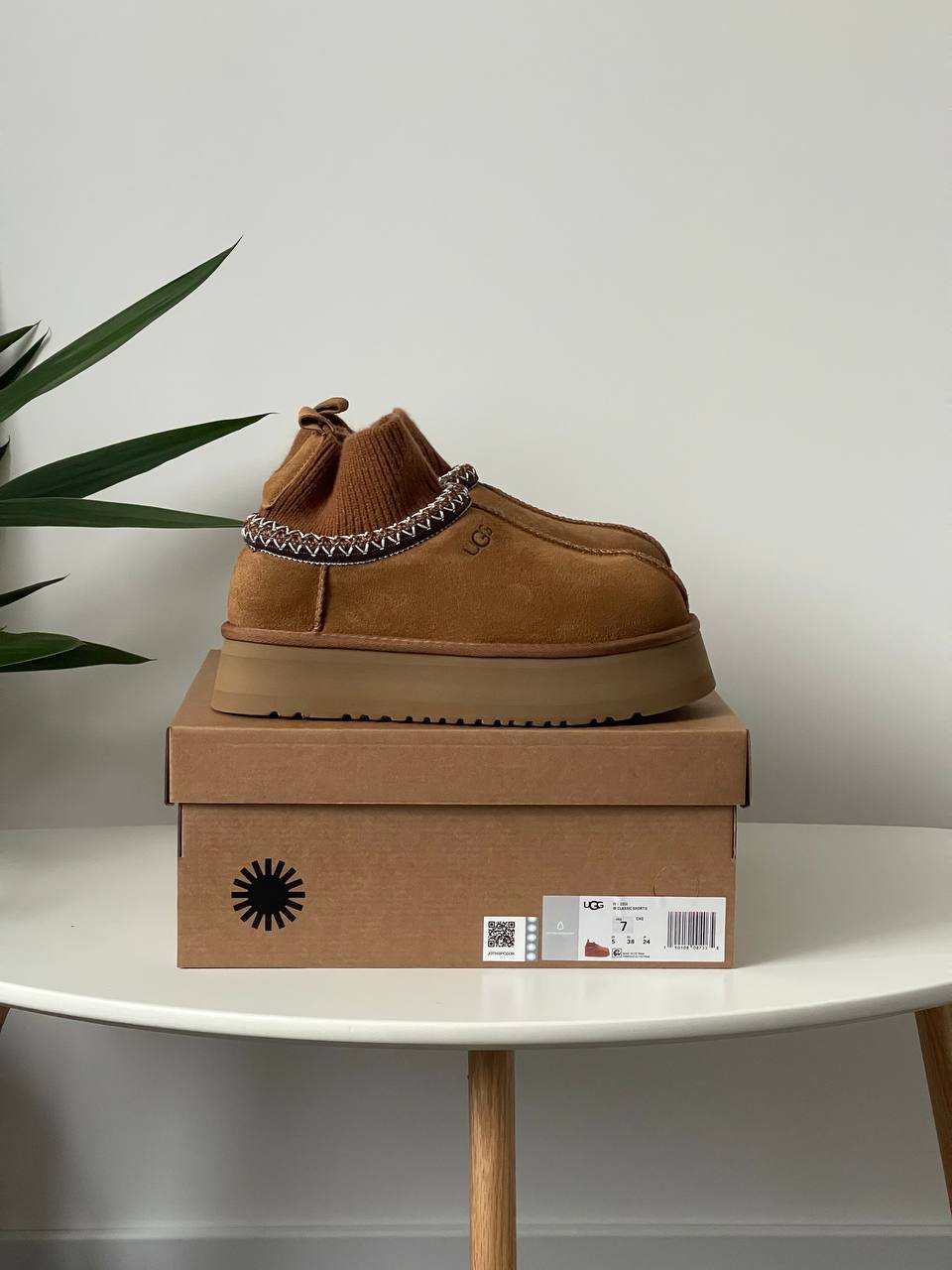 Ugg Tasman Platform Sock Chestnut сучасна інтерпретація класичних сабо UGG. Замшевий верх у відтінку каштан поєднано з м’якою внутрішньою підкладкою з овчини та високою платформою. Трикотажна манжета додає оригінальності та затишку, роблячи модель зручною для щоденного носіння.