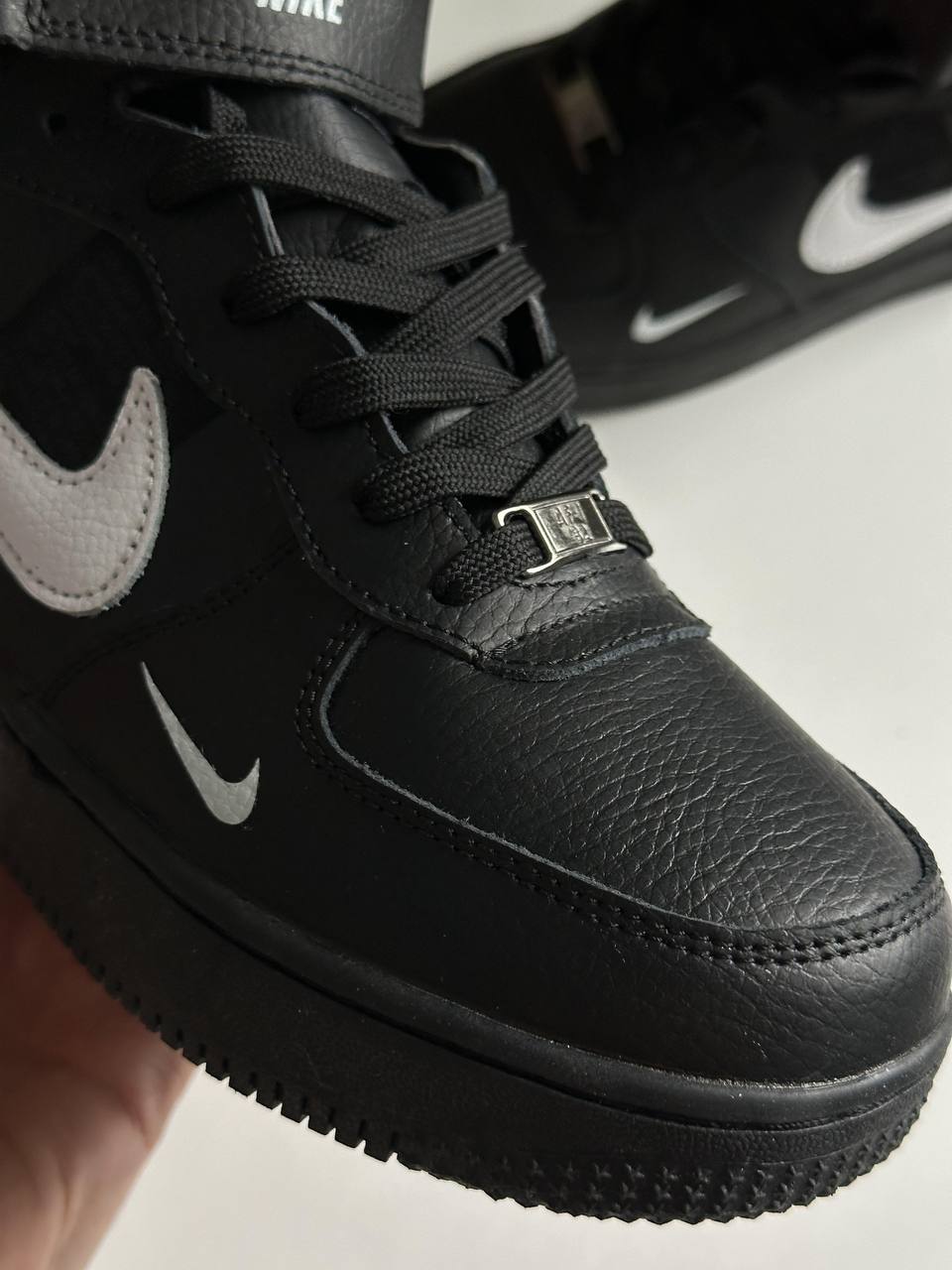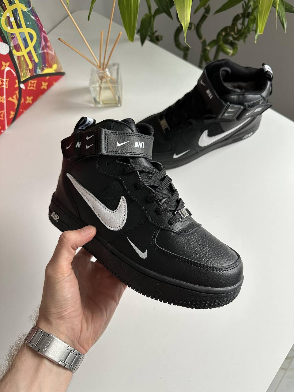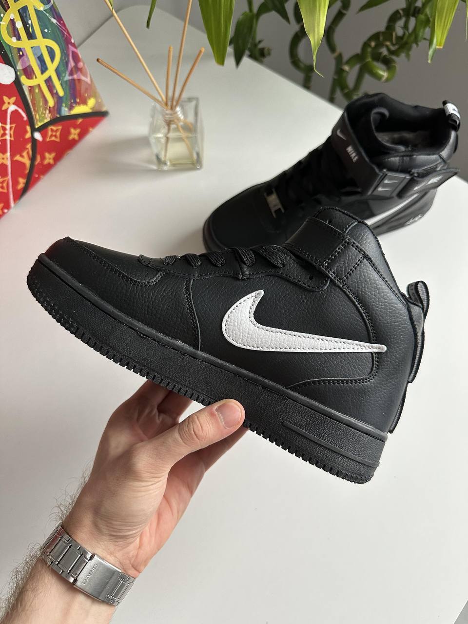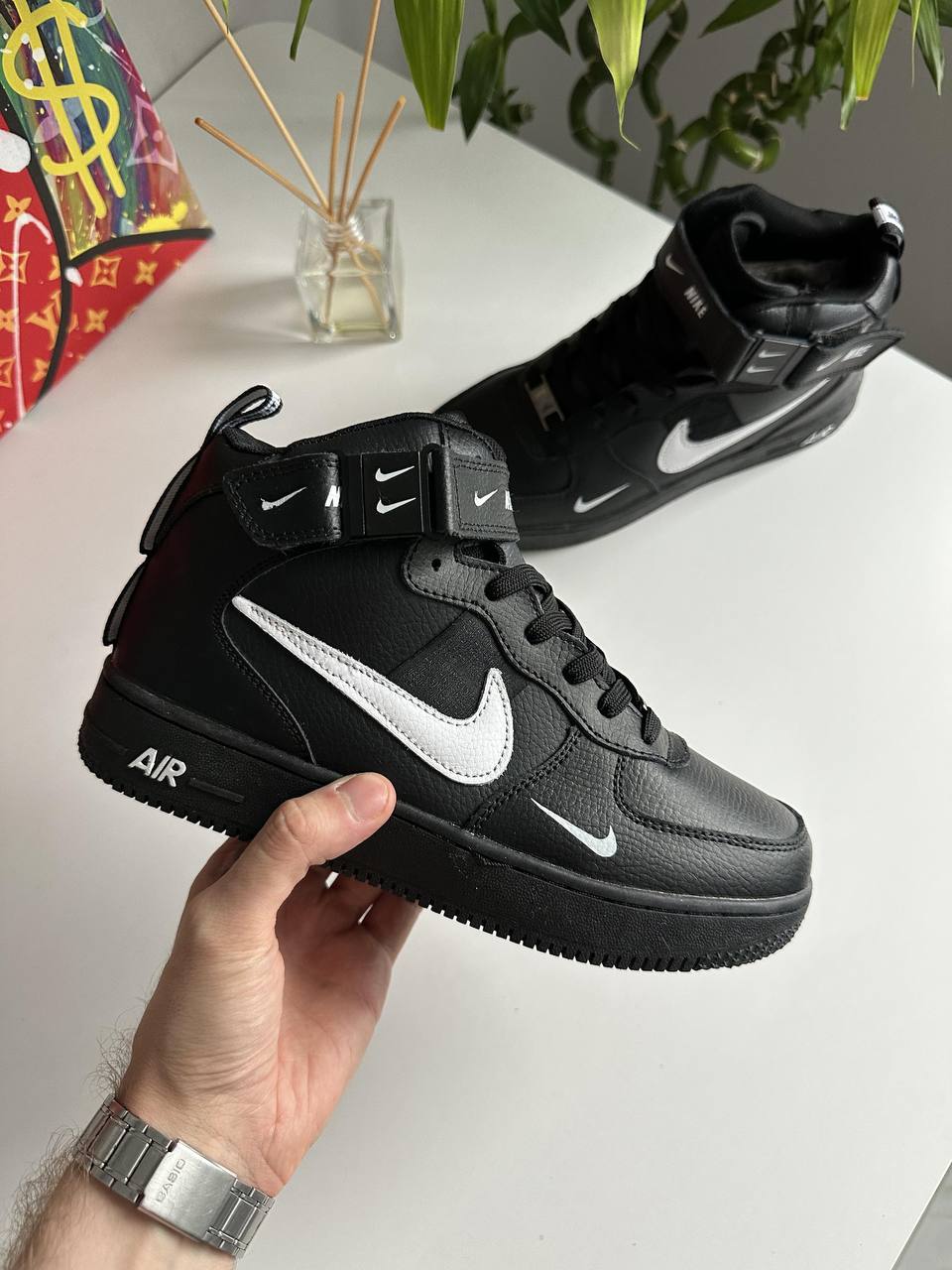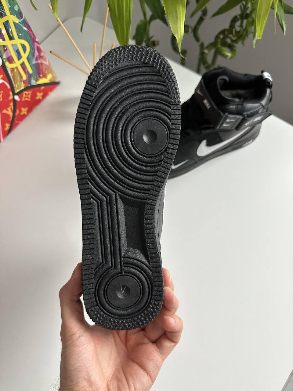 Nike Air Force 1 Black White — класичні кросівки з поєднанням чорного та білого кольорів, міцна шкіряна верхня частина та зручна амортизуюча підошва для щоденного носіння.